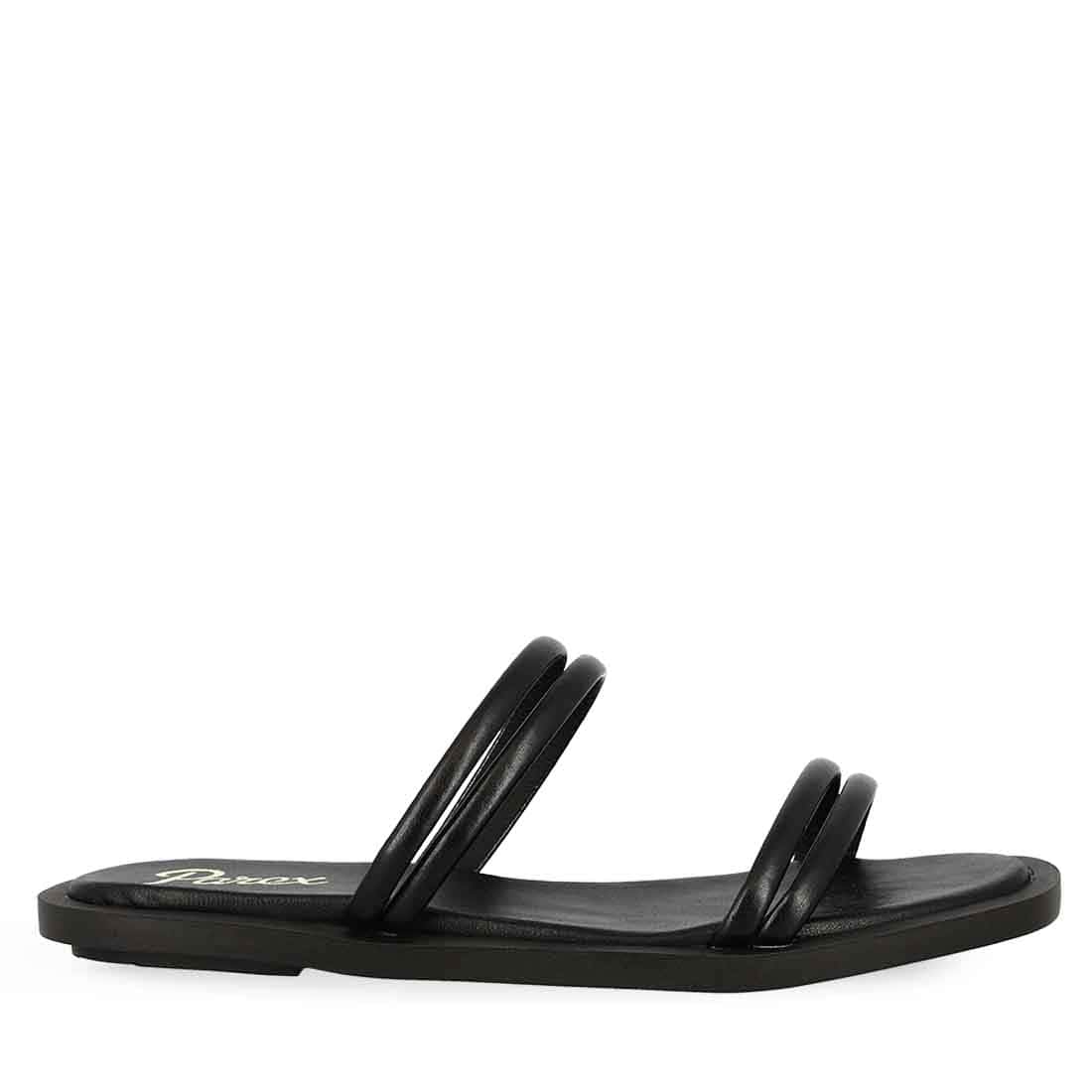 Update now your outfit with these elegant slide sandals. Made in Greece from faux leather featuring slim straps and square sole.