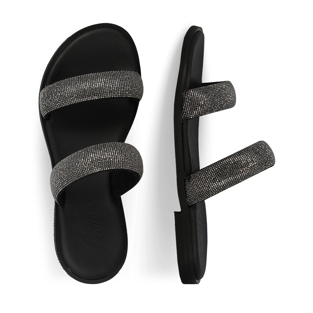 Parex women''s sandals. Add some sparkle to your day with this modern pair of women''s sandals by Parex. It has two straps with rhinestones that keep your foot stable and will upgrade your every look. Premium quality eco leather. Women''s sandals available in classic and bold colors you''ll love. Choose a color: black, white, blue, green, fuchsia, steel or copper.