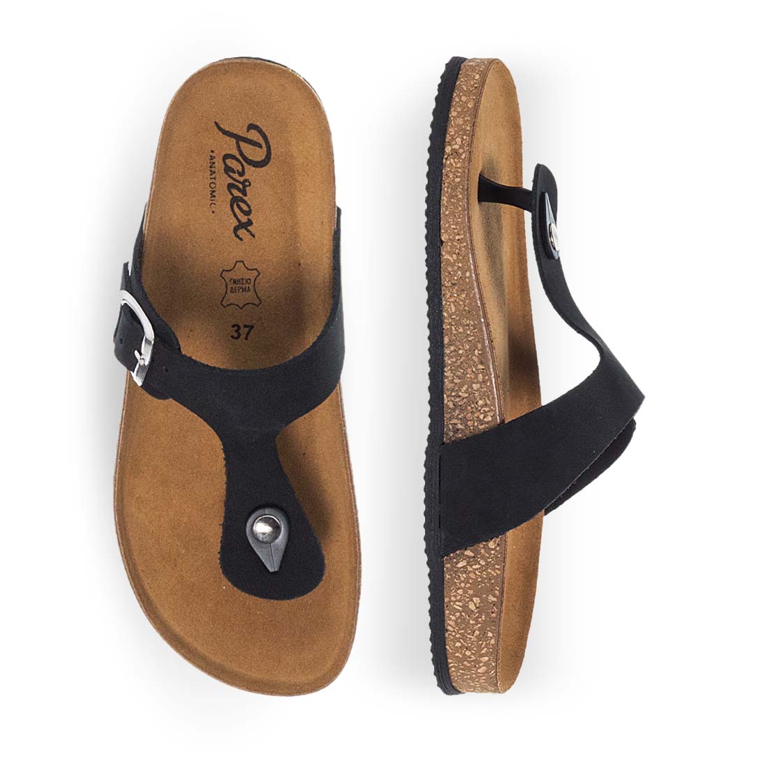 Another comfortable choice for your summer style are these leather sandals for women by Parex. Fork in the front and a buckle strap fastening. Unique combination of materials and colors. Super soft leather footbed and stable non-slip sole with heel. These monochrome leather sandals stand out for comfort and style. Available in black, brown and camel color.