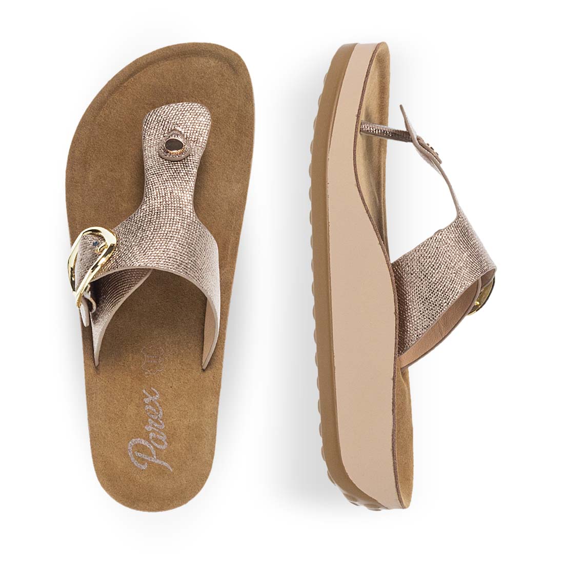 Comfortable sandals Parex for women. Wide strap on the top with buckle strap fastening . Extremely soft footbed and platform type sole. Made of high quality eco leather. The perfect choice for this sandal season.