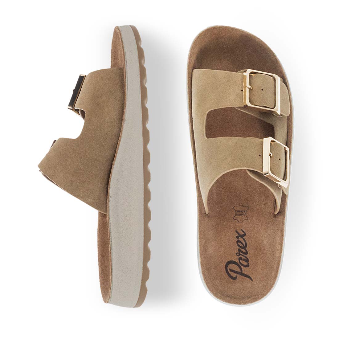 Comfortable sandals by Parex. Wear these modern and comfortable sandals by Parex all day.They have two straps with adjustable buckle strap fastening. Soft insole and a stable sole ideal for comfortable steps. Easy to fit.