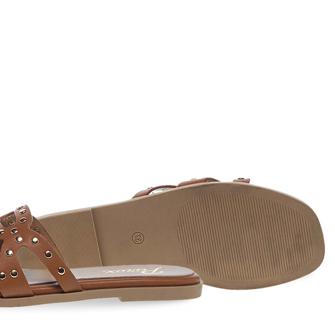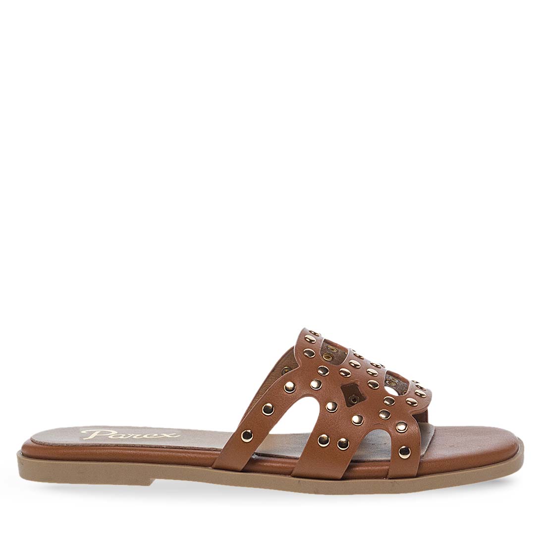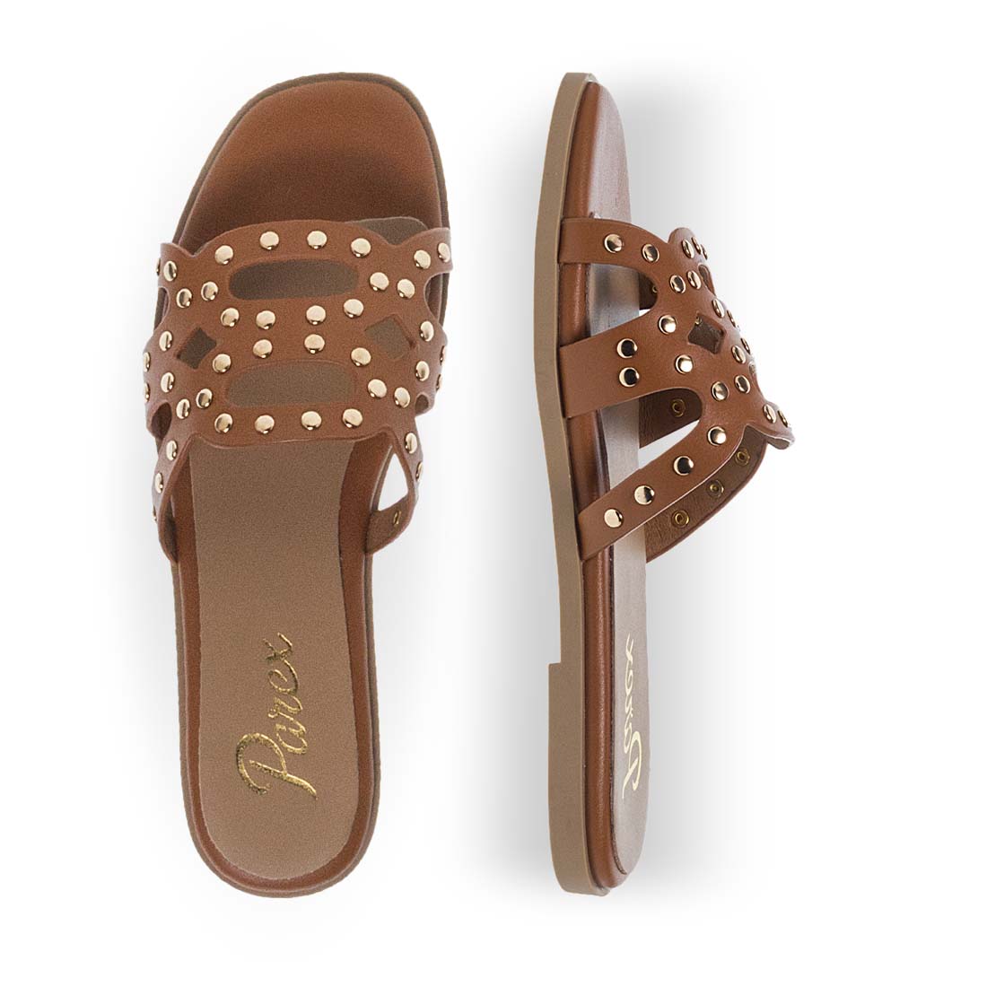 Flat sandals by Parex. These sandals will look great with any outfit. Modern design with wide strap and rhinestone details. Stylish and comfortable sandal. Easy application.