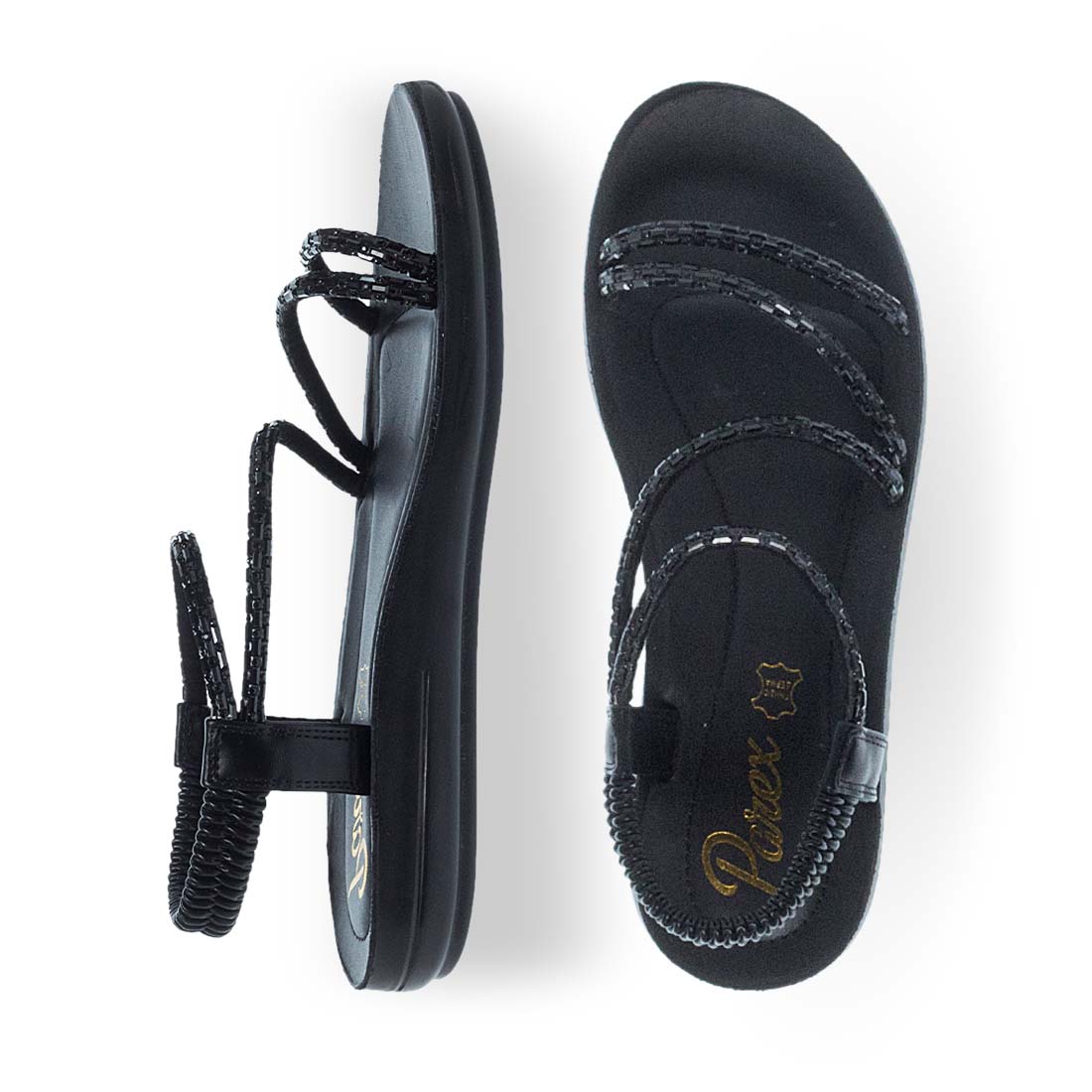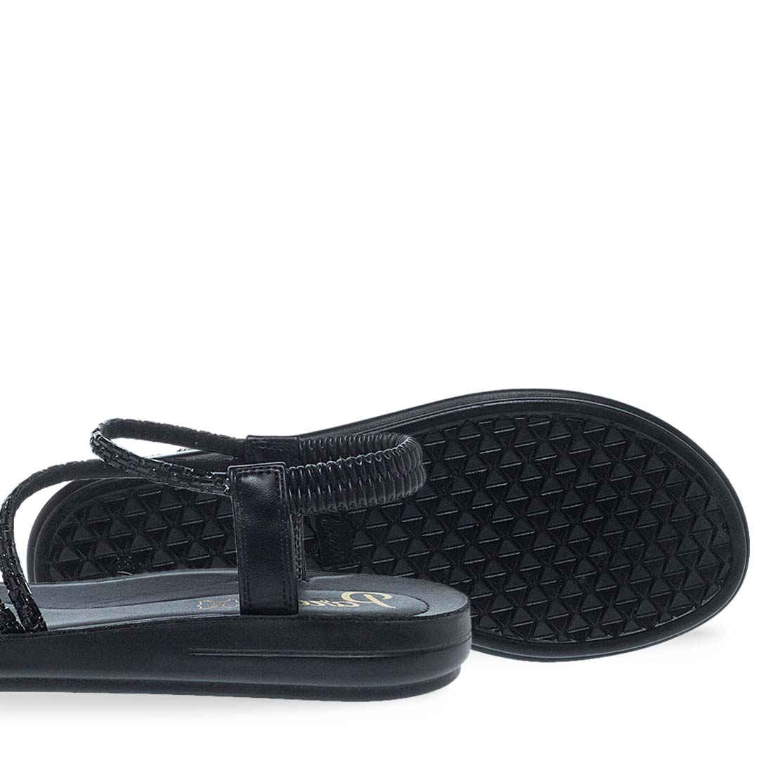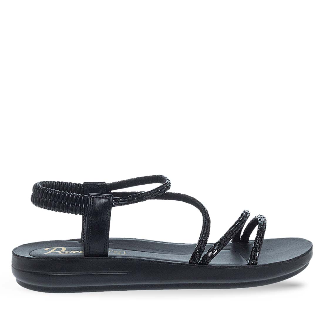 Fashionable sandals for women. Strass detail on the upper. Elasticated strap at the back. Comfortable leather footbed and durable flat sole for steady and modern steps. Refresh your style with these stylish sandals.