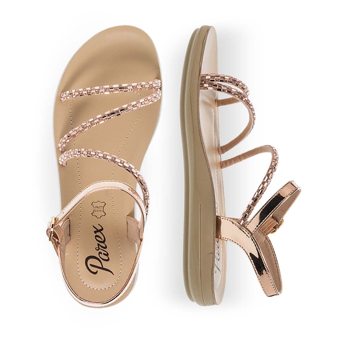 Modern summer sandals by Parex. Made of excellent faux leather. Buckle strap fastening. Comfortable leather insole. This style will look great with your fresh wardrobe. Ideal to use day to night.