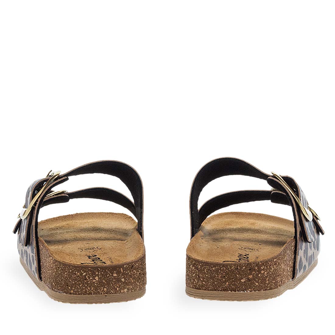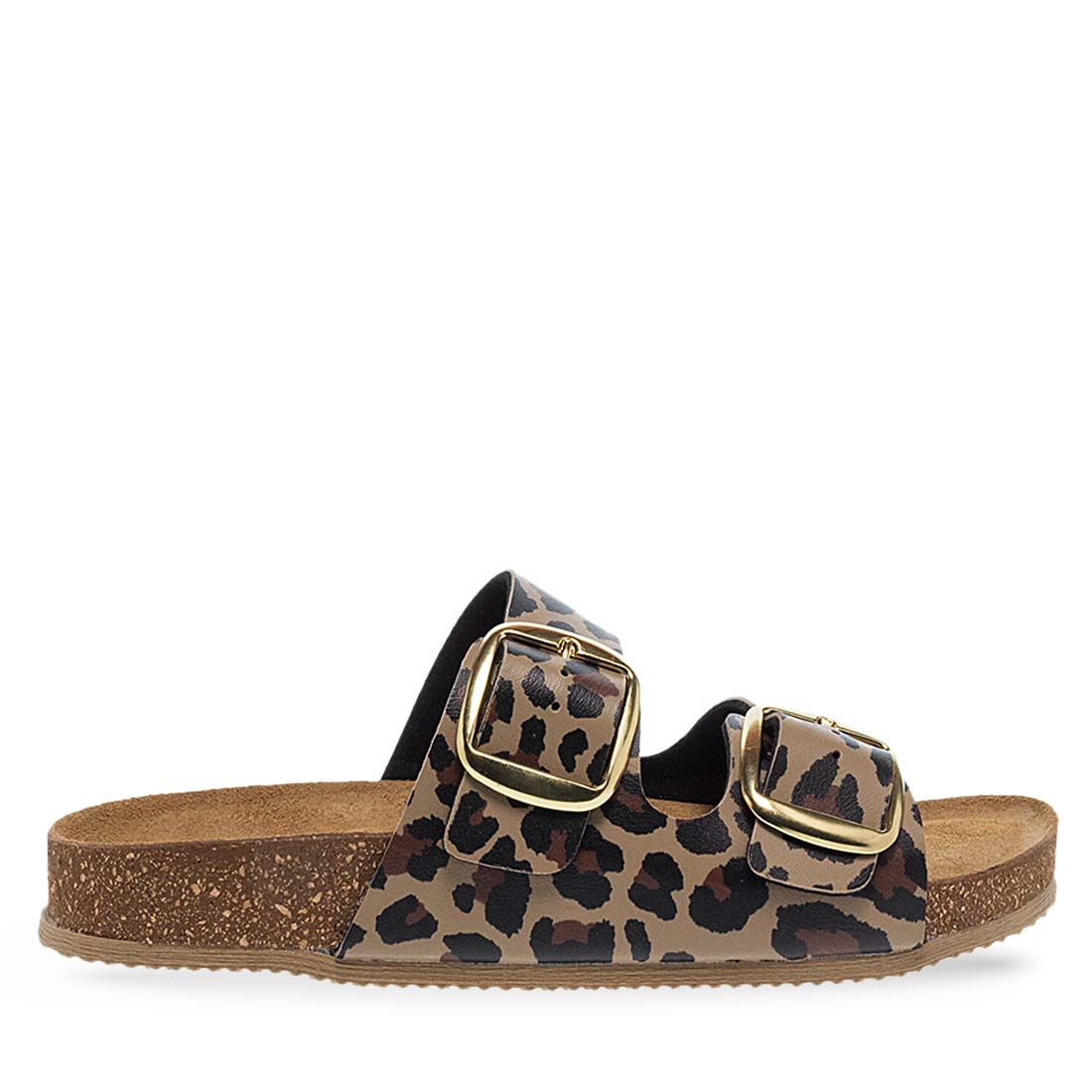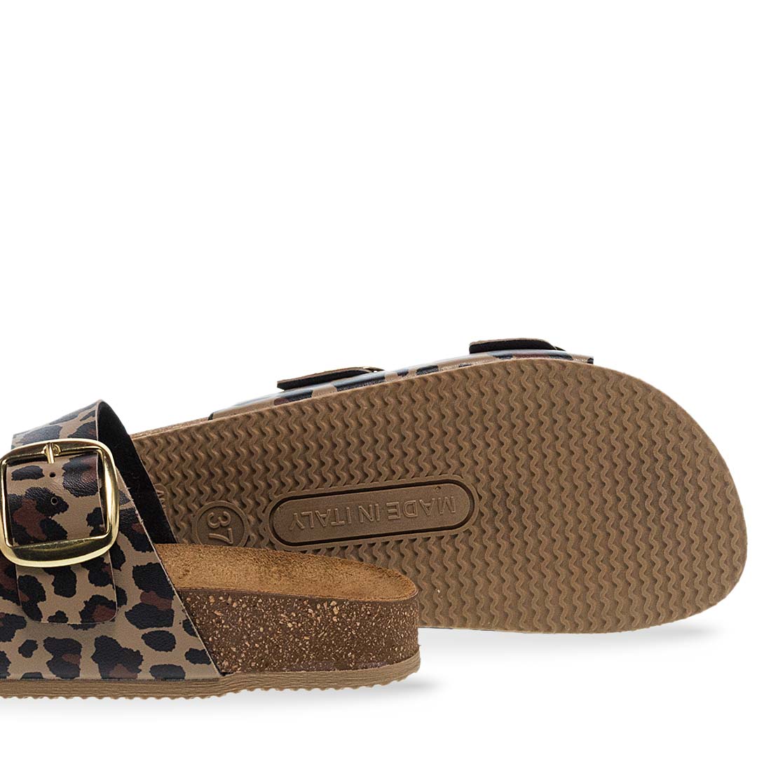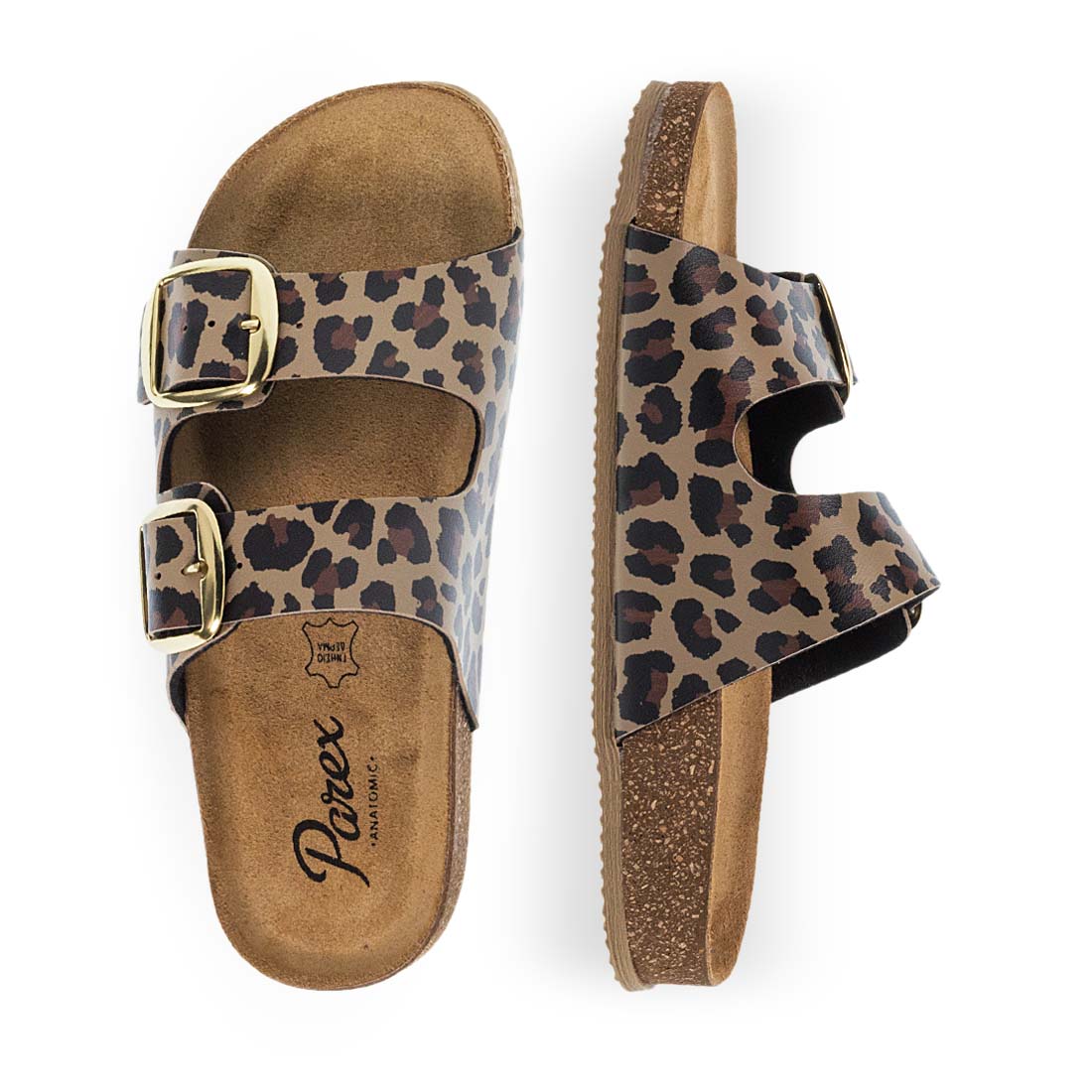 Women''s sandals by Parex. Women''s Parex sandals with animal print design and double gold buckles. Comfortable anatomical insole and anti-slip sole.