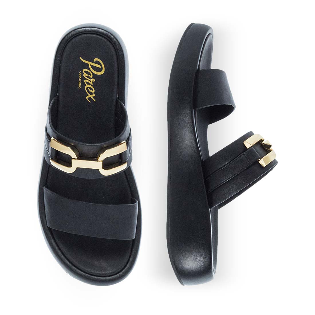 Another comfortable option for your summer style are these modern sandals for women in black and white color by Parex. Great monochrome design with a double strap and metal detail on the upper. Soft insole and durable sole.