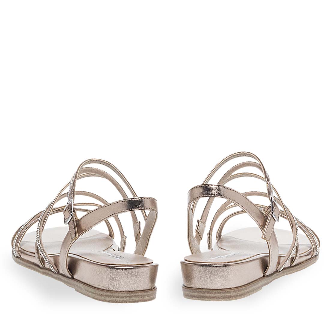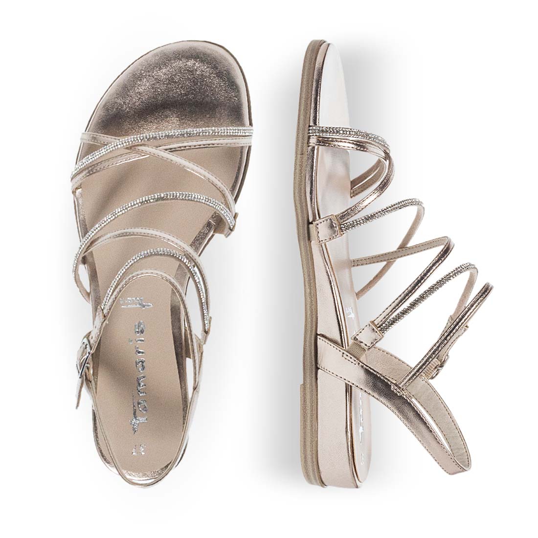 Add some sparkle to your look with these modern sandals by Tamaris in gold color. They stand out for the criss-cross straps on the upper part and buckle strap fastening at the ankle for sure steps. Platform heel for stylish steps all day and a very soft insole. The perfect choice for this sandal season.