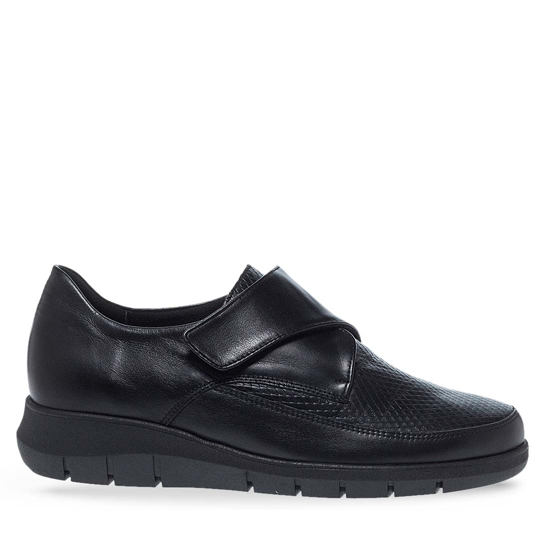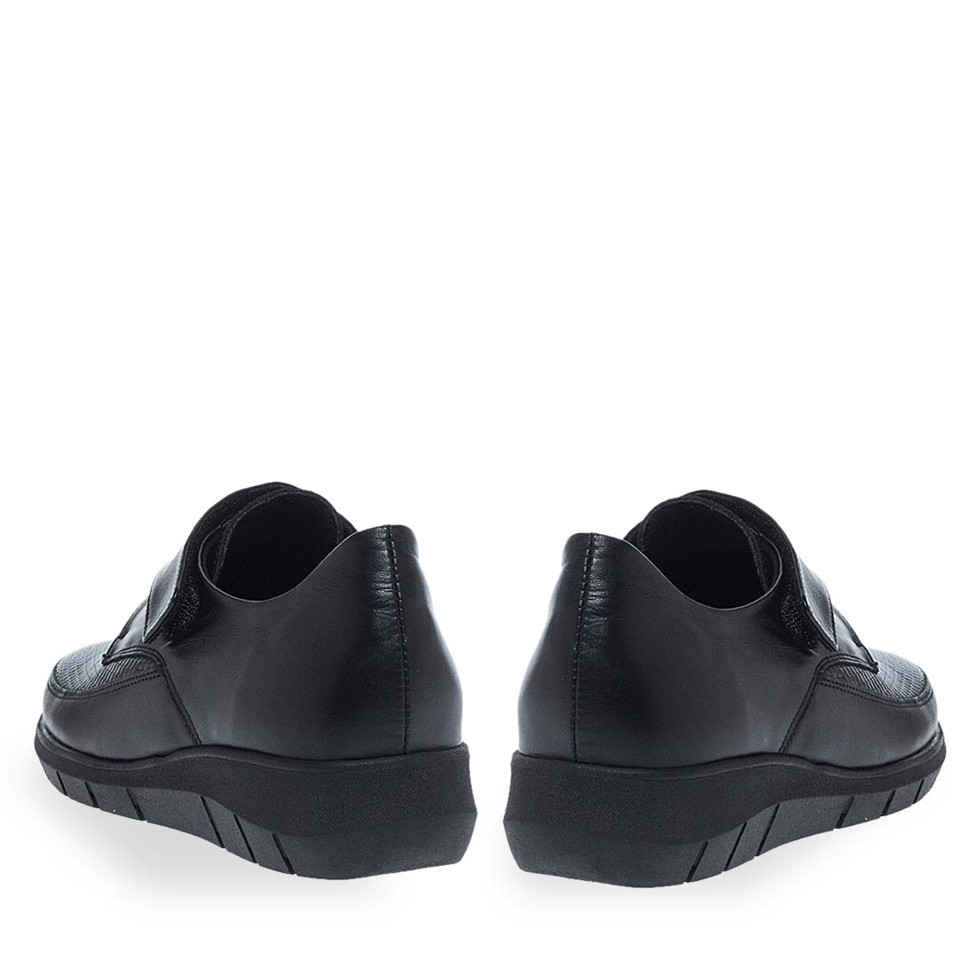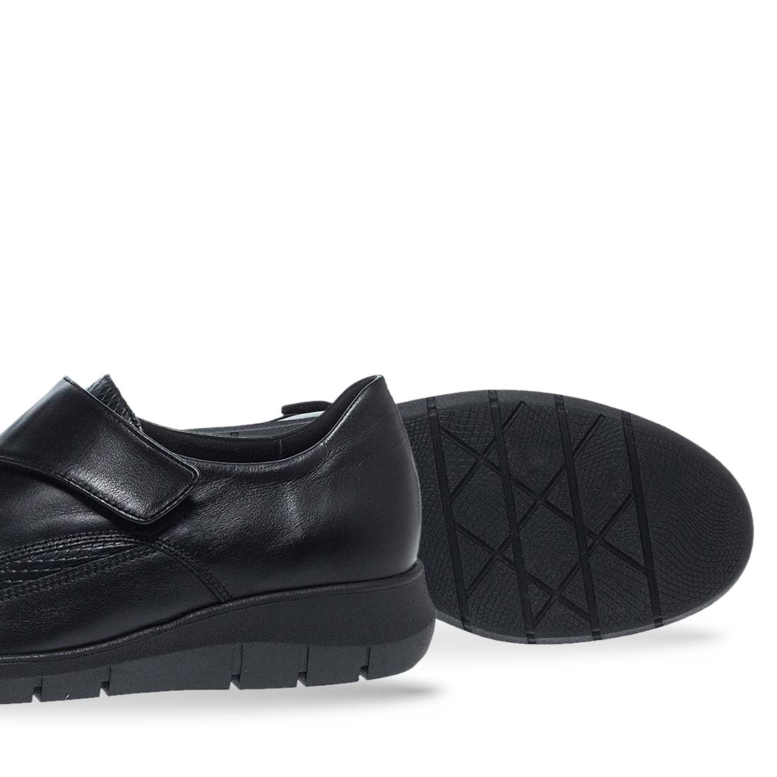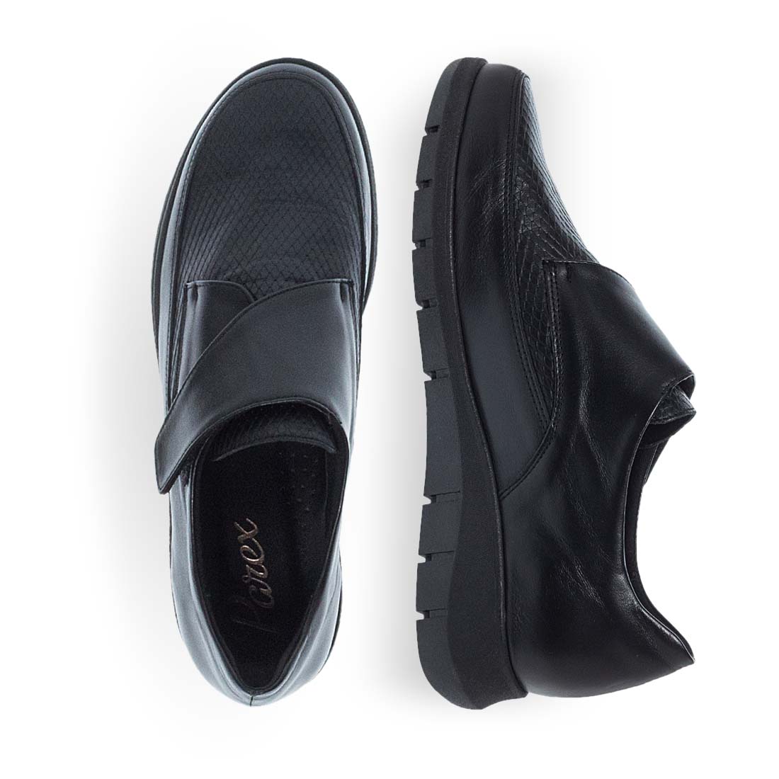 These women''s leather slip on shoes by Parex are designed from leather.Sneakeskin design. They have a durable, low platform sole to give you extra height in your daily life. Soft insole and velcro closure.