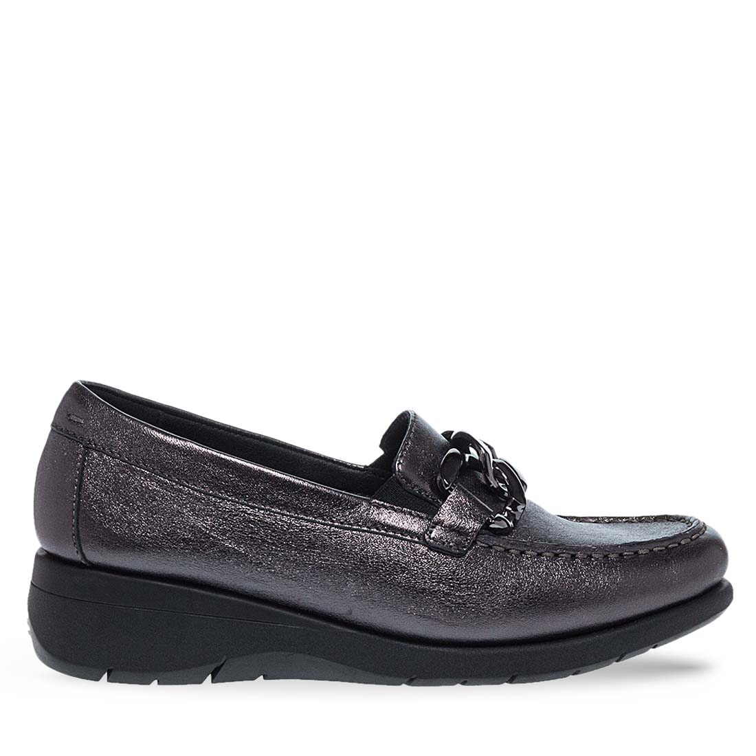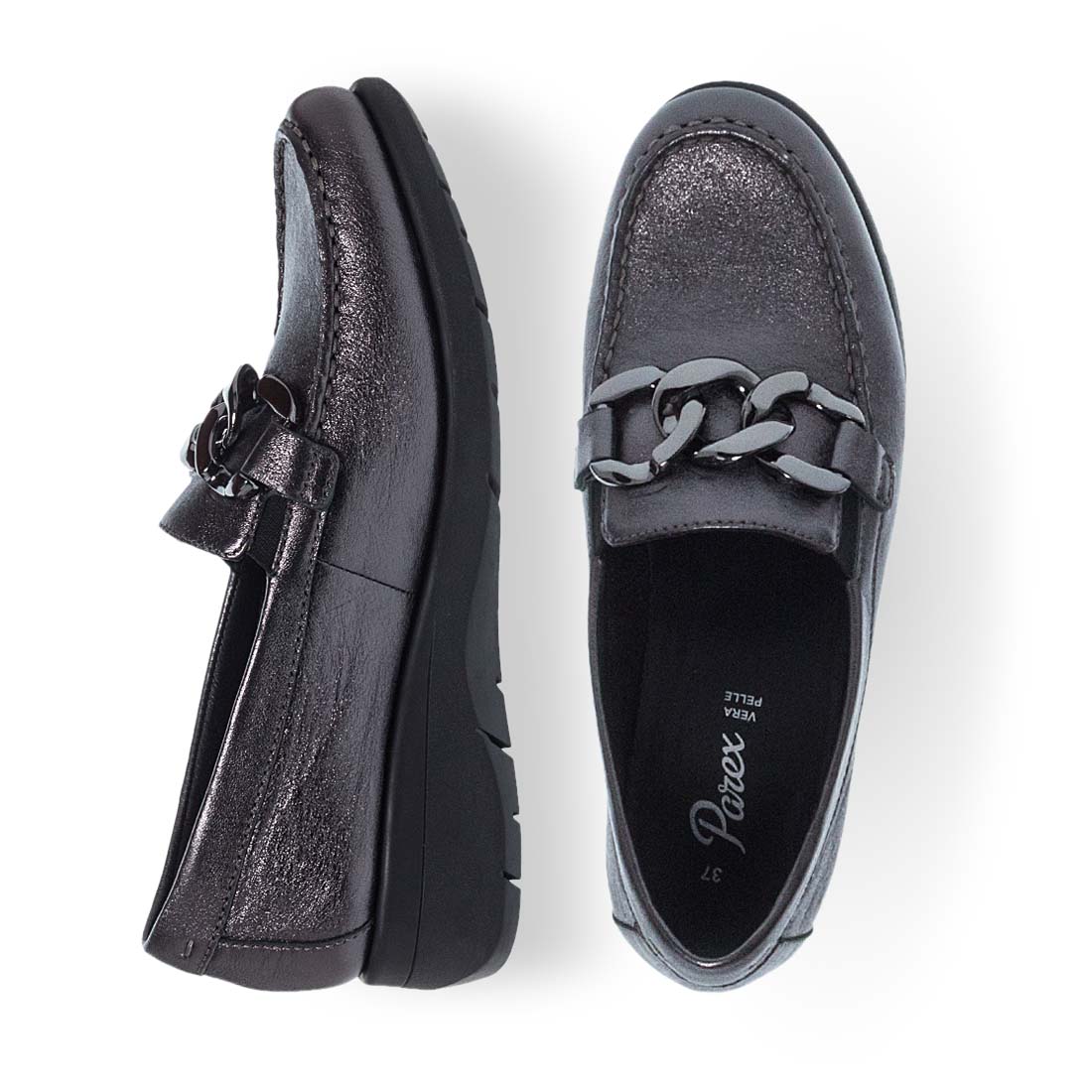 Another comfortable choice for your everyday style are these leather slip on by Parex. They have a flexible platform sole and an extremely soft leather insole. Available in anthracite color. This style will look great with your fresh wardrobe.