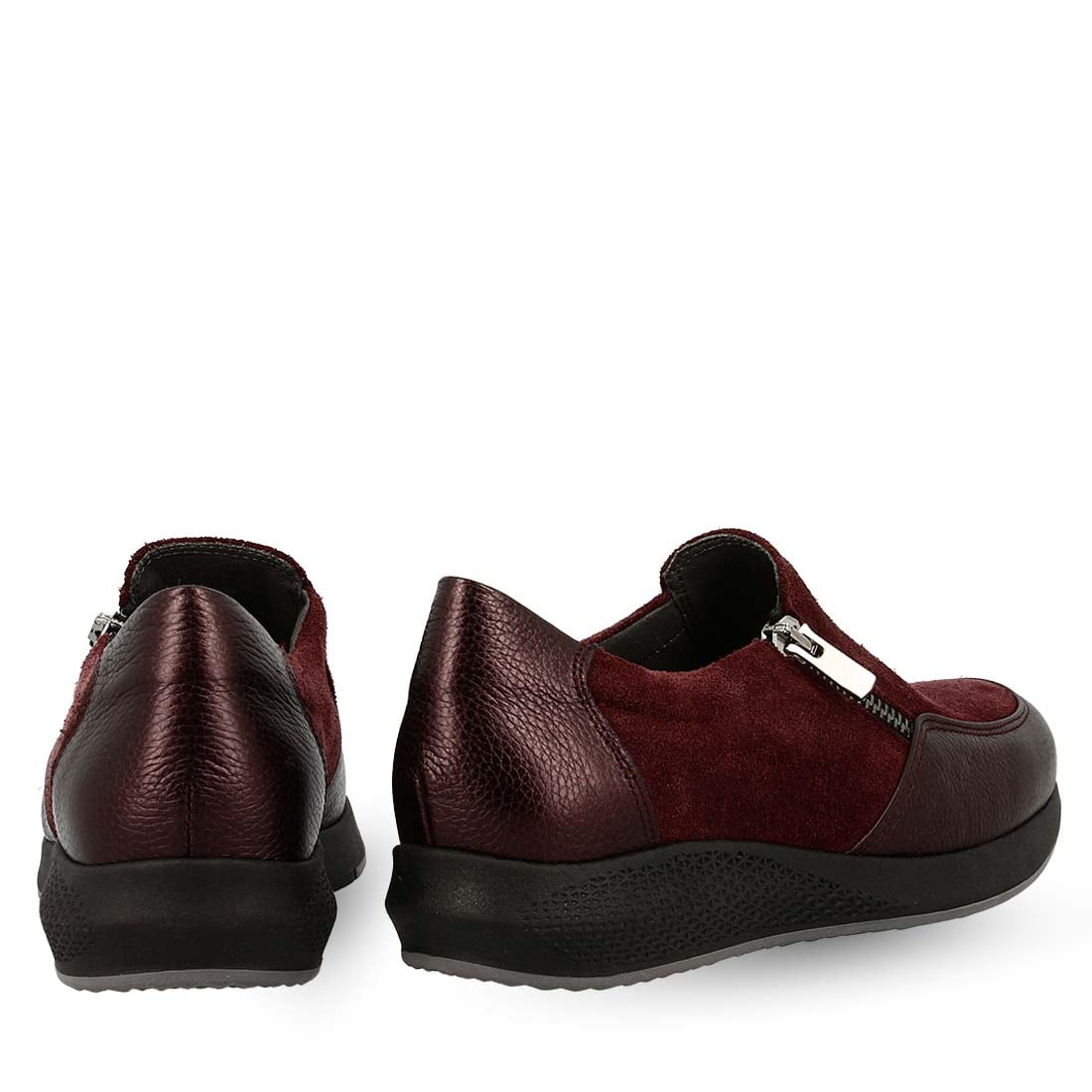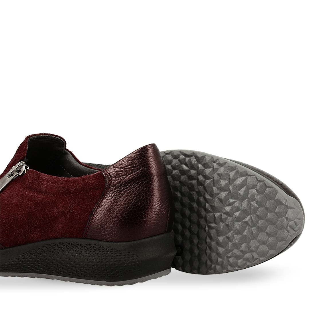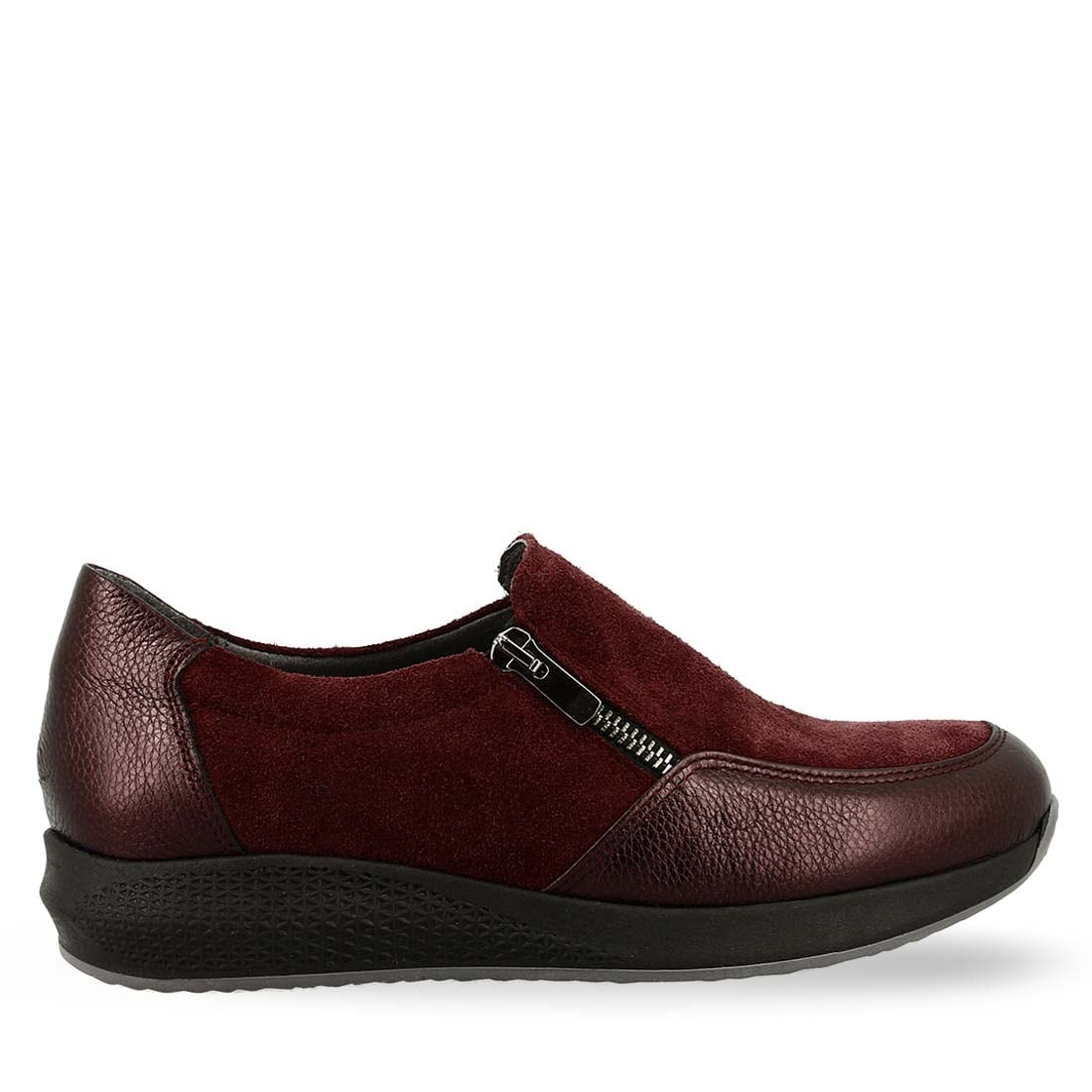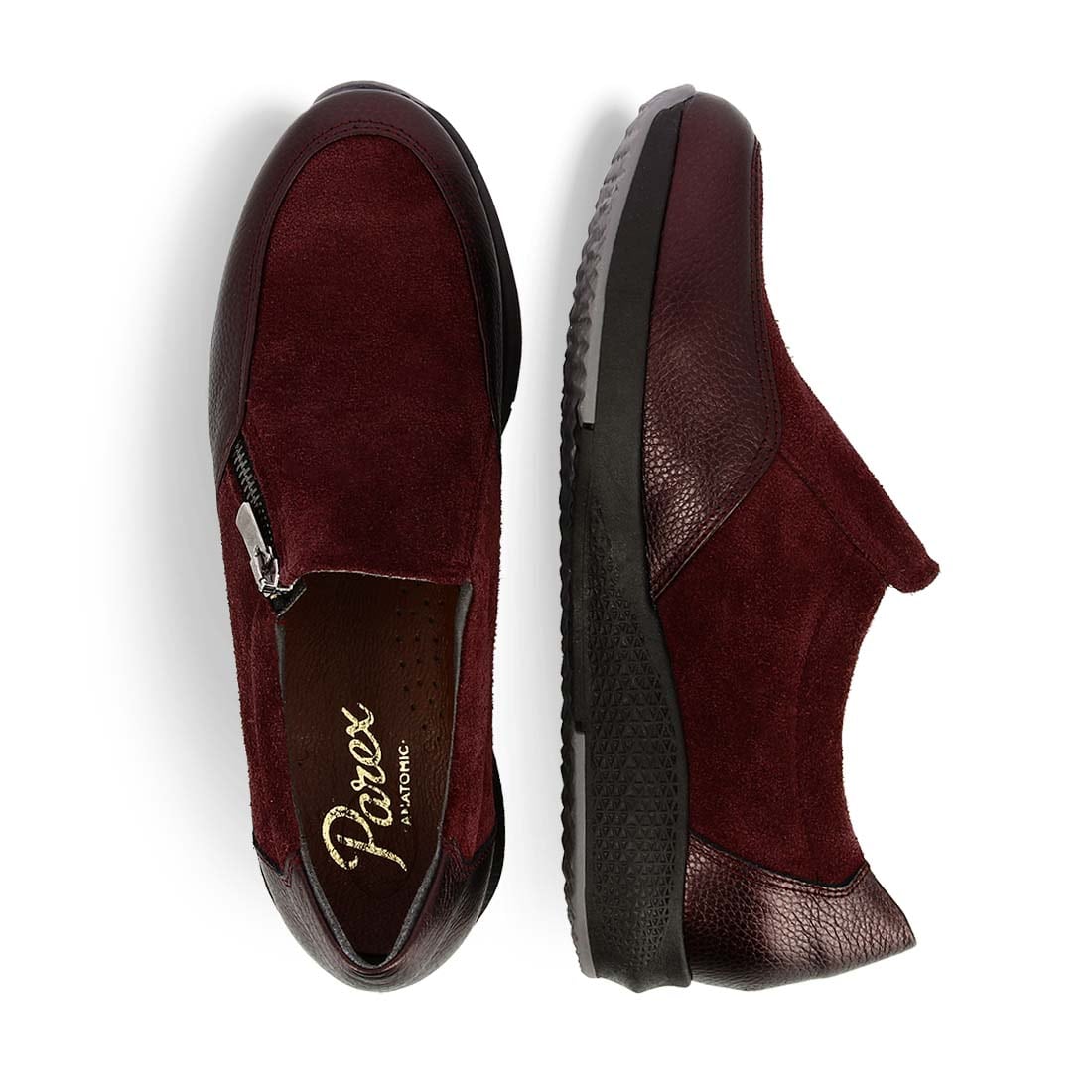 These women''s leather slip on shoes by Parex are designed from premium leather in combination with suede and patent leather. They have a functional zipper on the side for easy fit. They have a durable, low platform sole to give you extra height in your daily life.