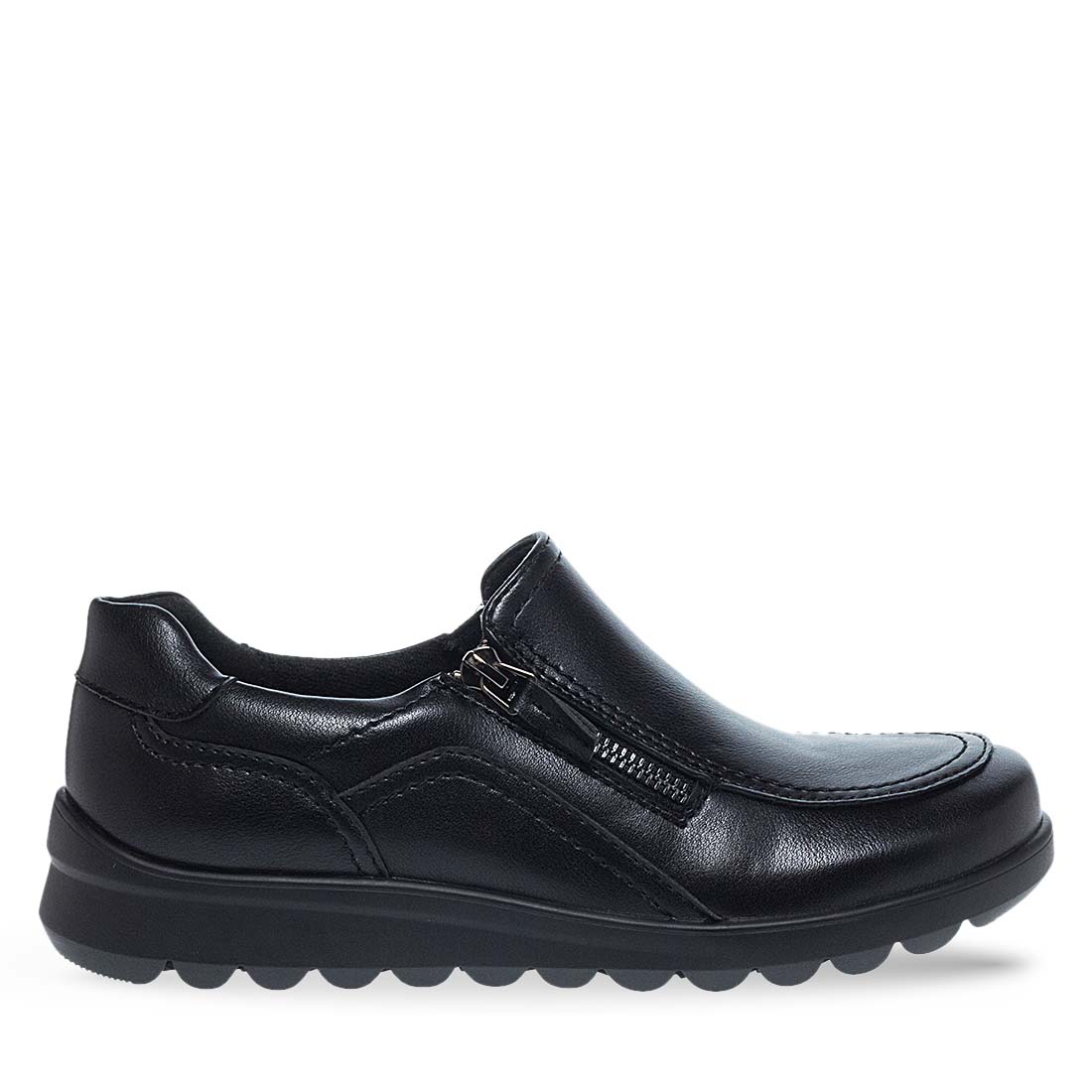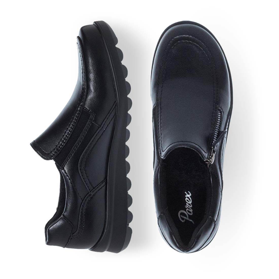 Comfortable slip on by Parex, from faux leather material. They have a durable, low platform sole to give you extra height in your daily life. Zip closure and elasticated detail. Easy application.