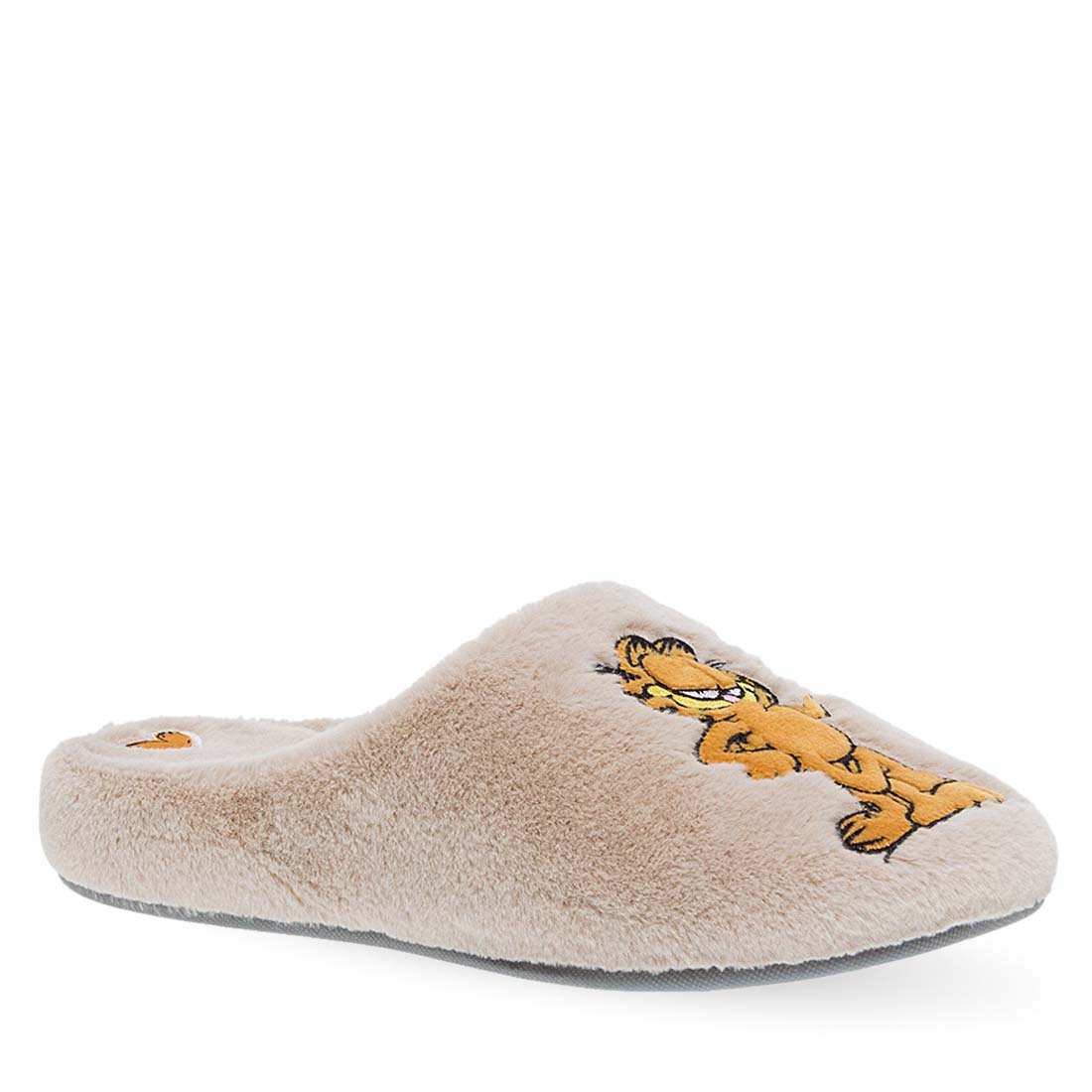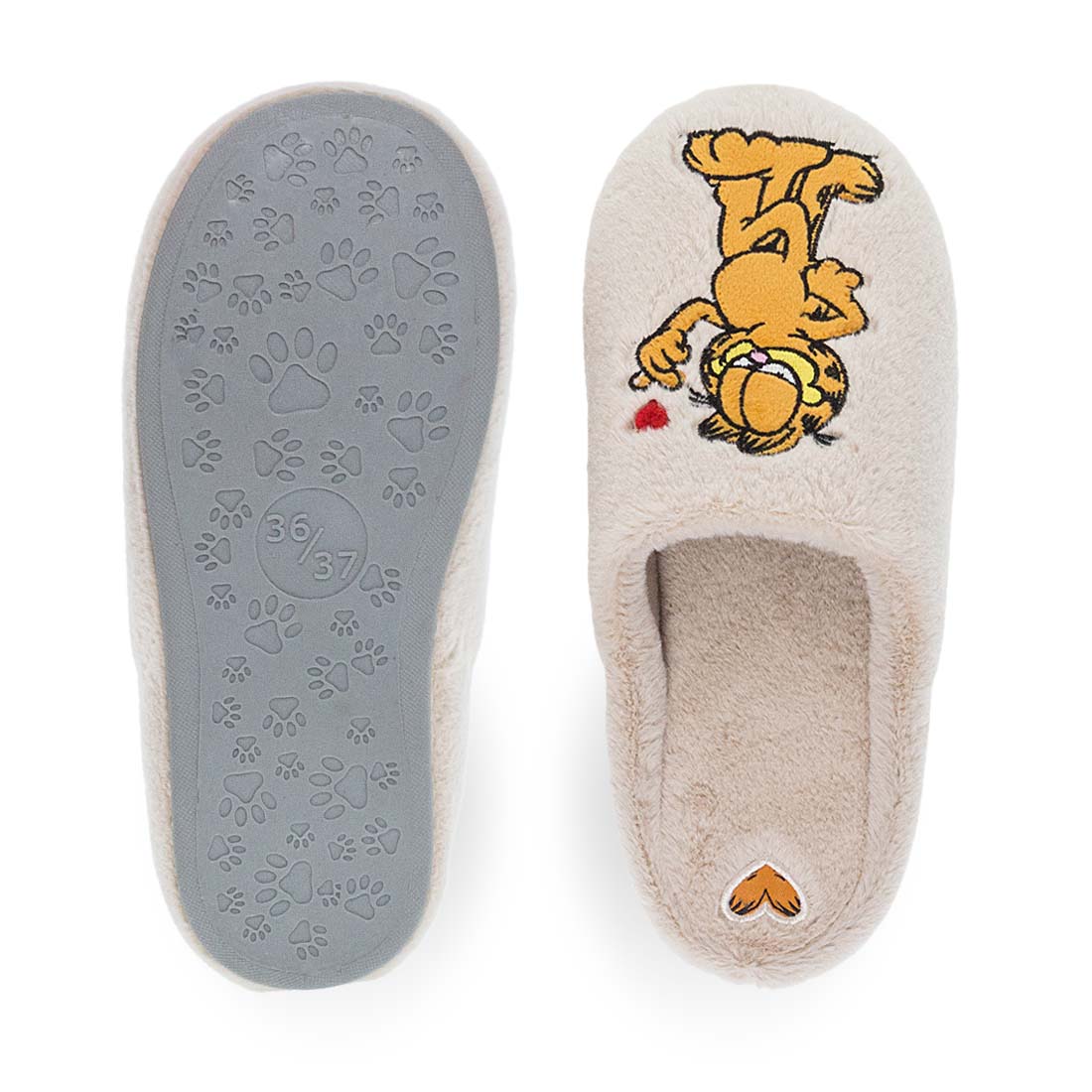 Women''s house slippers by Garfield. Parex Garfield slippers in beige and grey color with Garfield and hearts design. Warm, cute, and playful.