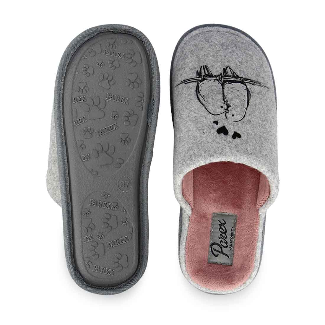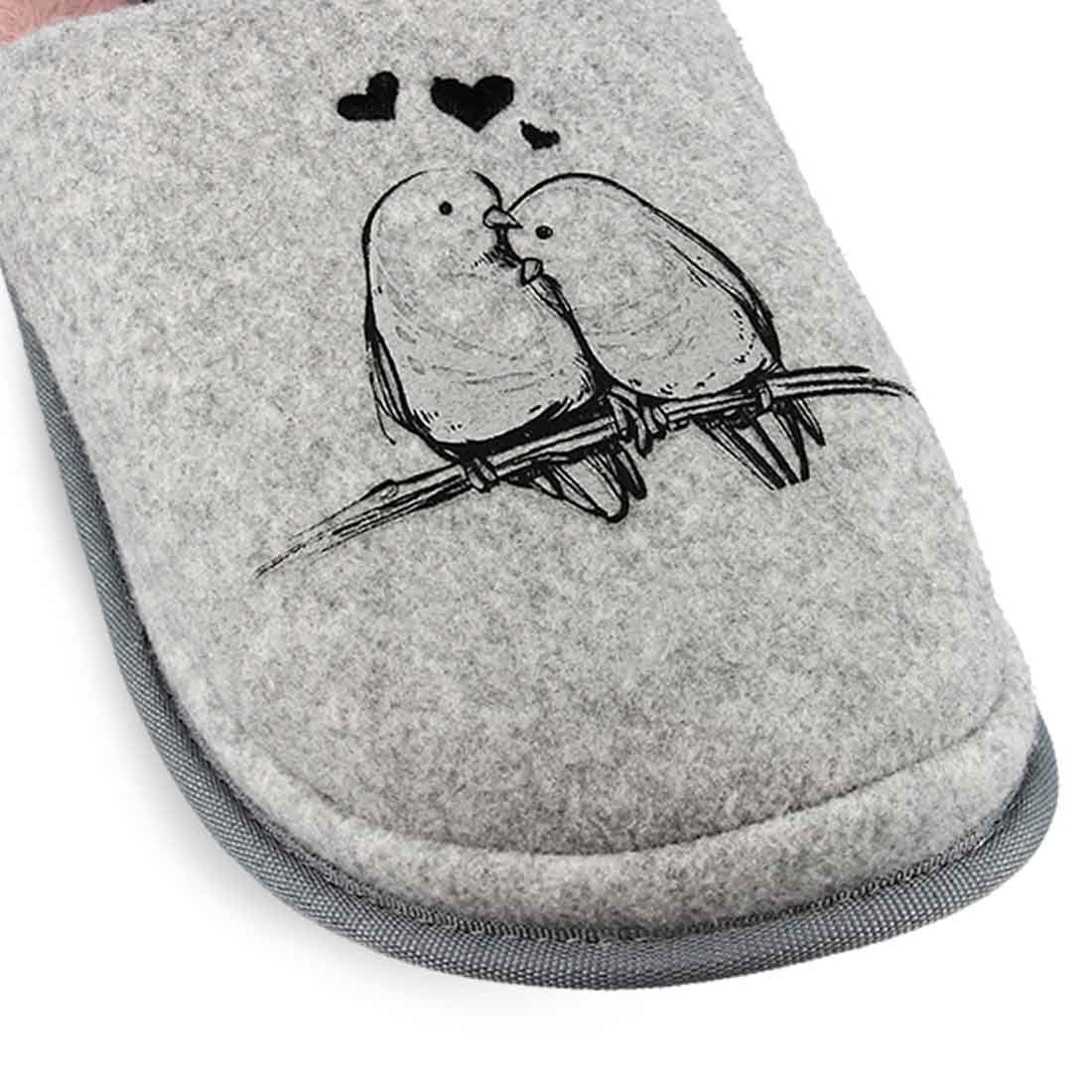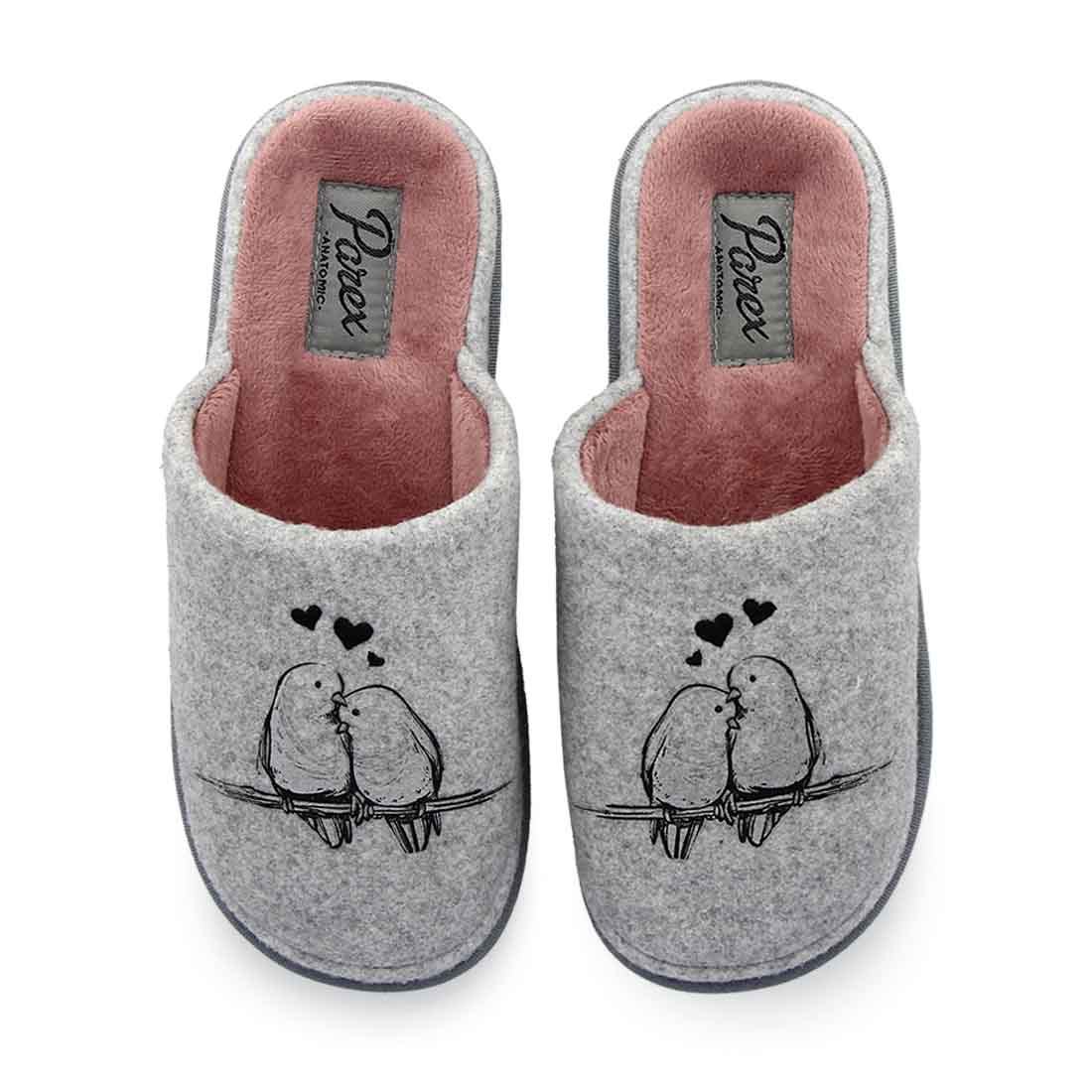 A perfect combination of comfort and style, these women''s slippers with hearts and sparrows design in 2 colors. Soft flexible and warm footbed and non-slip sole.