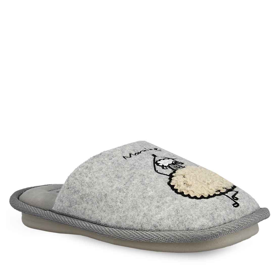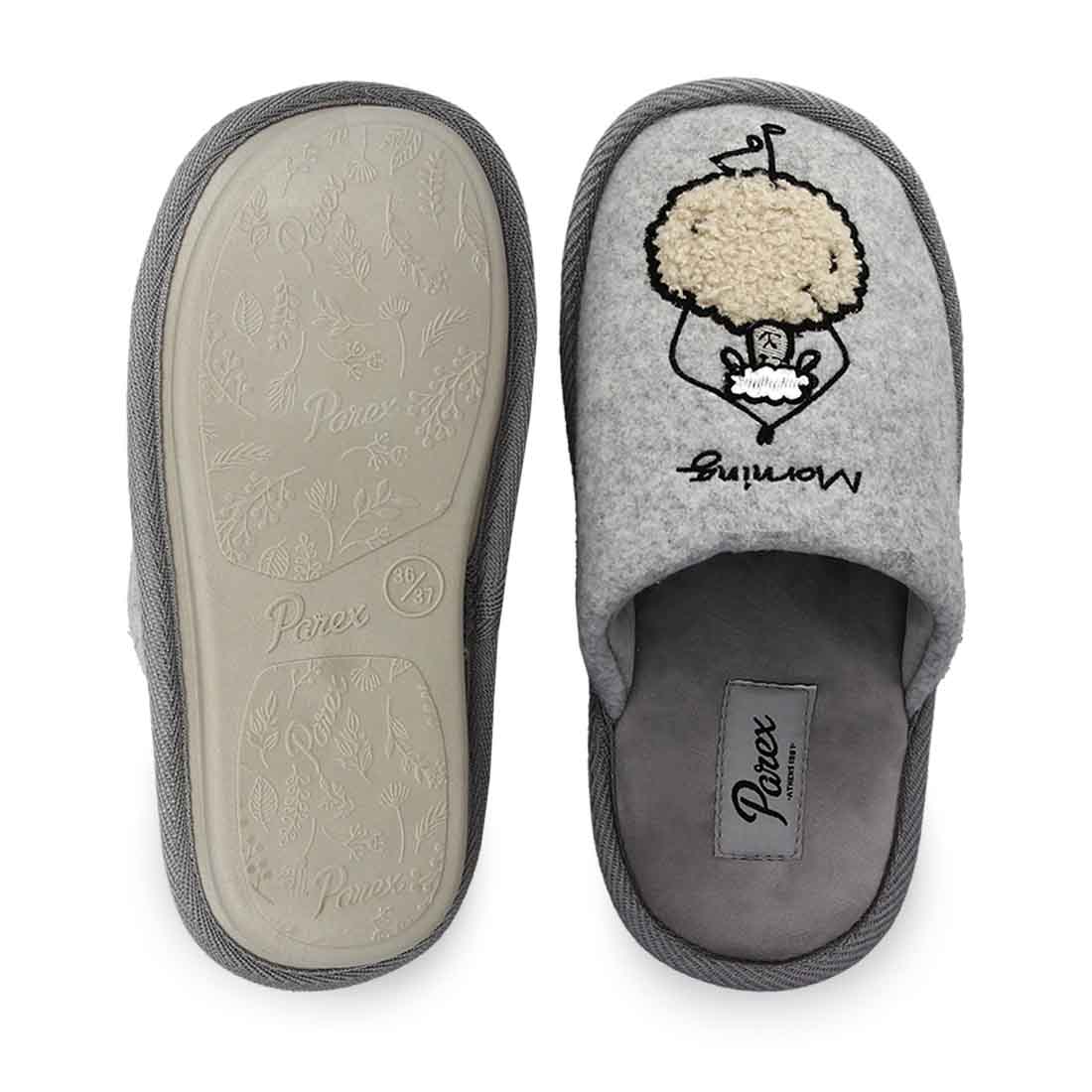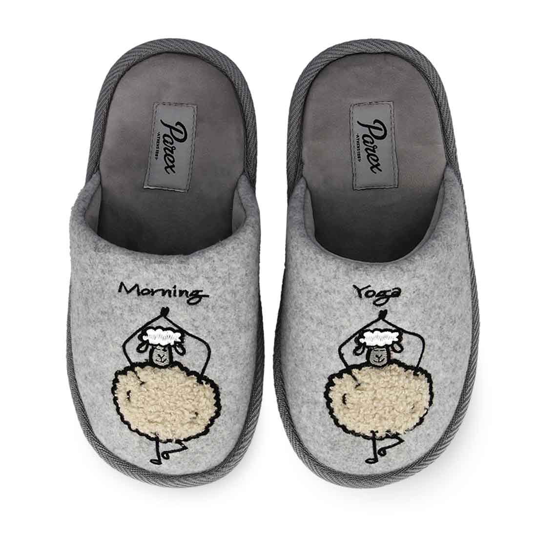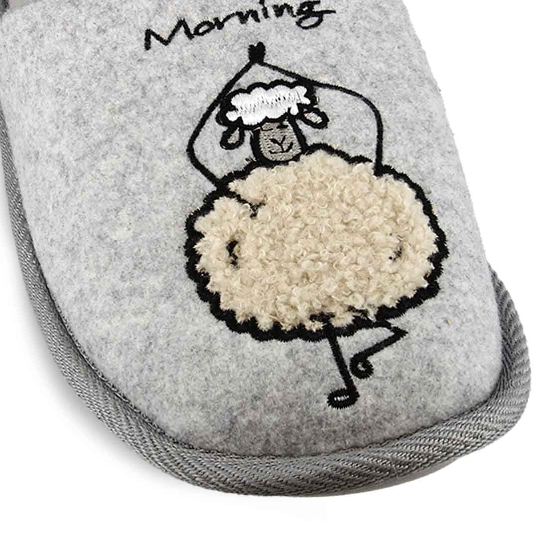 Women''s house slippers with a modern sheep design. Soft and warm fabric on the upper. Soft insole ,available in grey and pink color.