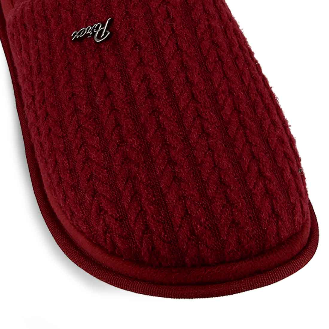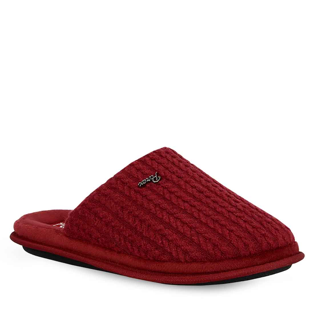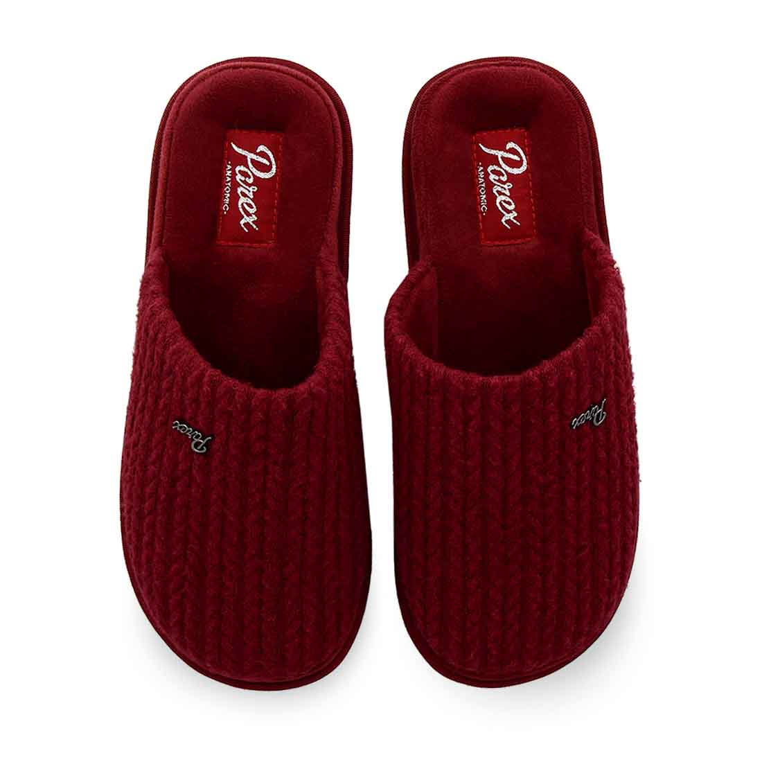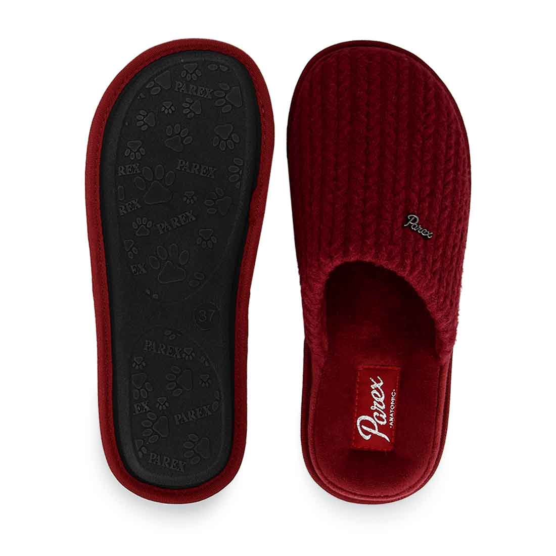 Classic house slippers for women in blue and red color. Vertical stripe design on the upper. Soft footbed and a stable outsole.