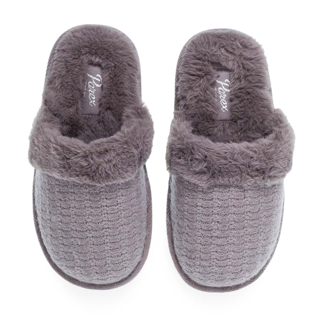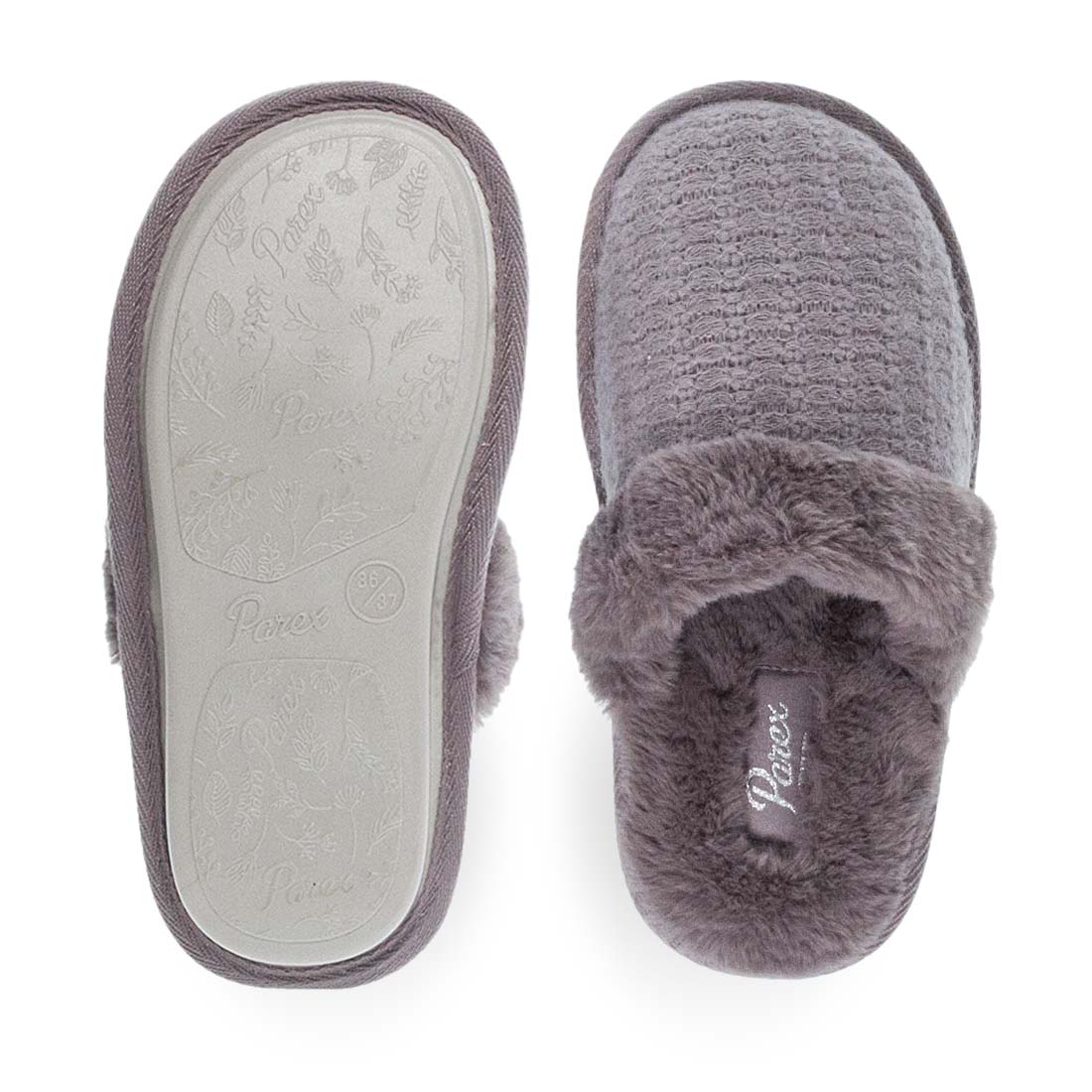 Warm house slippers Parex with fur lining and fur detail on the upper. Comfortable and monochrome design. A good mix of comfort and style. Durable sole and easy to wear.