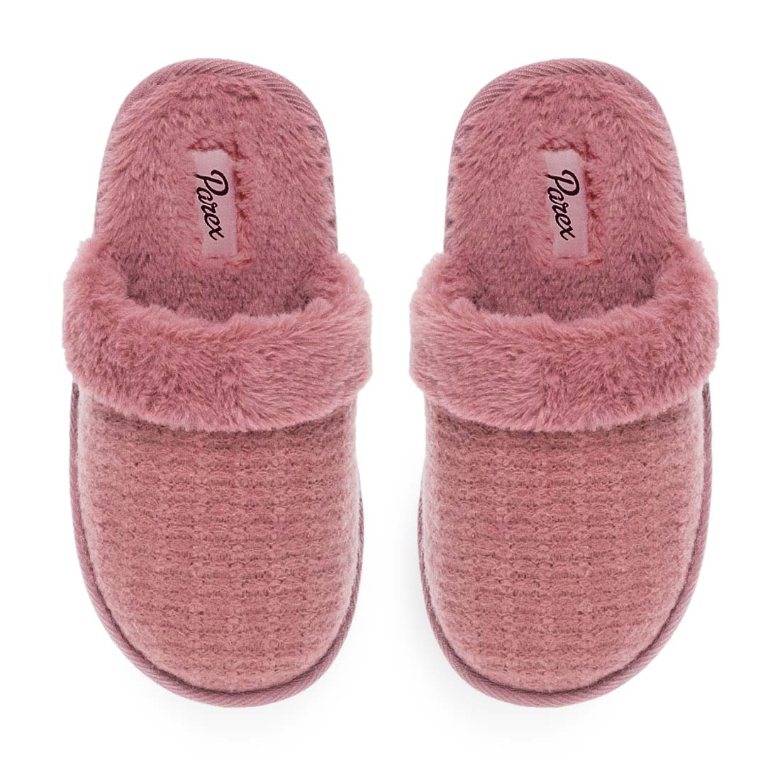 Warm house slippers Parex with fur lining and fur detail on the upper. Comfortable and monochrome design. A good mix of comfort and style. Durable sole and easy to wear.