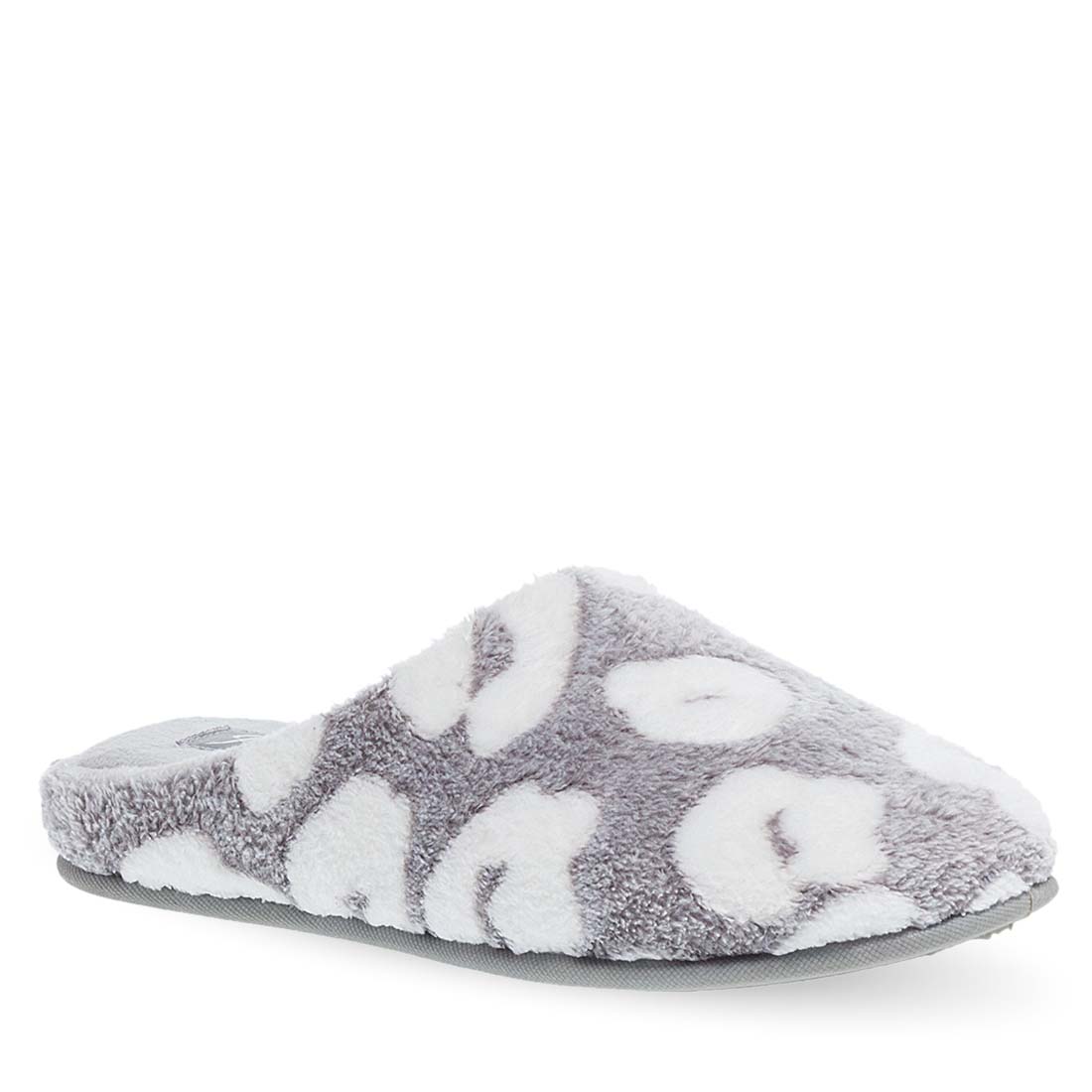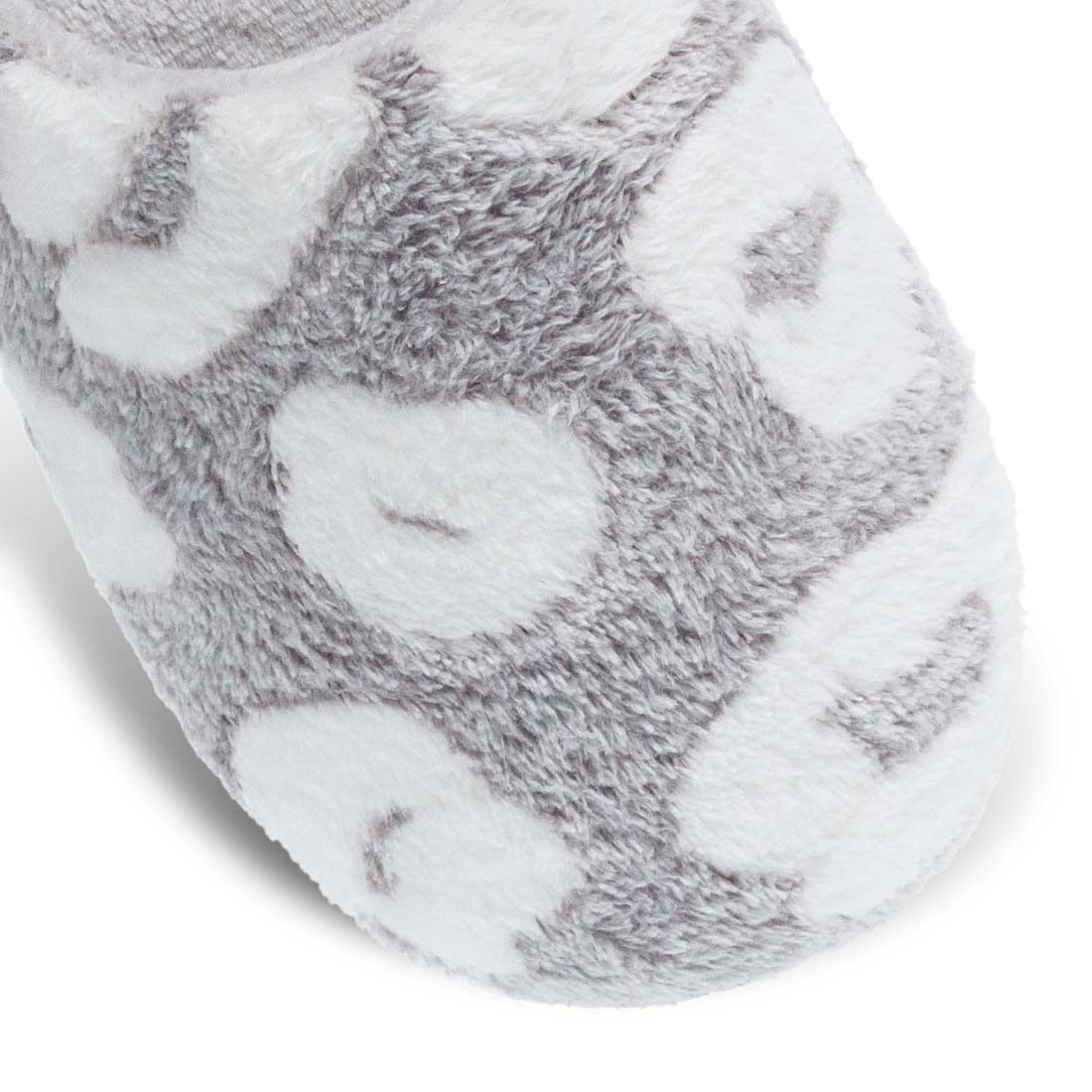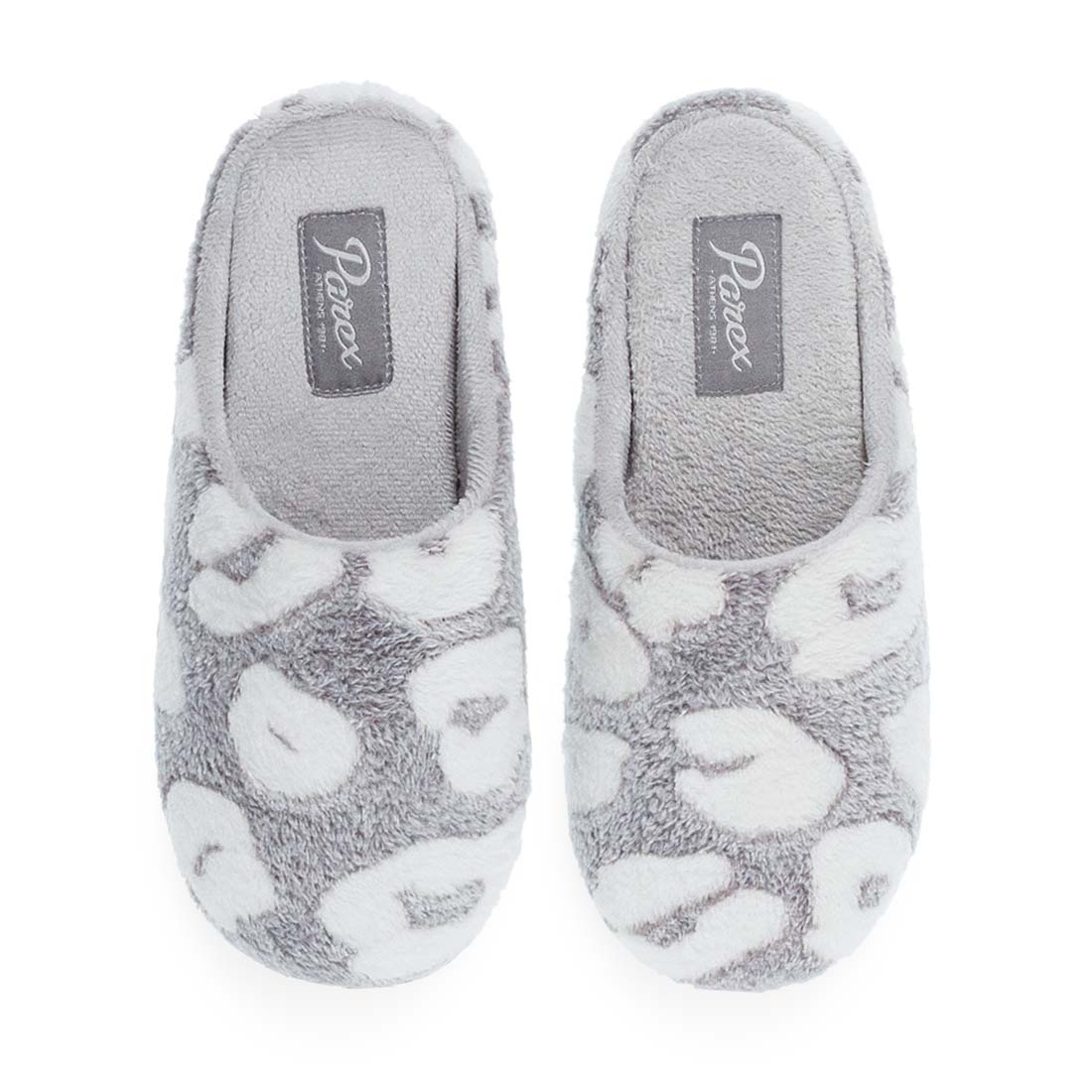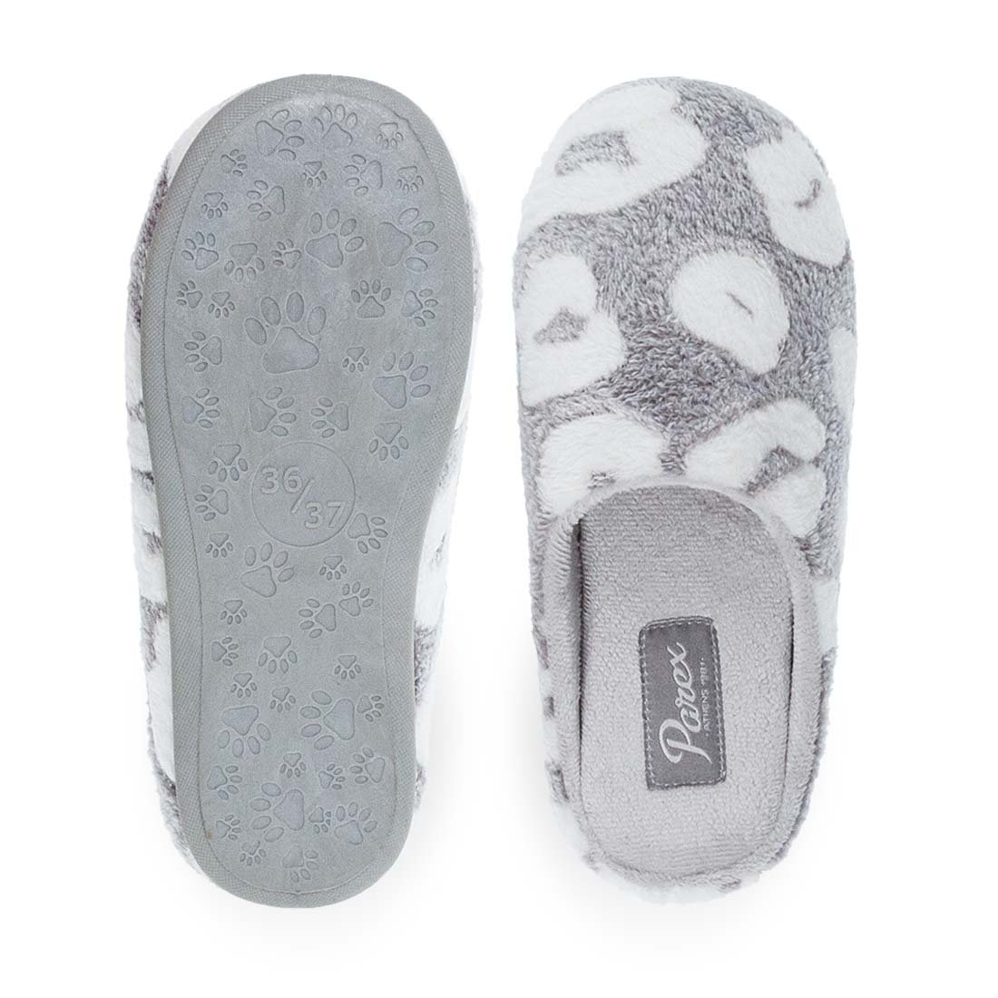 Modern house slippers by Parex . They have a soft footbed and durable sole. Available in gray and pink color with polka dot details. Comfortable design. Easy to fit.