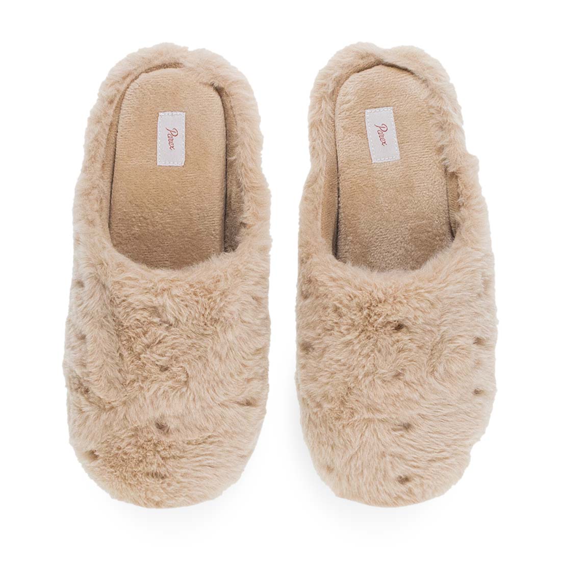 House slippers by Parex with faux fur lining. Monochrome design. They can keep your feet more comfortable. Soft insole. You will not want to take them off.