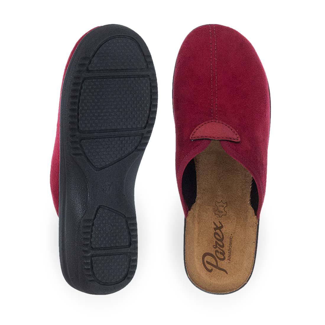 Monochrome house slippers by Parex. Soft velvet fabric that will warm your tired feet. Stable sole and soft footbed. A good mix of comfort and style. Easy to fit.