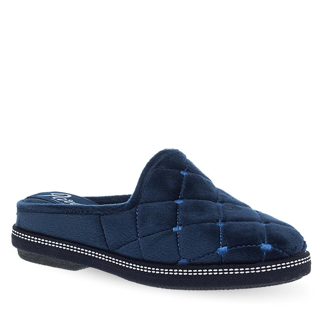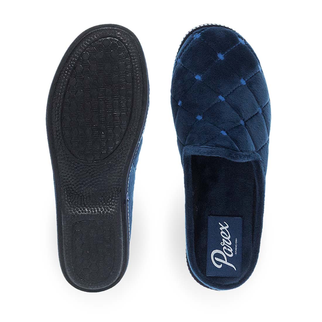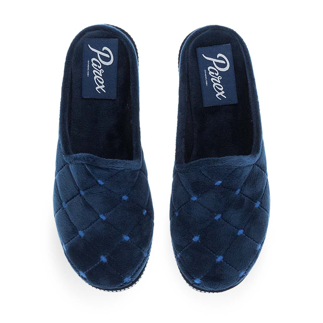 Monochrome house slippers by Parex with heel in classic line. Available in bordeaux,blue and black color. Comfortable footbed that will warm your feet and a durable non-slip sole.