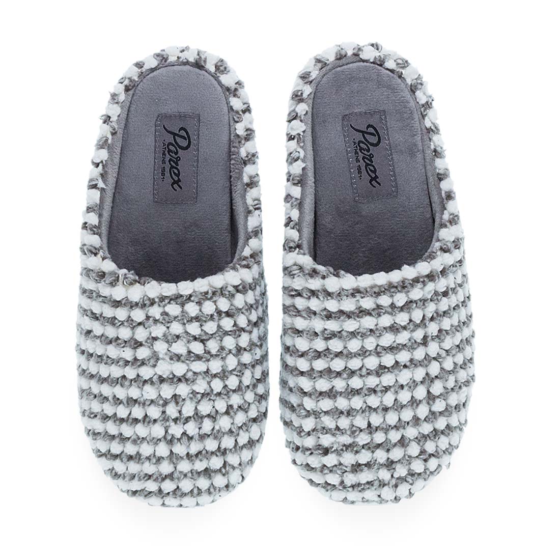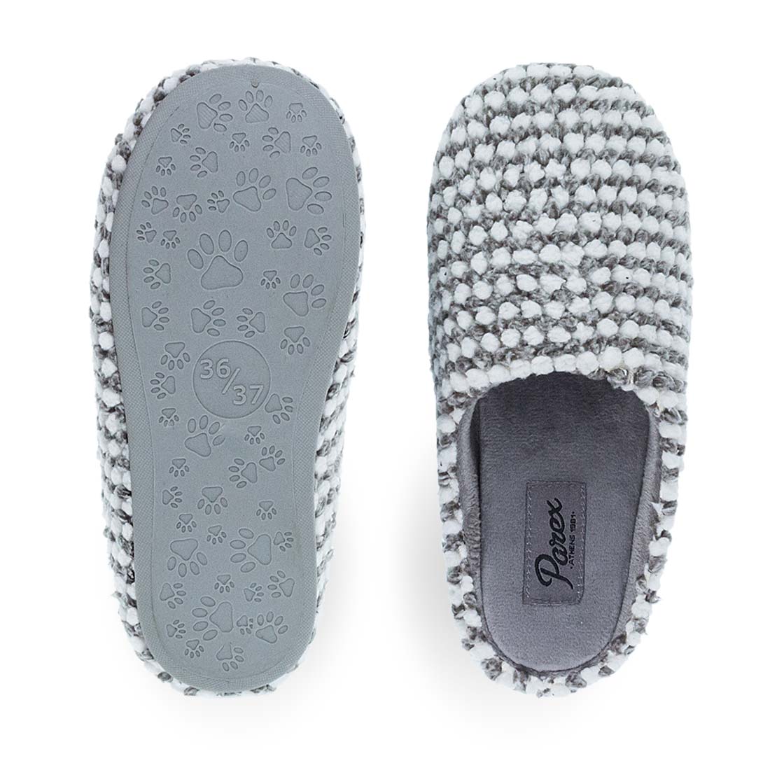 Women''s house slippers by Parex. Women’s slippers by Parex in grey and pink with knitted texture. Warm, comfortable, and anti-slip, perfect for everyday home use.
