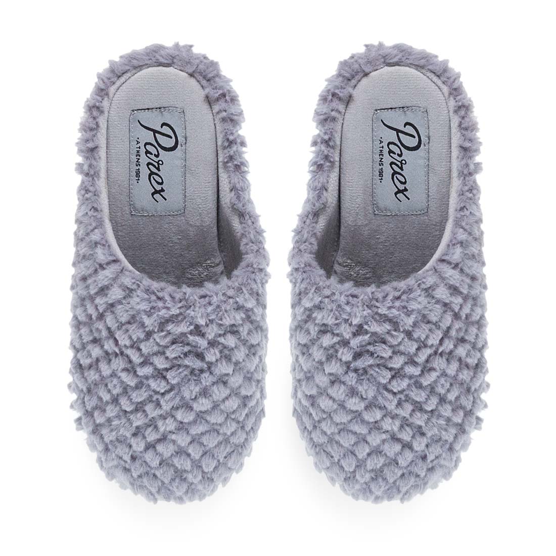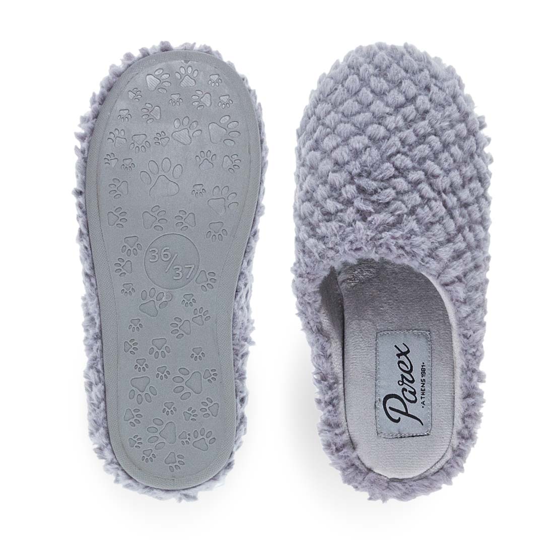 Women''s house slippers by Parex. Women’s Parex home slippers in grey and pink shades, featuring a textured bubble-like surface for extra softness and style. Lightweight and cozy, they keep your feet warm with a comfortable, steady step. The perfect choice for everyday home comfort.