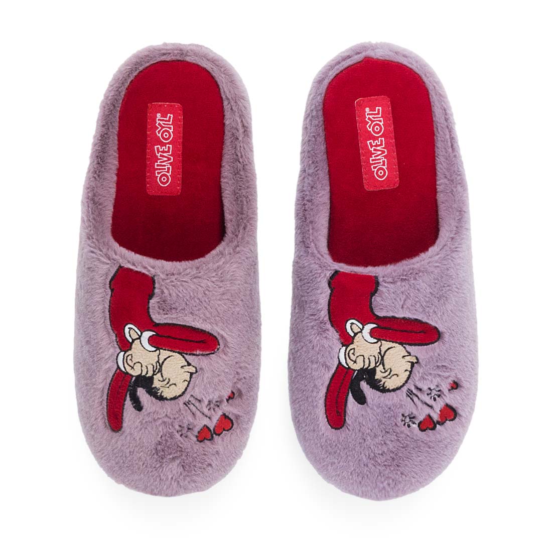 Soft house slippers Popeye with Olive hero. Made of soft textile. Suitable to wear day to night. Comfoertable and warm design. Durable outsole.