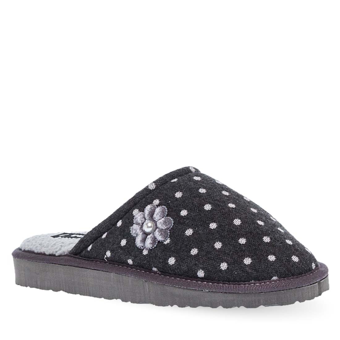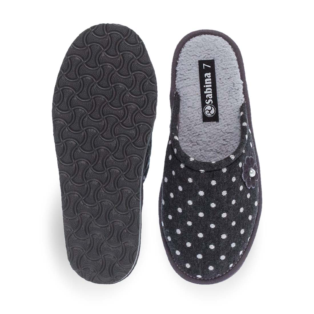 Comfortable slippers by Sabina. Soft textile with modern design.Polka dot details. Slip on style. Durable sole.