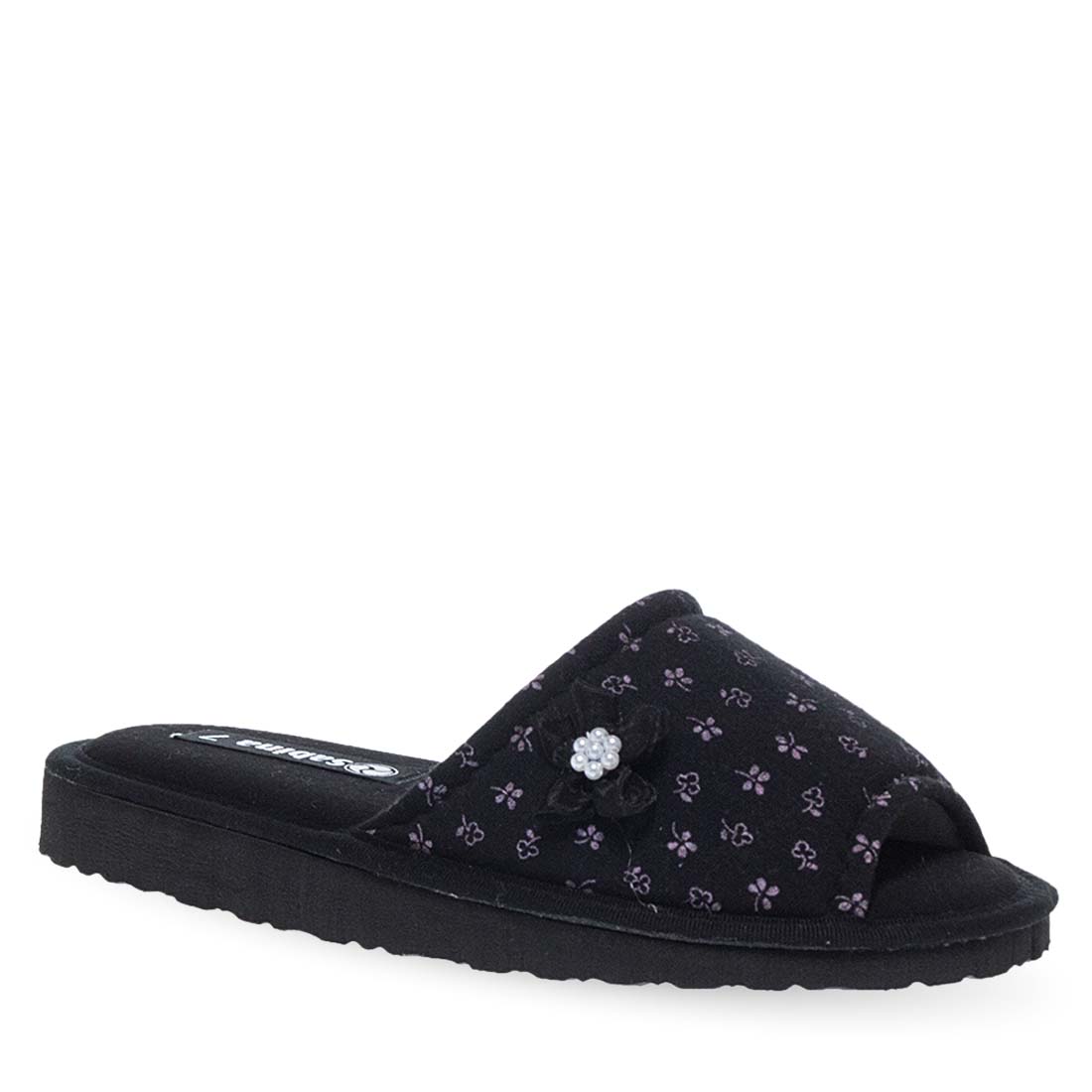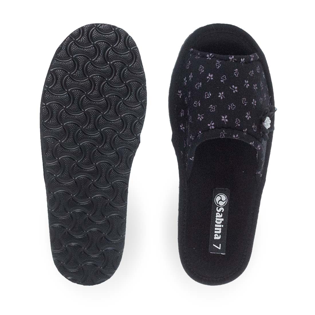 Comfortable slippers by Sabina. Soft textile with modern design. Slip on style and wide strap on the upper. Durable sole. Easy to wear.