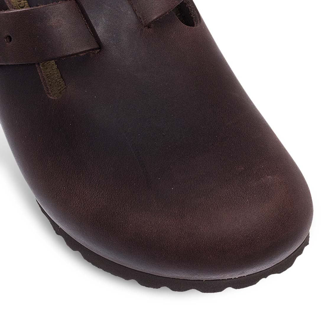 Leather slippers for women by Birkenstock. Available in brown color and classic design. Padded footbed with great arch support and stable non-slip sole. It’s the perfect pair to spend many hours in.