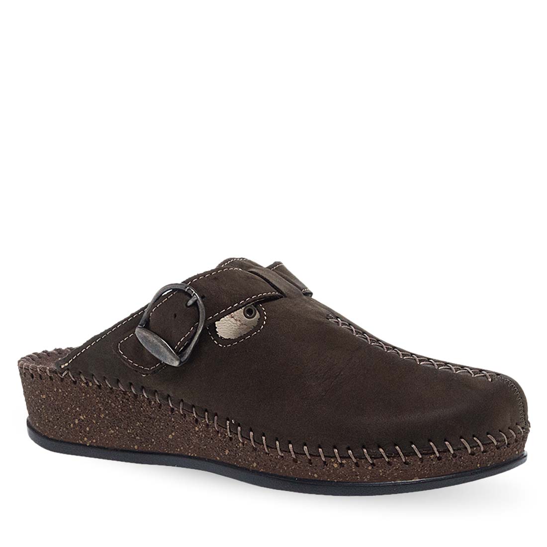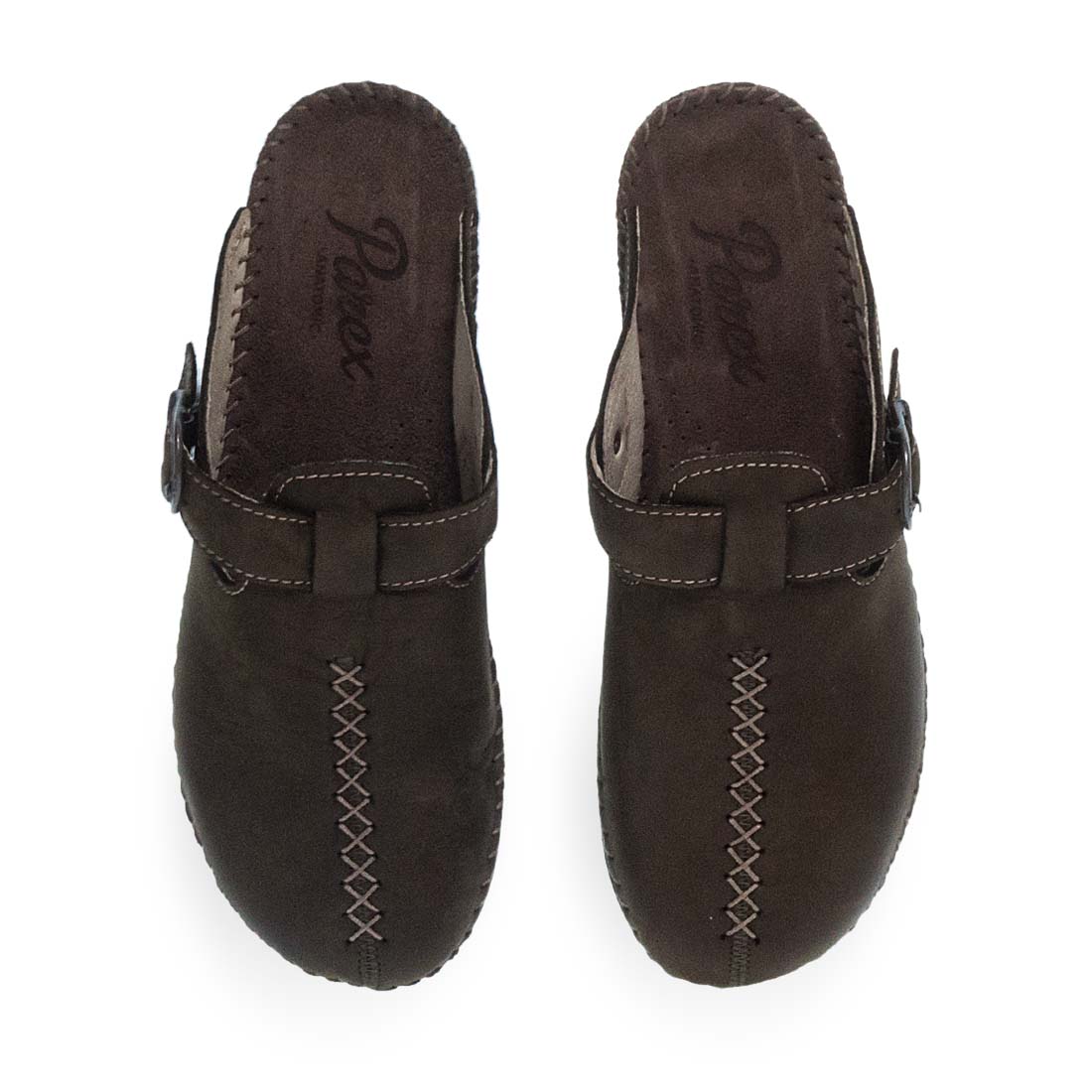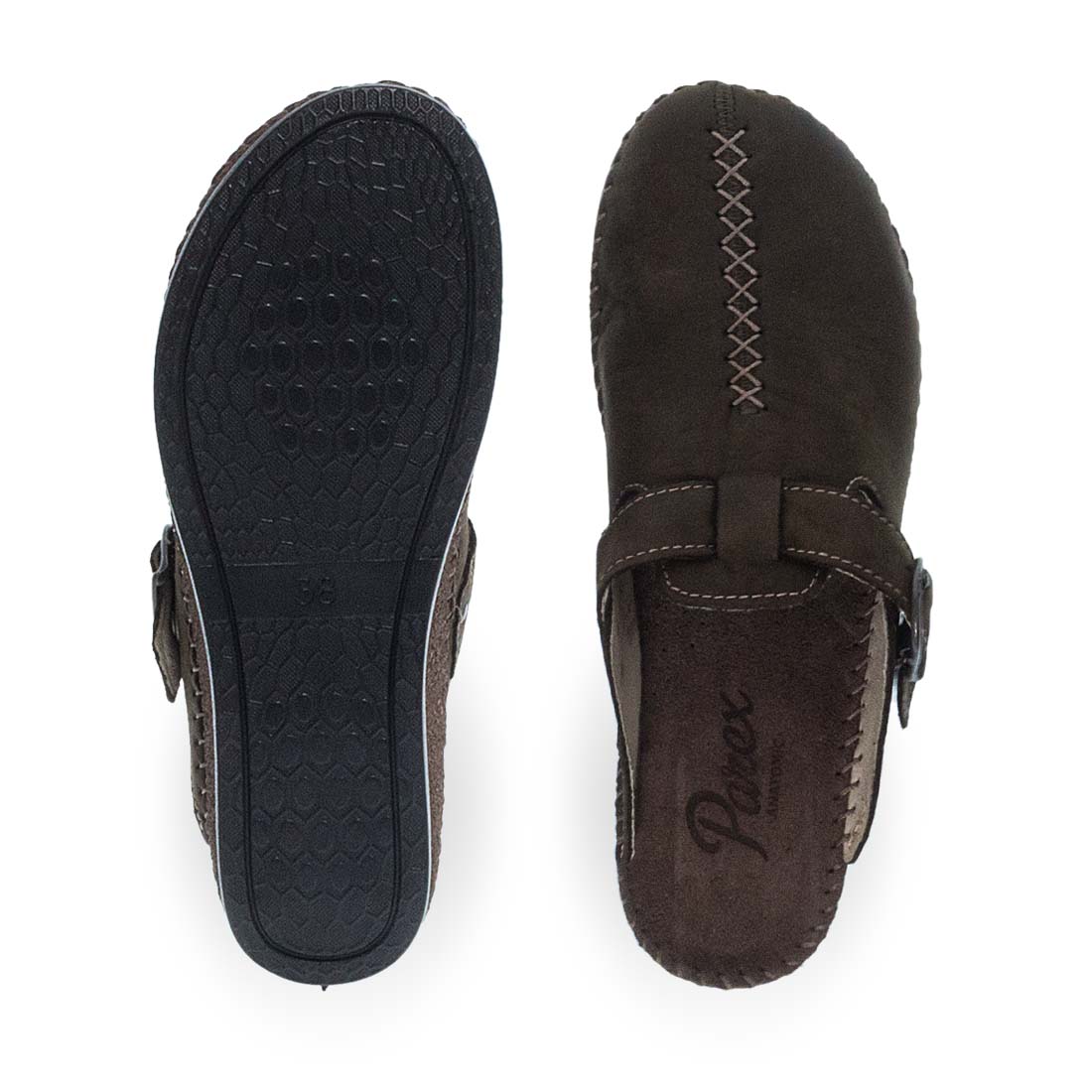 Women''s Parex slippers with platform heel. Made of leather with applique design on the side. Feature comfortable and non-slip outsole.