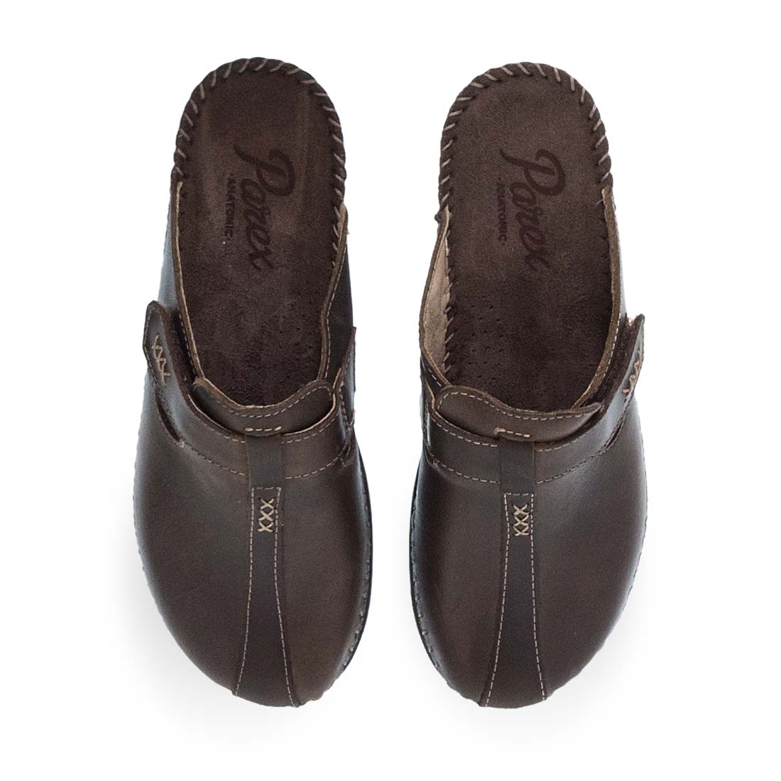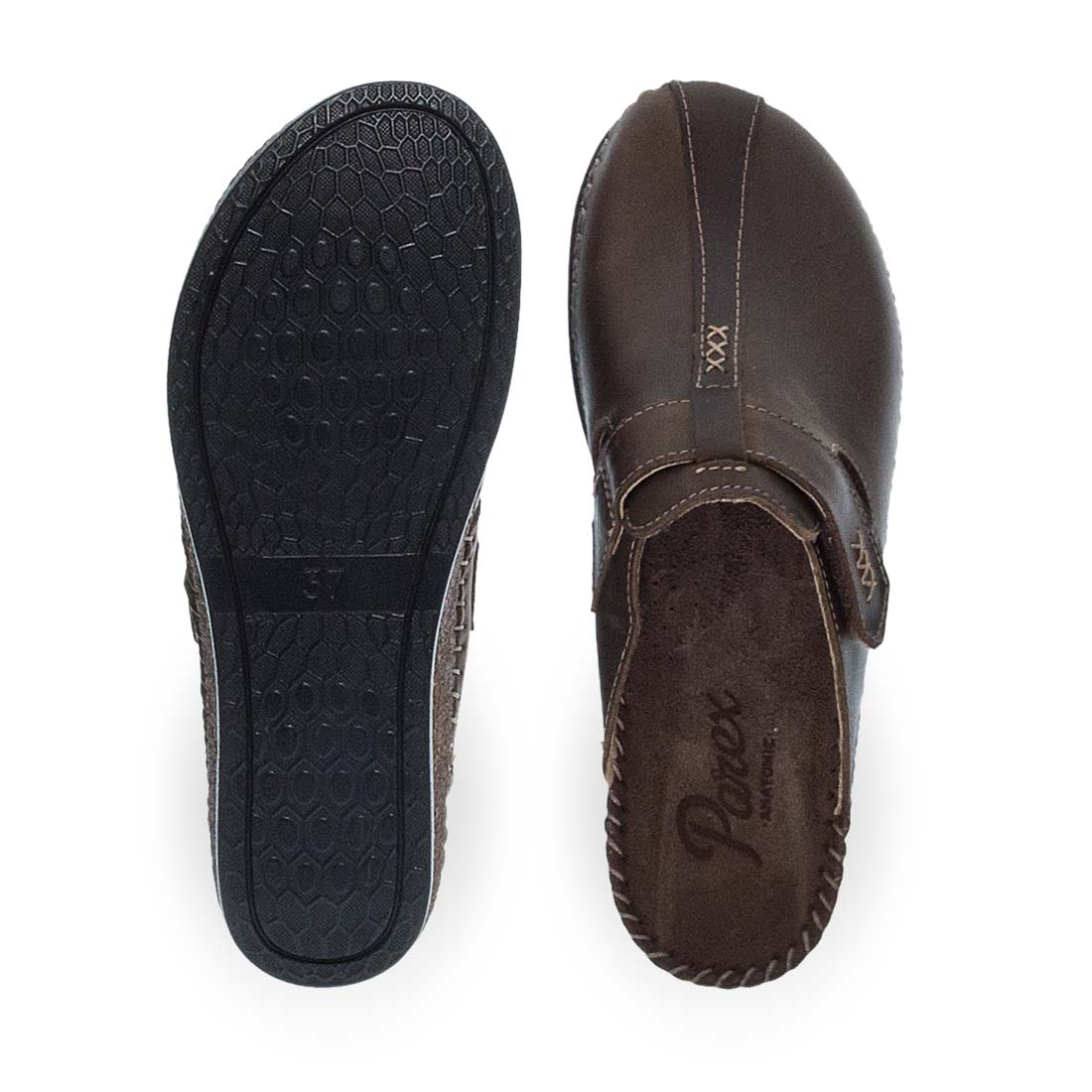 Leather Parex slippers with platform heel. Made of leather with applique design on the side. Feature comfortable and non-slip outsole. Wear yours all day without pain. Easy to wear.