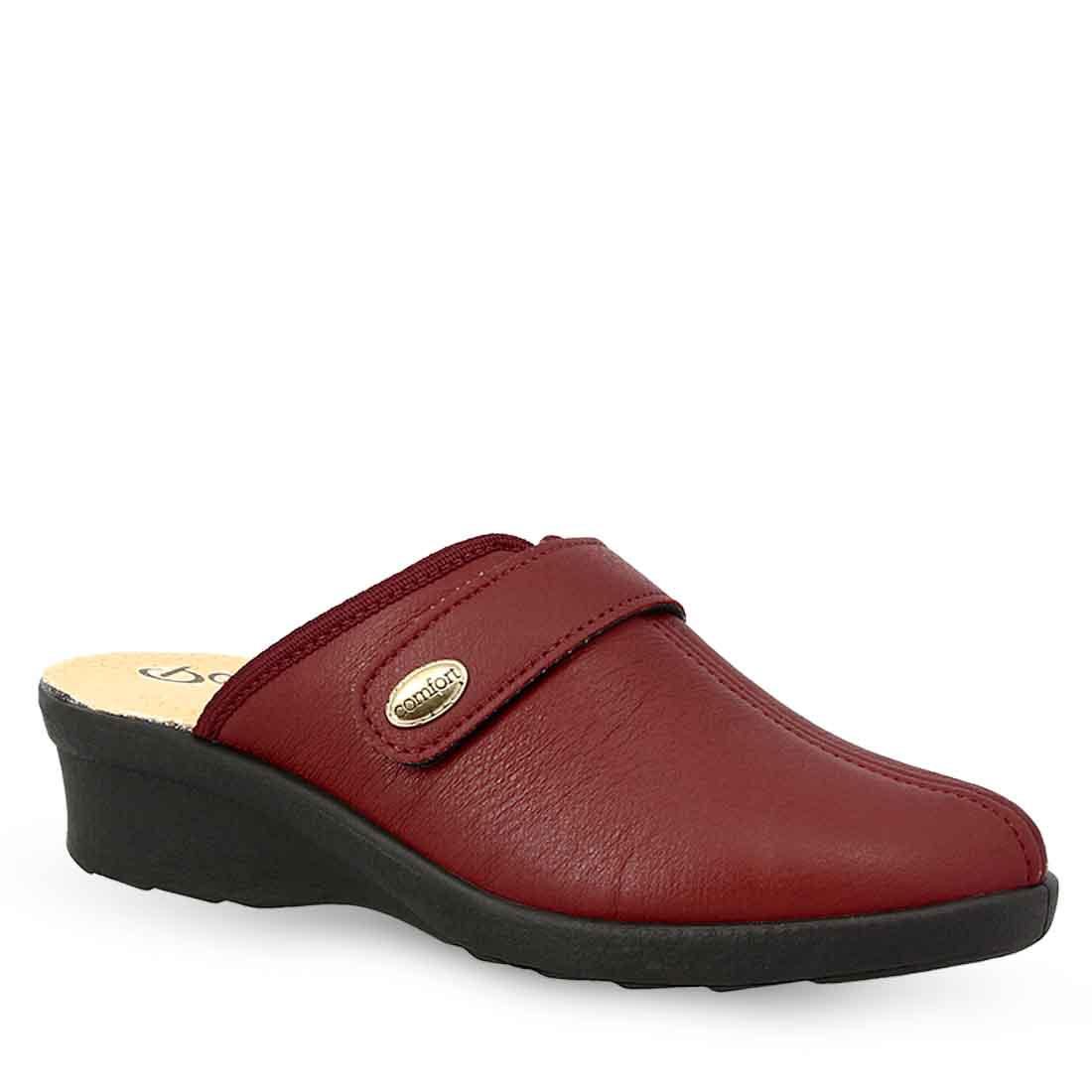 Women''s medium heeled slippers, with adjustable strap on top.A Classic design.Soft faux leather on top.