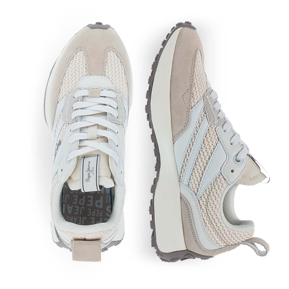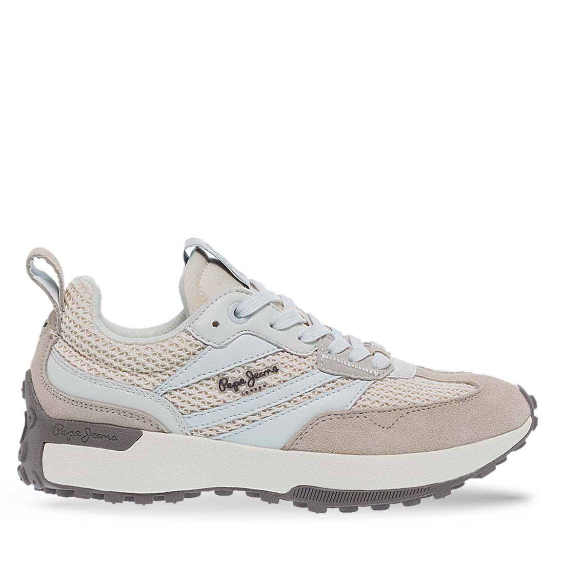 White sneakers for women by Pepe Jeans. Made of fabric and faux leather. Fabric lining and soft insole. Lightweight, breathable and comfortable model. Lace up fastening.