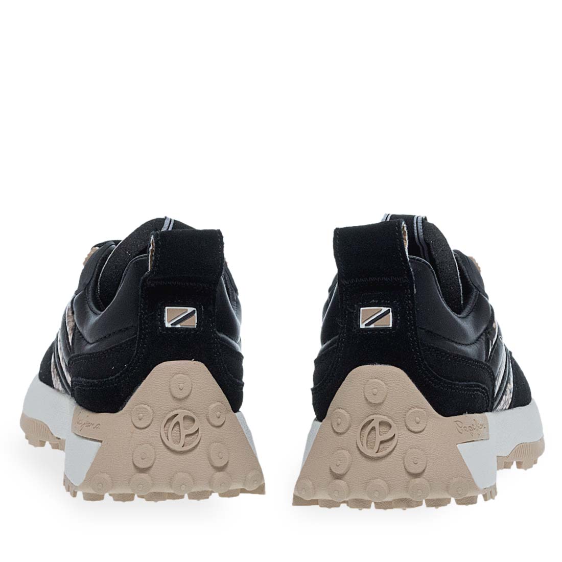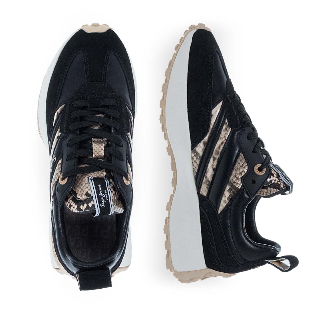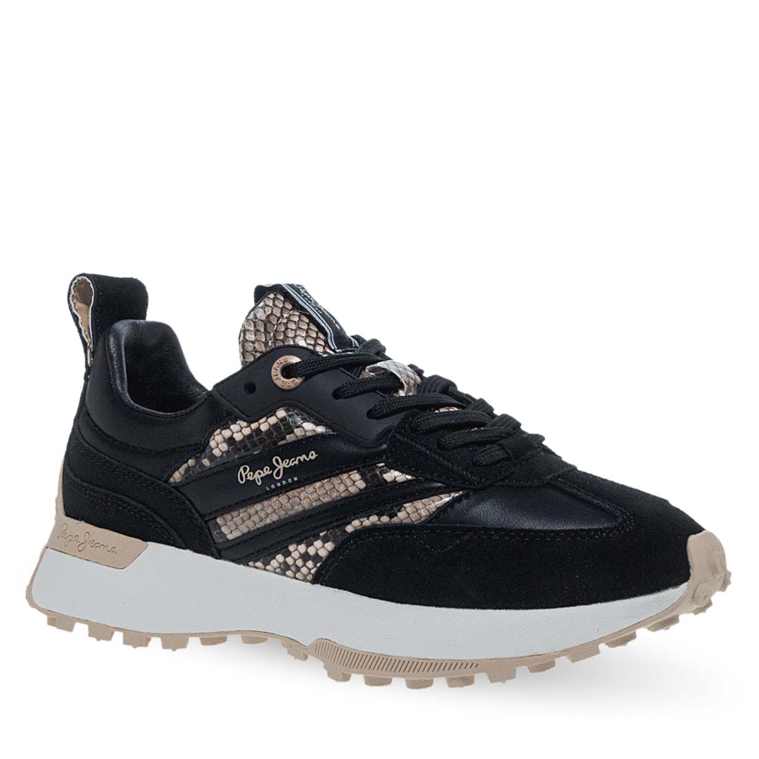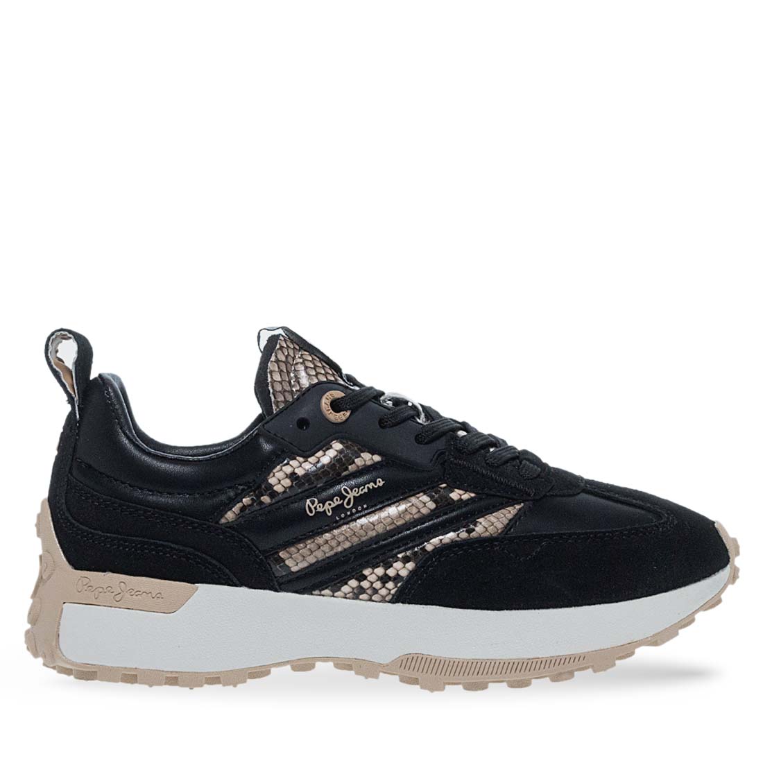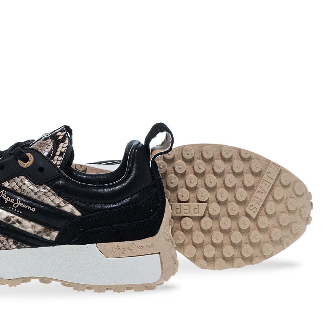Women''s leather sneakers by Pepe Jeans. Women’s black sneakers with snake-print details and chunky sole. Comfortable fit and statement look for modern street style.