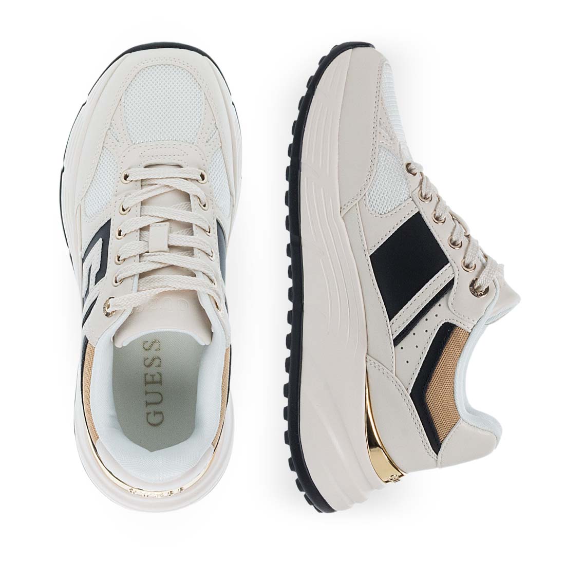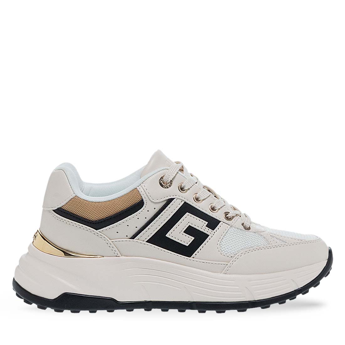 Women''s sneakers by Guess. Women’s Guess sneakers in beige, featuring a statement sole and sporty-chic design. Made from synthetic leather for all-day style and comfort.