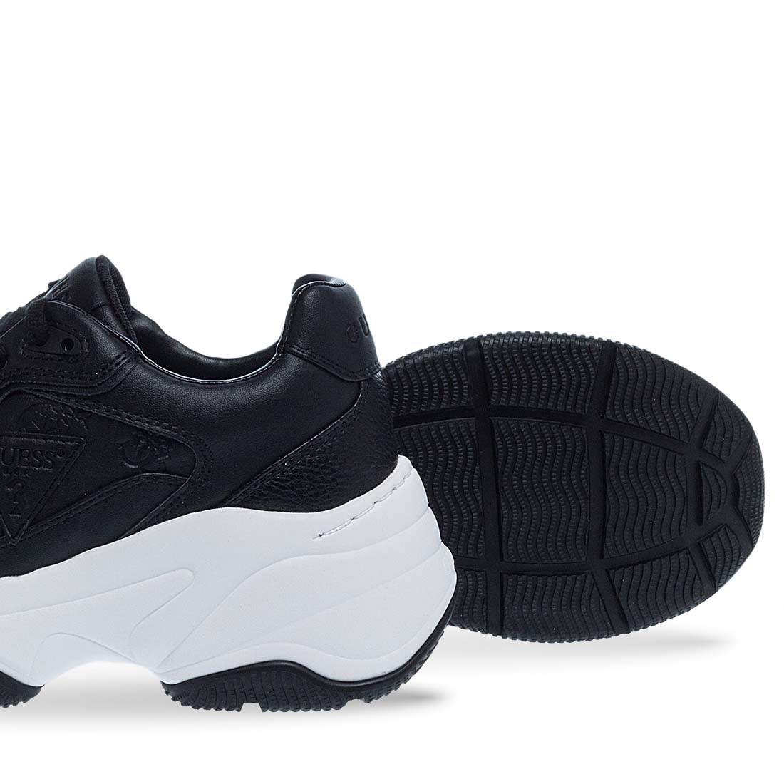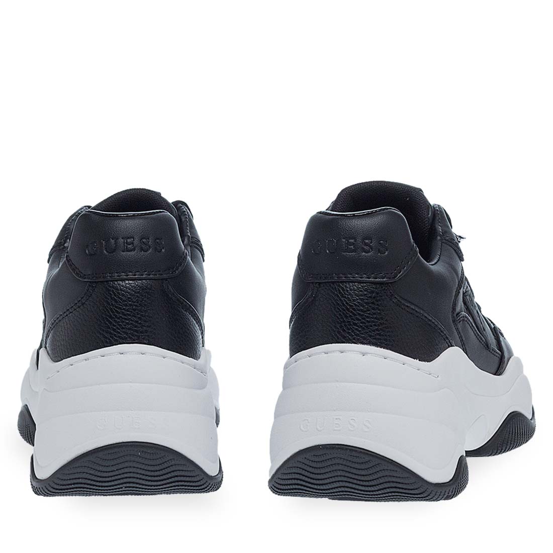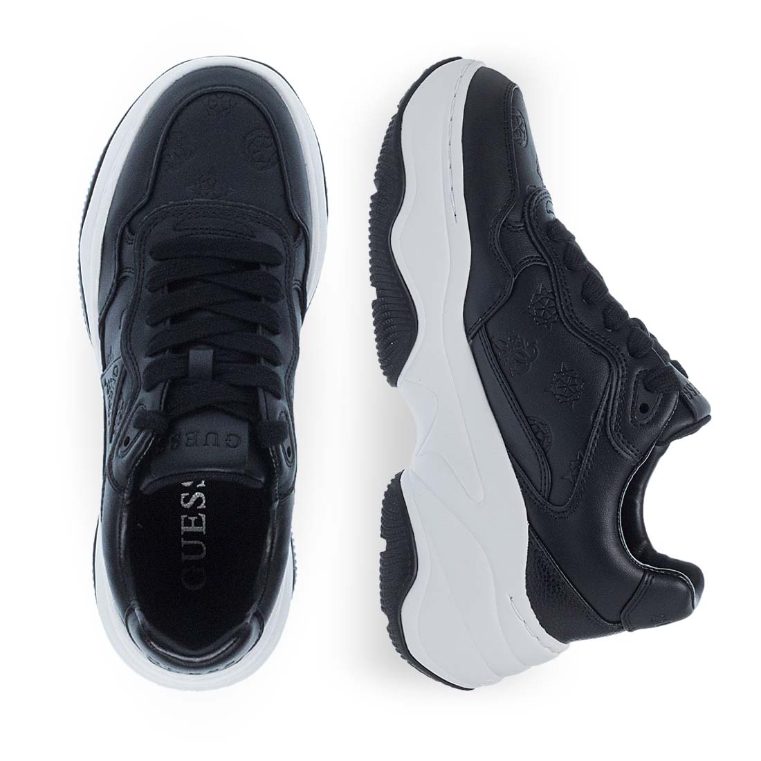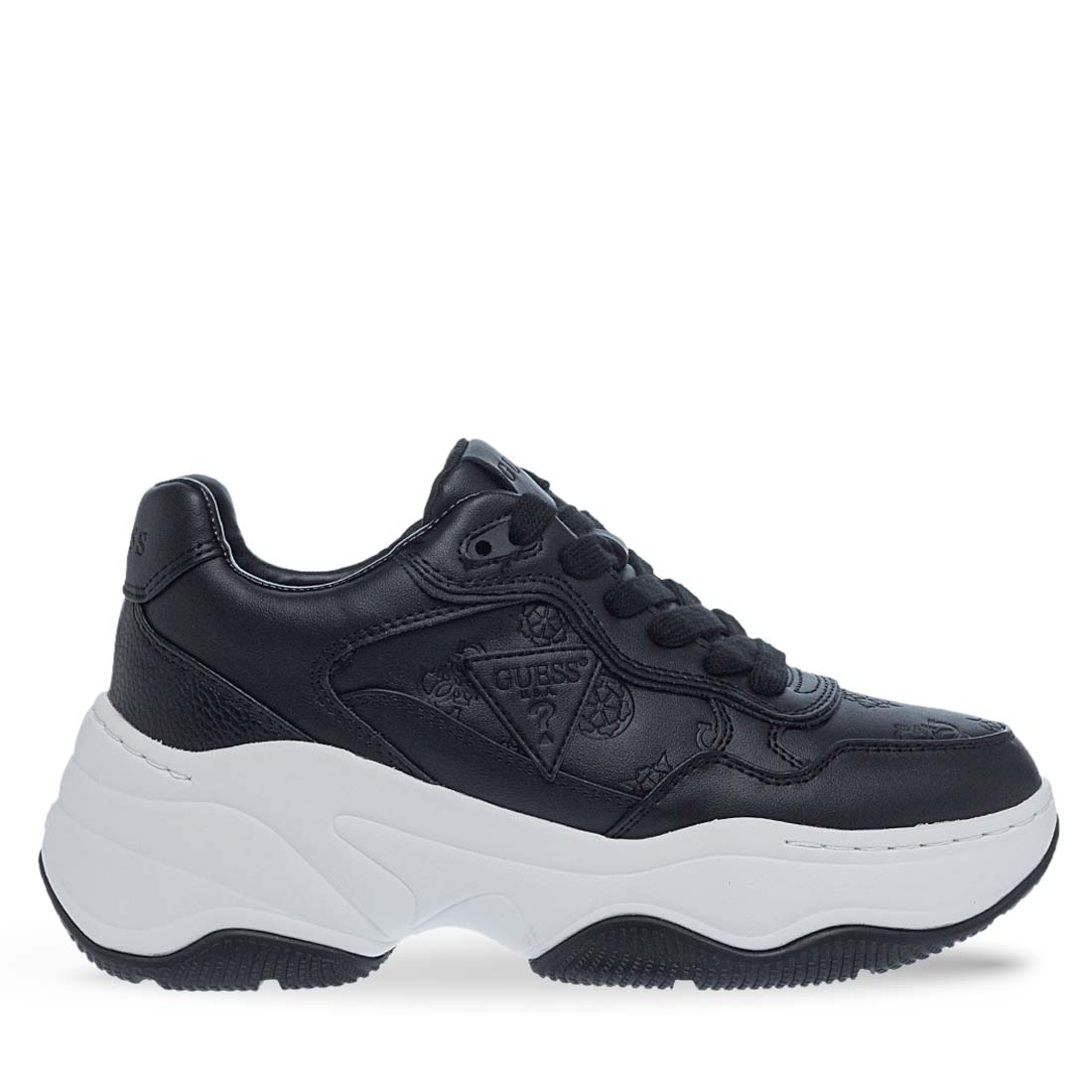 Sneakers Guess for stylish women. Made of faux leather. Pull tab detail. Chunky outsole. Lace up closure. Update your look with these comfortable sneakers. A good mix of comfort and style.