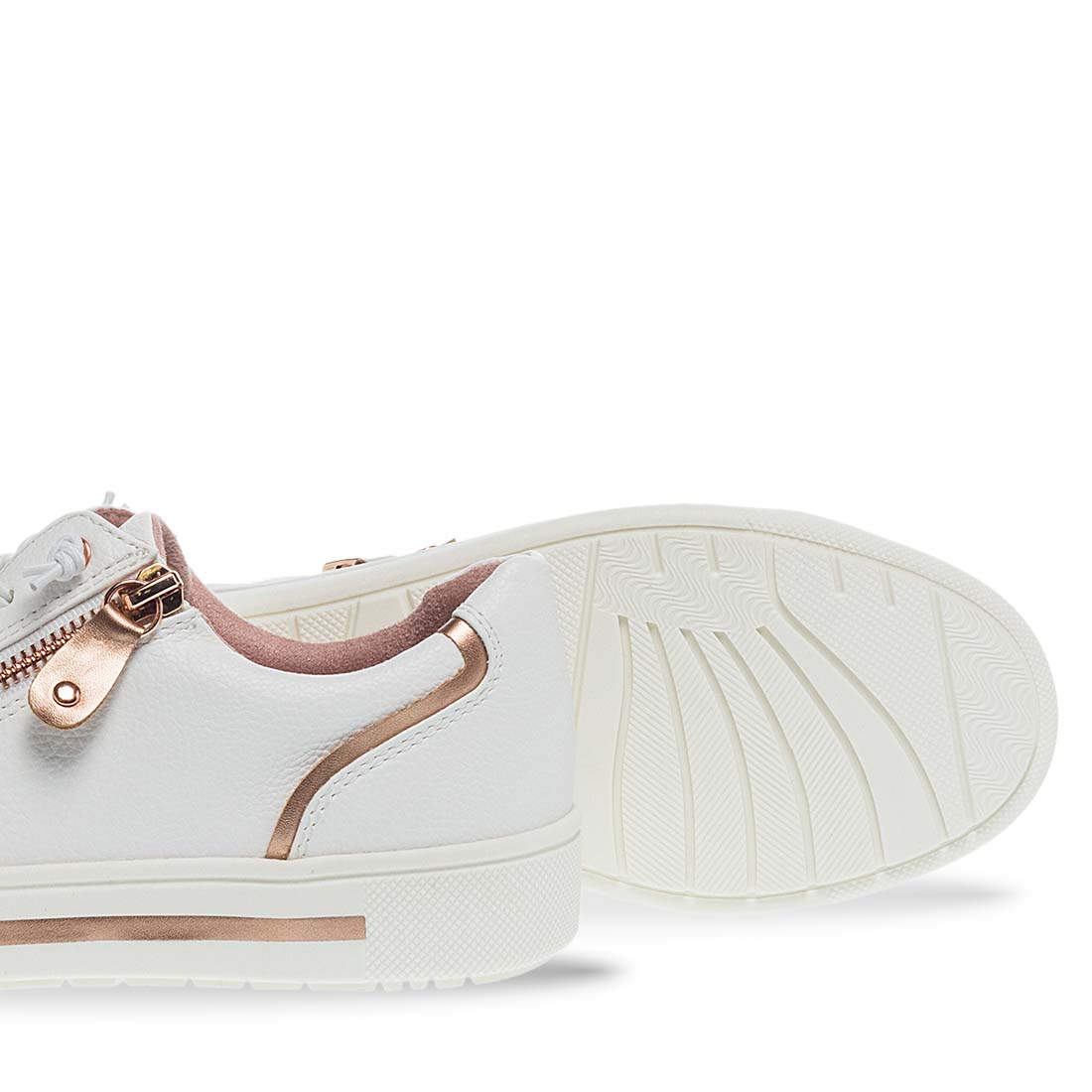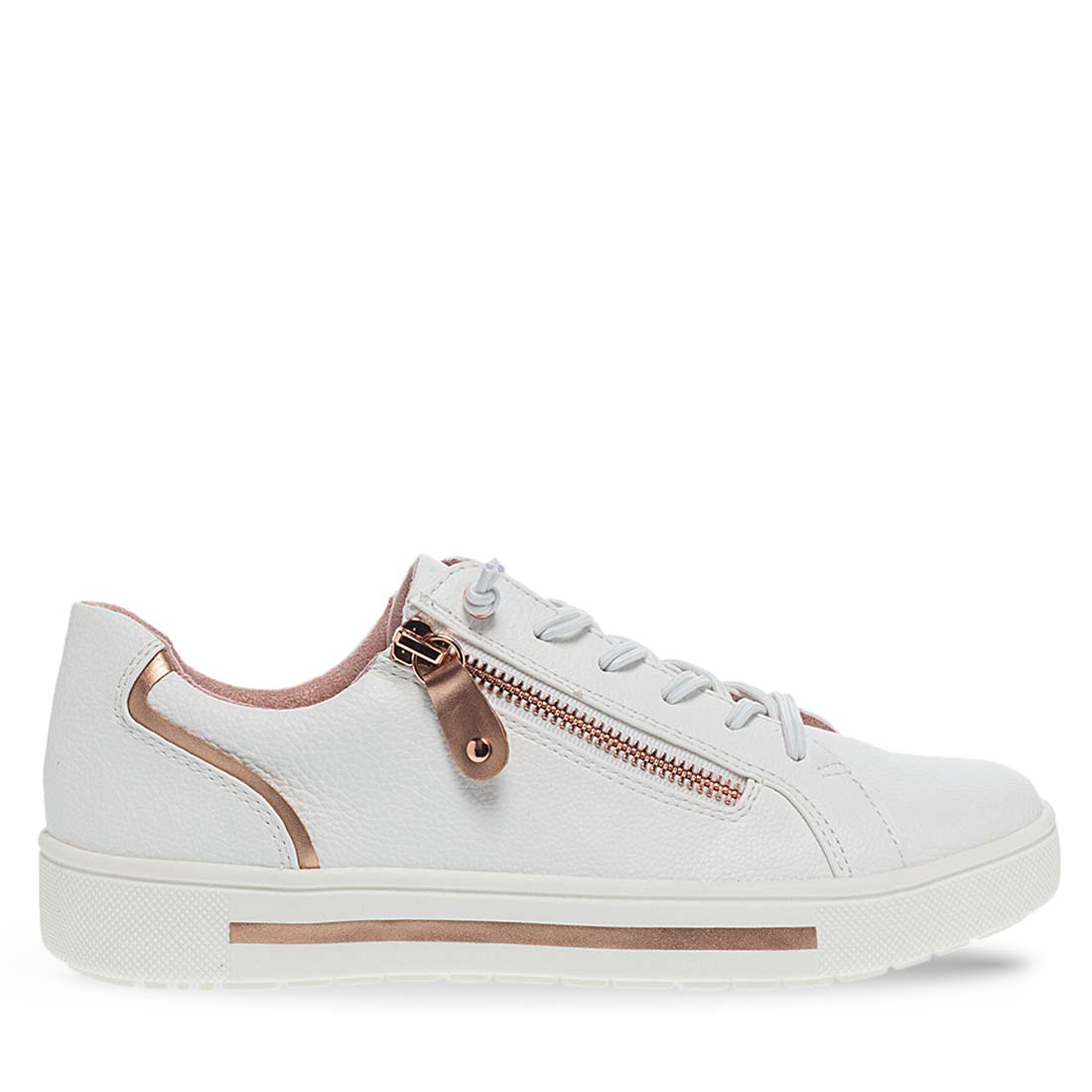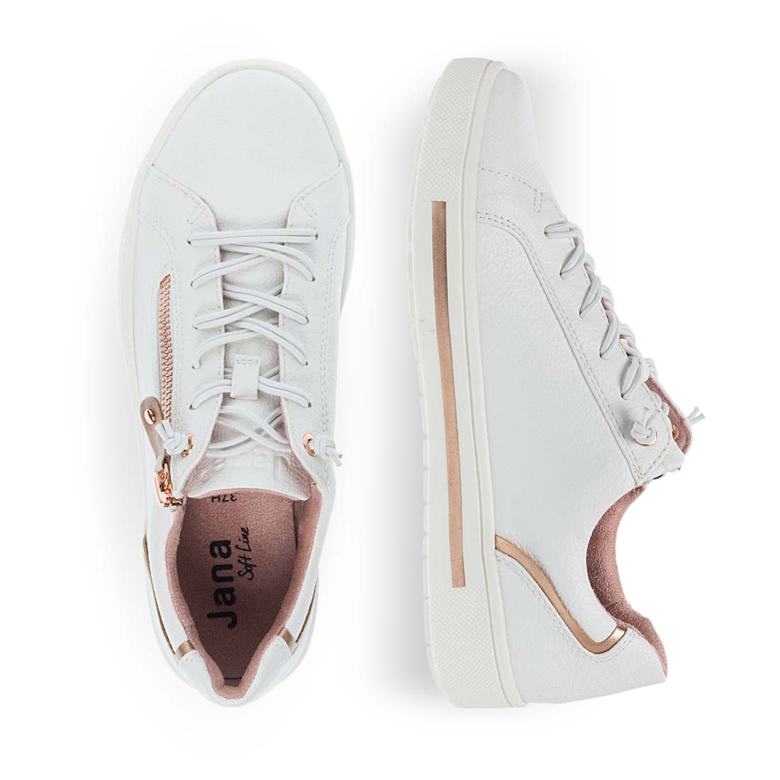 White sneakers by Jana Softline. Lace-up fastening for easier fit. Soft footbed for comfortable steps. Fabric lining. Ideal to use day to night.