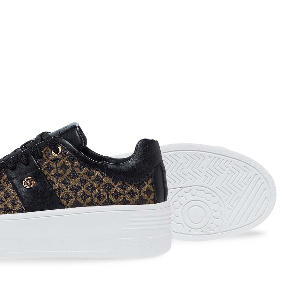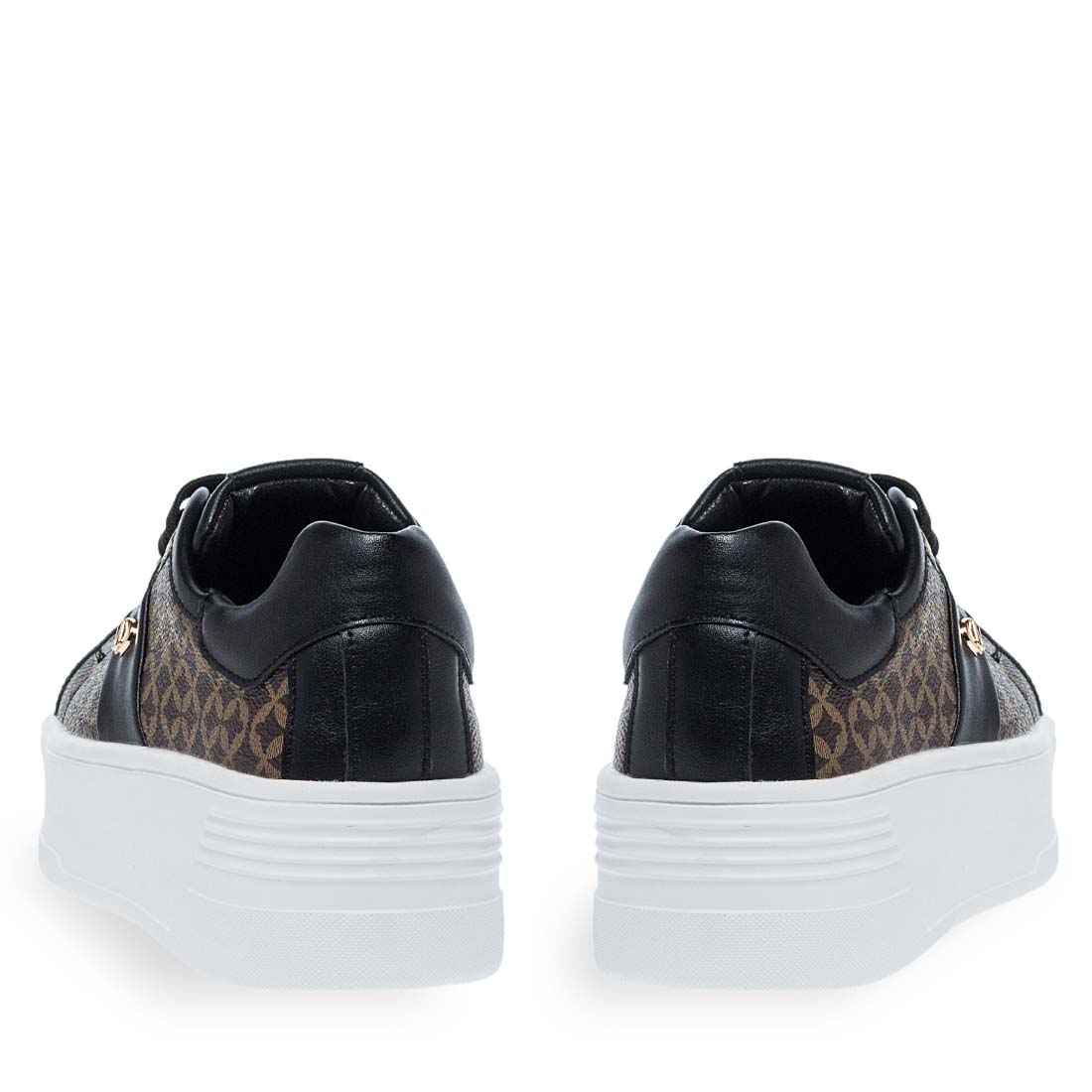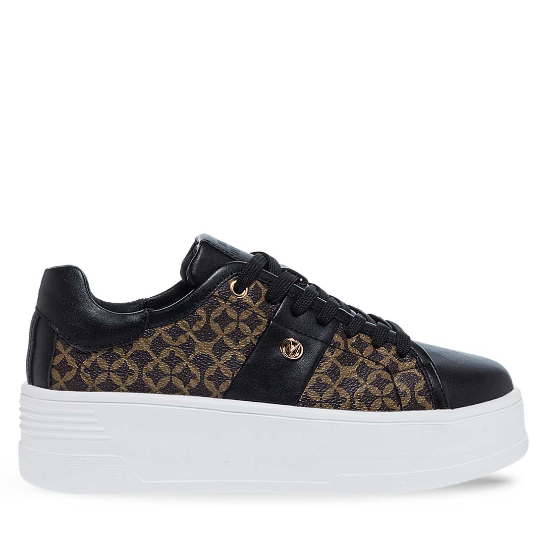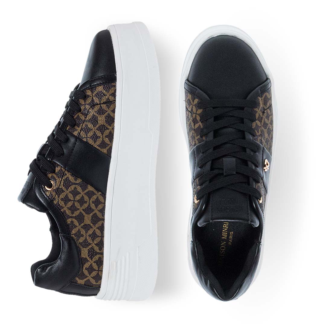 Women''s sneakers by Maison Minrelle. Black sneakers with white sole and monogram print detail.