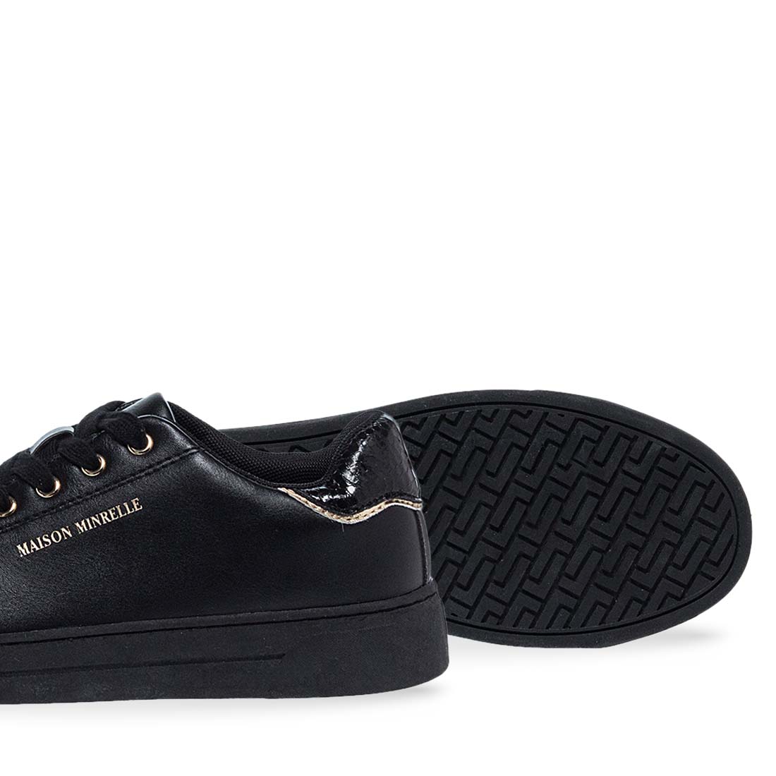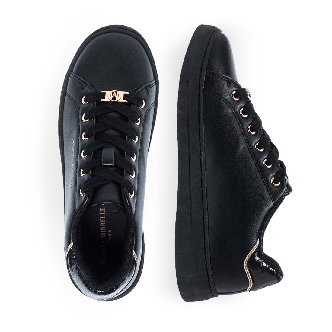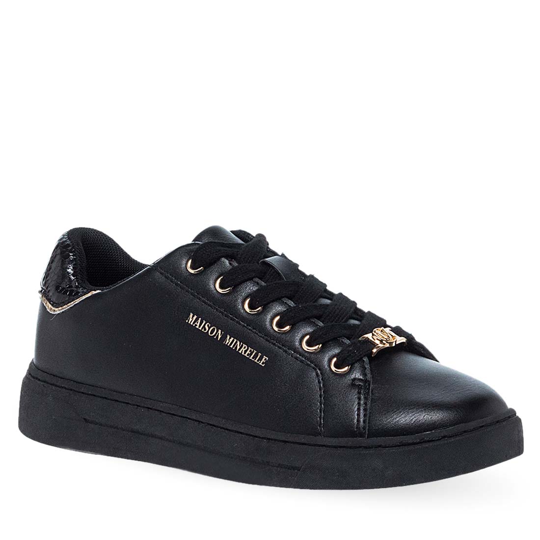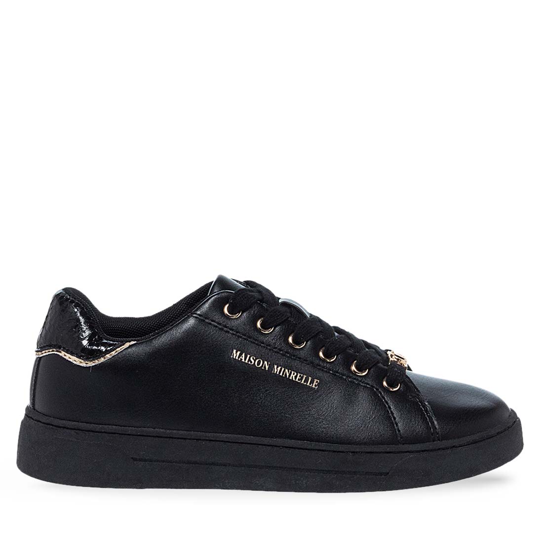 Women''s sneakers by Maison Minrelle. Black sneakers with golden logo on the tongue, minimal and chic.
