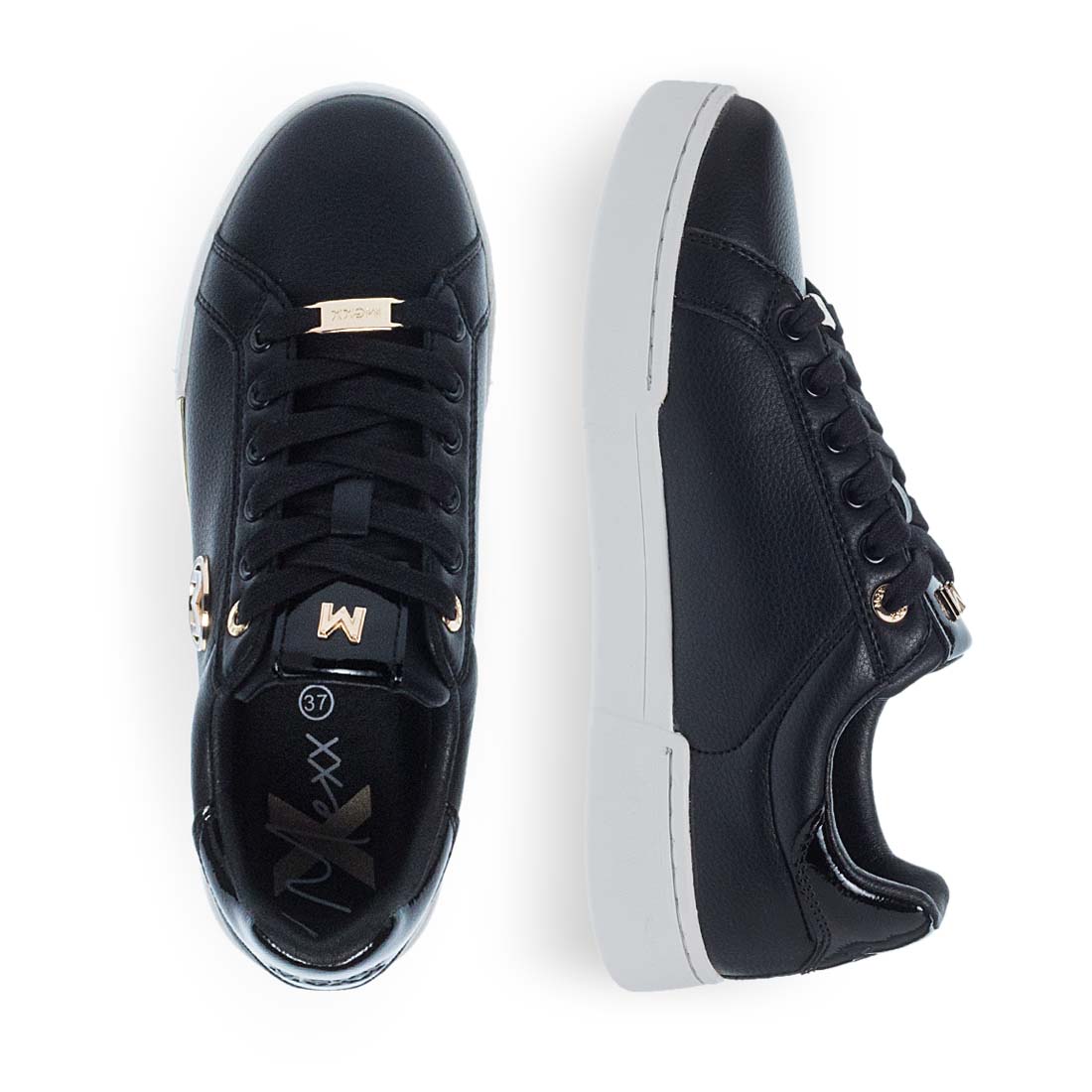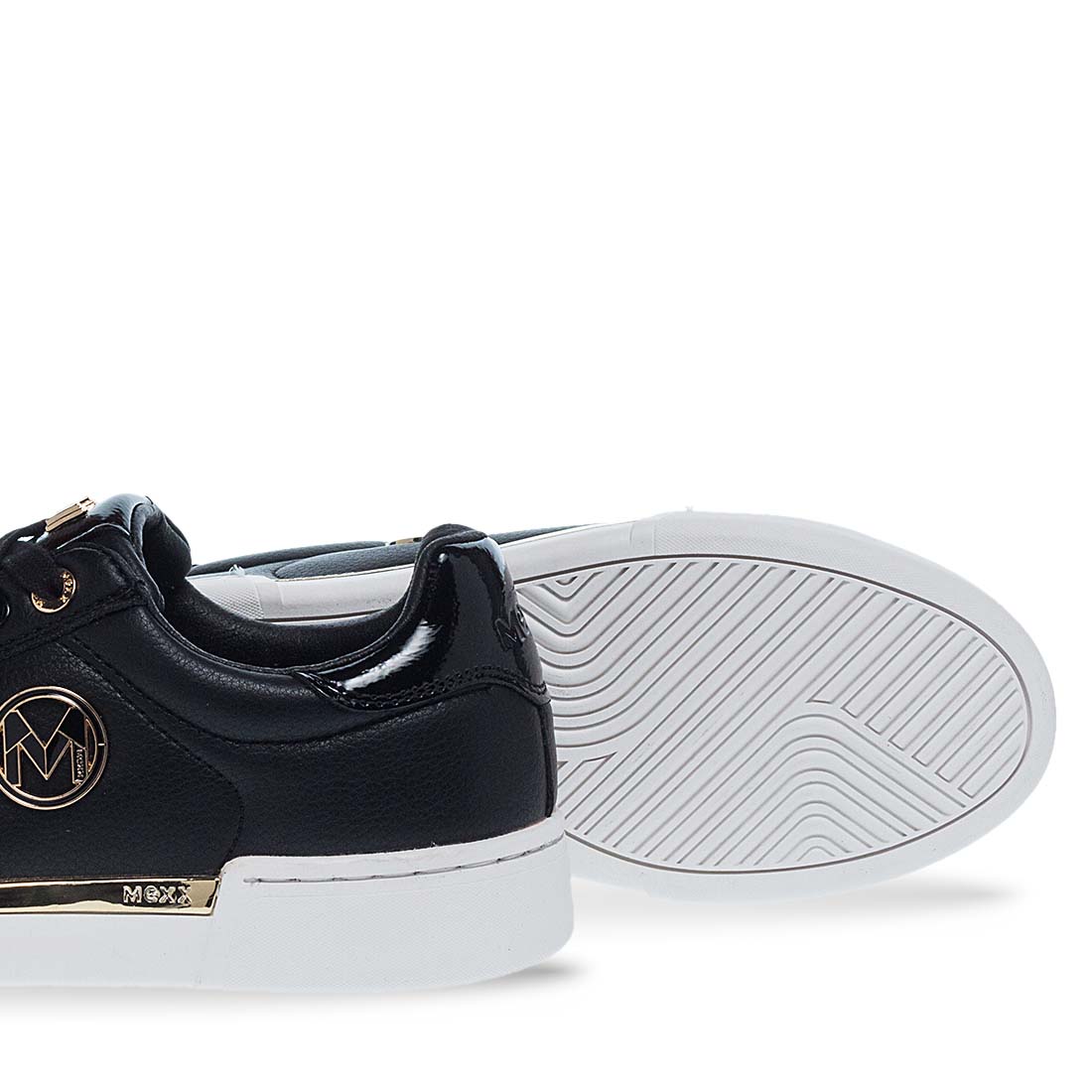 Comfortable sneaker by Mexx for modern steps. Lace up design and soft footbed. Available in black color. Suitable to wear day to night.
