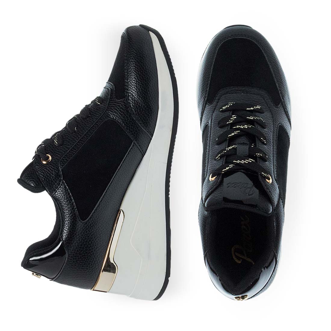 Women''s sneakers by Parex. Women’s Parex sneakers in black with gold accents. Comfortable and stylish, ideal for casual and sport-chic outfits. "Adapt" technology. Designed to be easily interchanged or removed, allowing you to pick the best fit based on your needs.