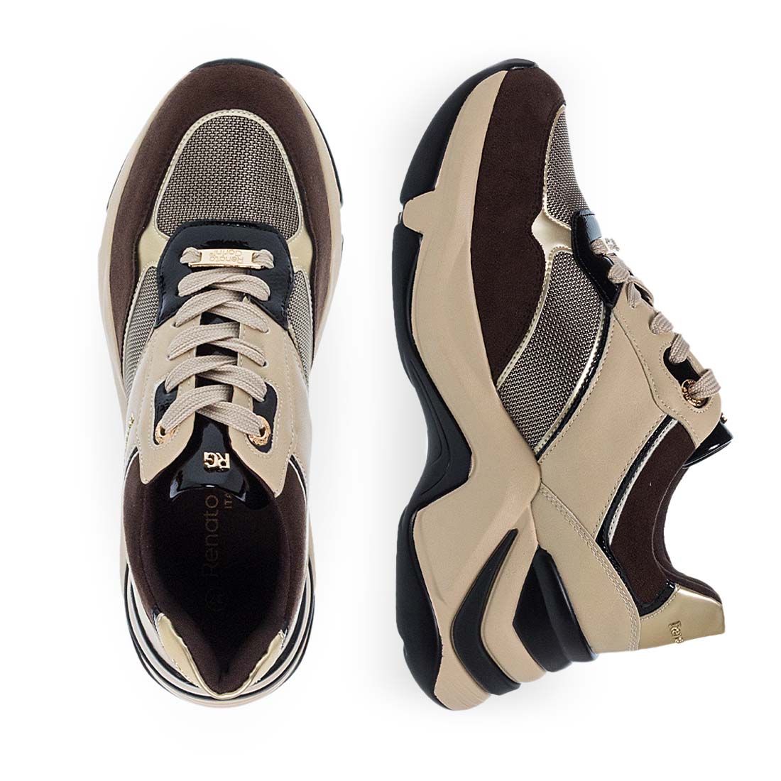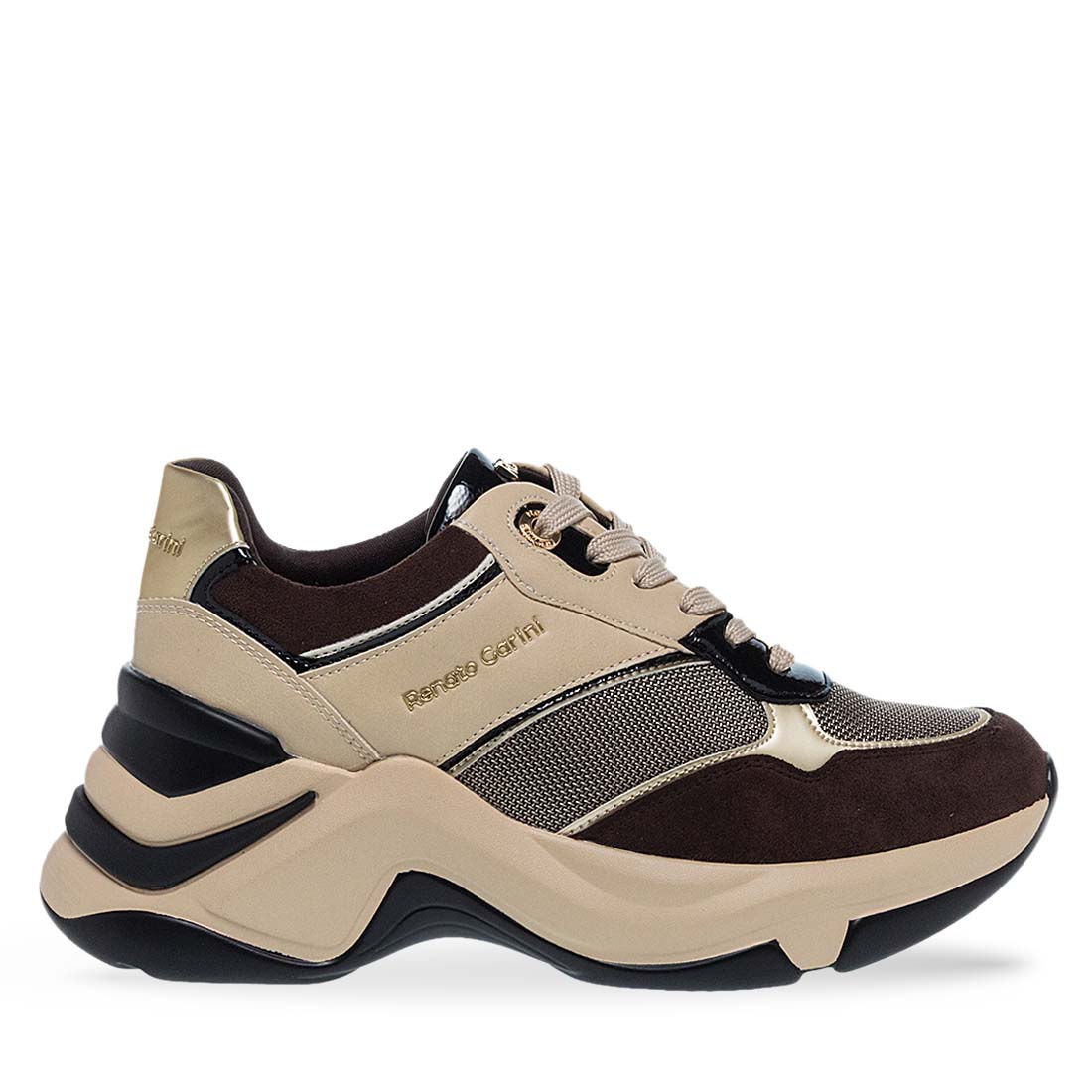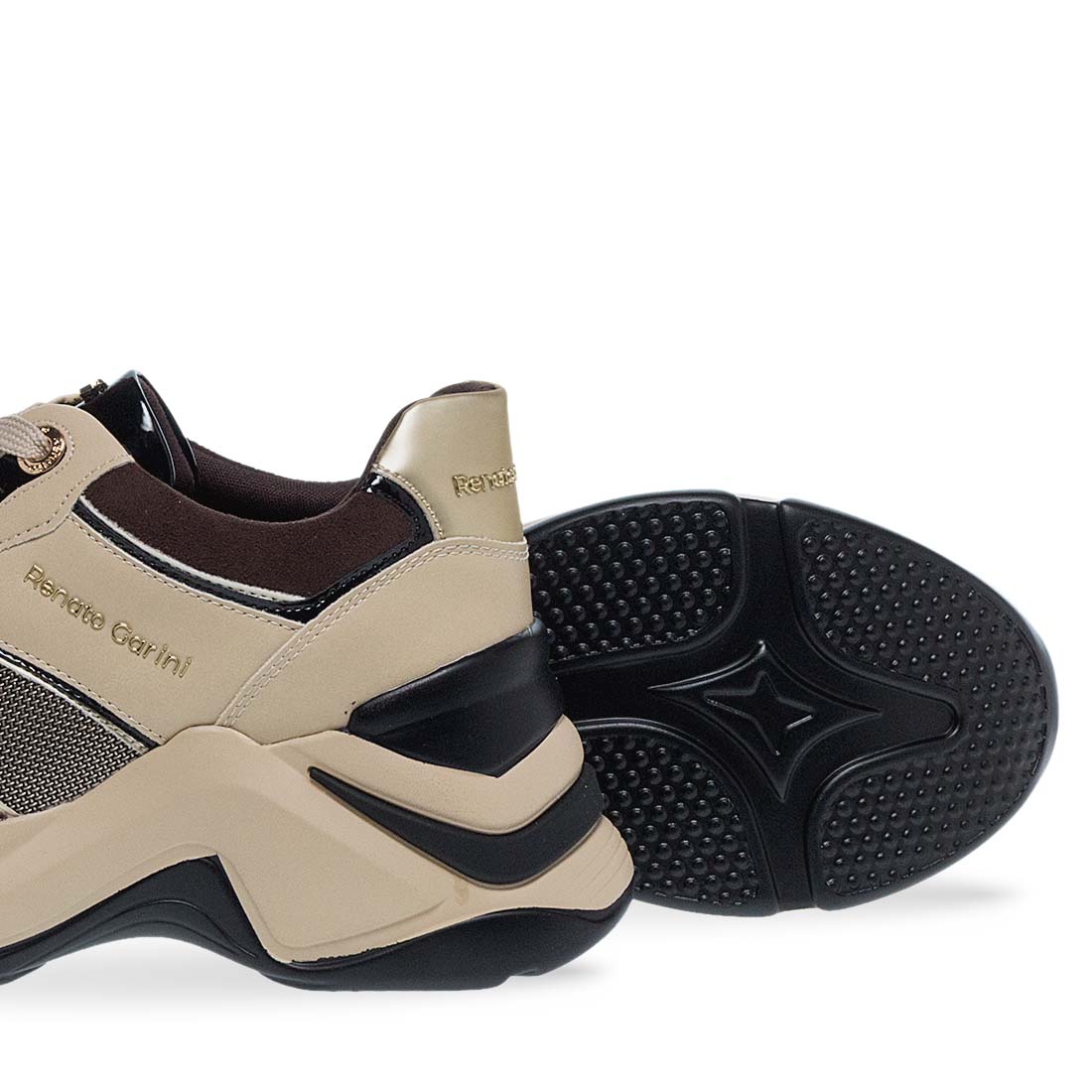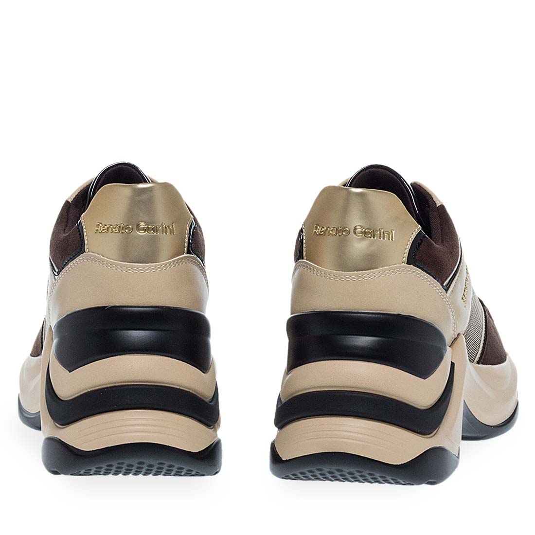 Women''s sneakers by Renato Garini. Beige and brown chunky sneakers with fabric panels. Ideal for casual sporty outfits.