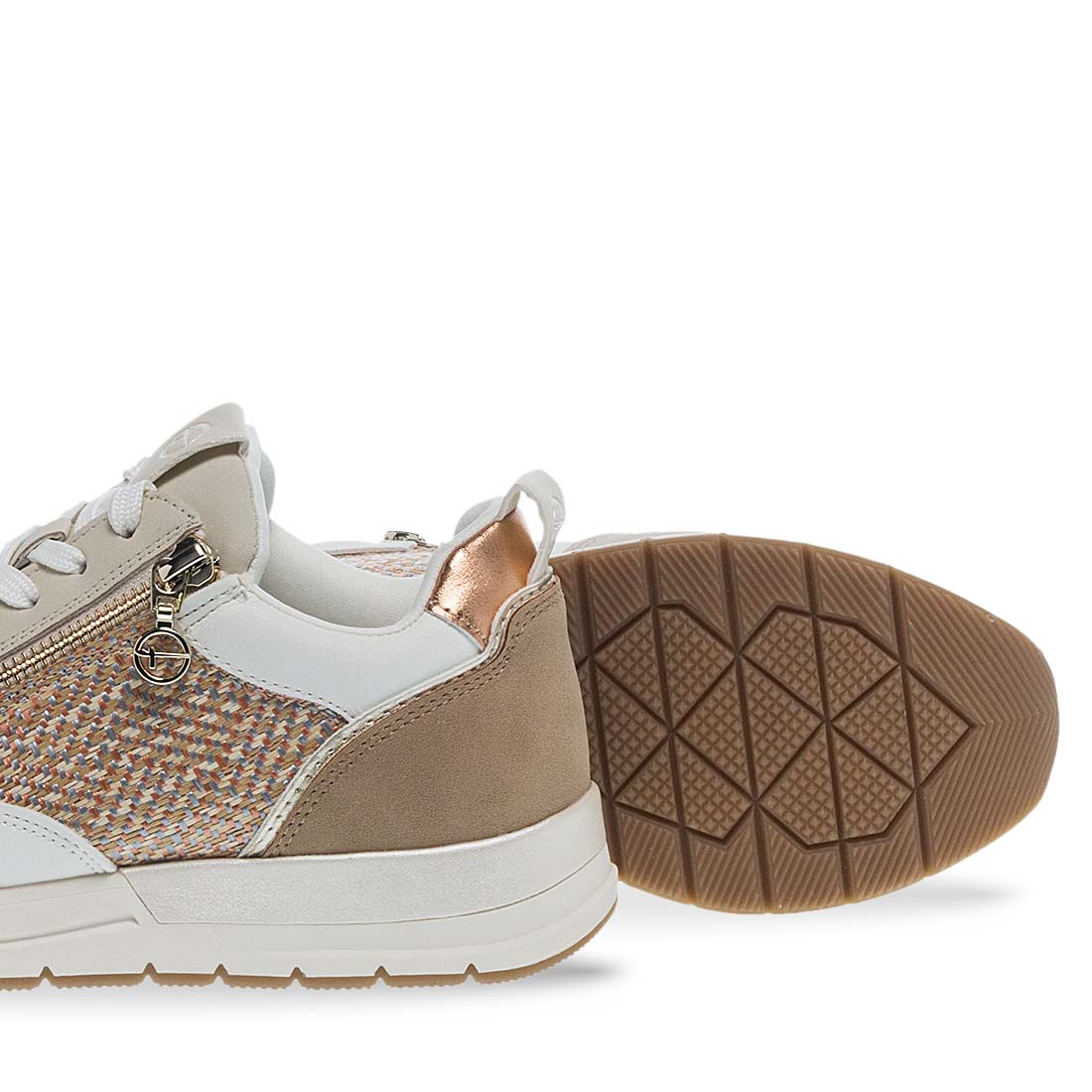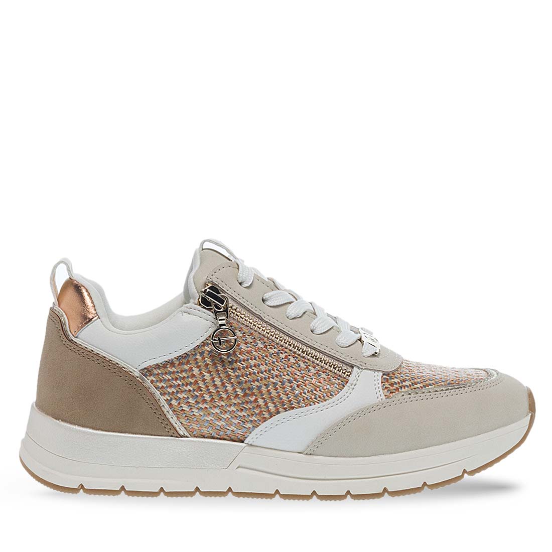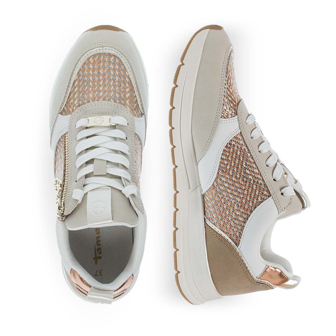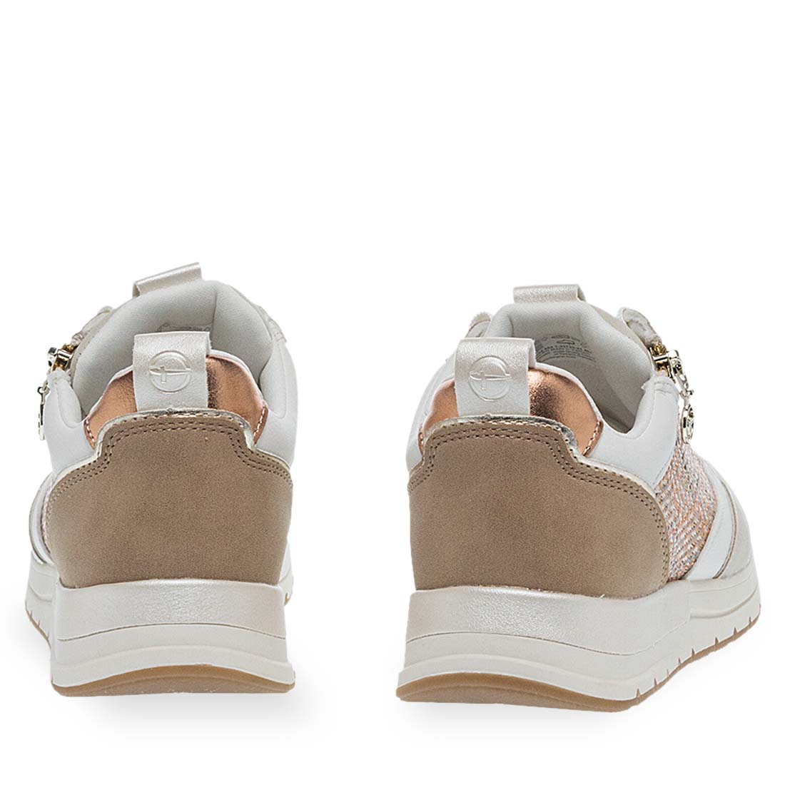 Tamaris Women Sneakers, made of vegan faux leather. Soft insole and flexible sole. Lace up fastening and zip closure. Glitter detail. Fashionable and comfortable pair.