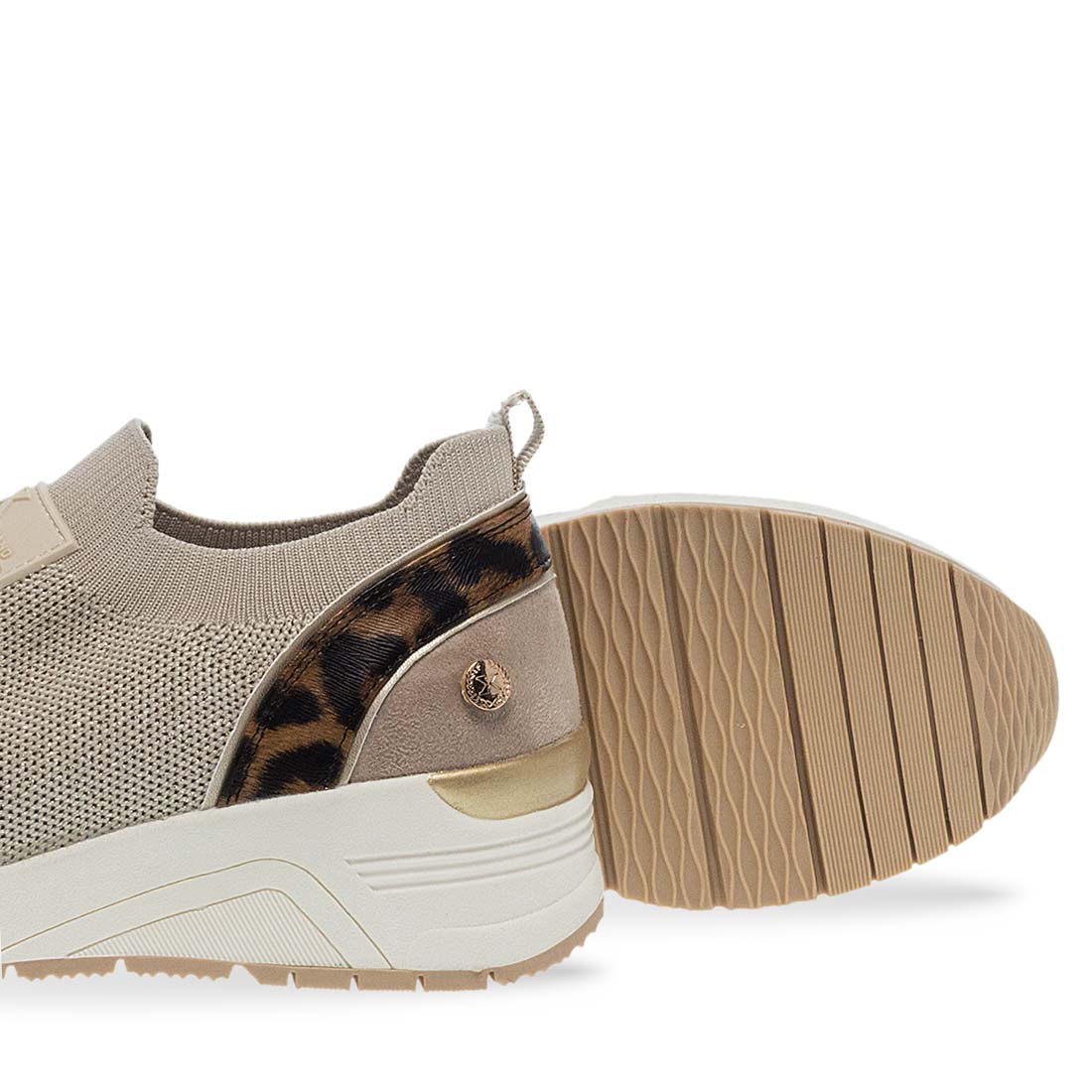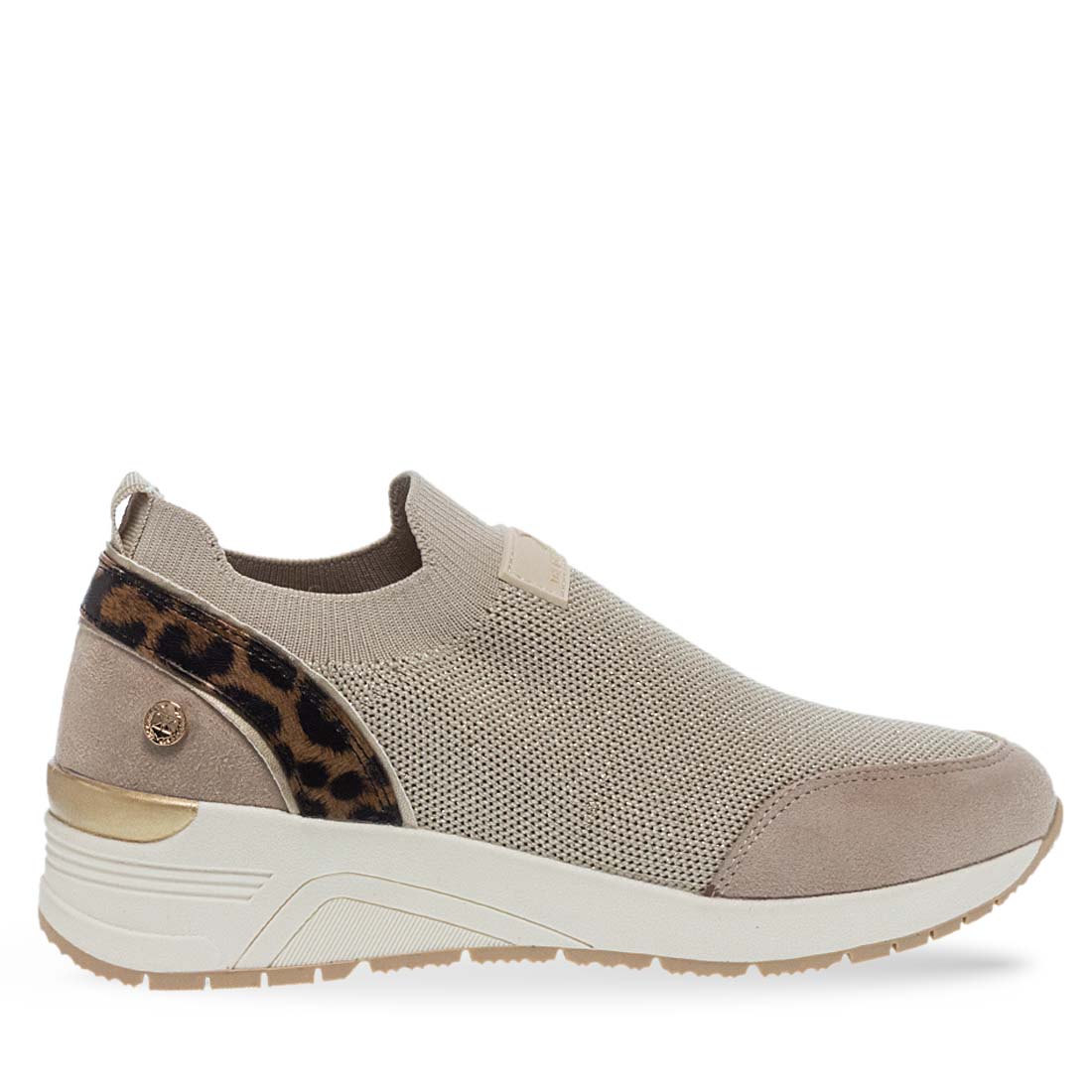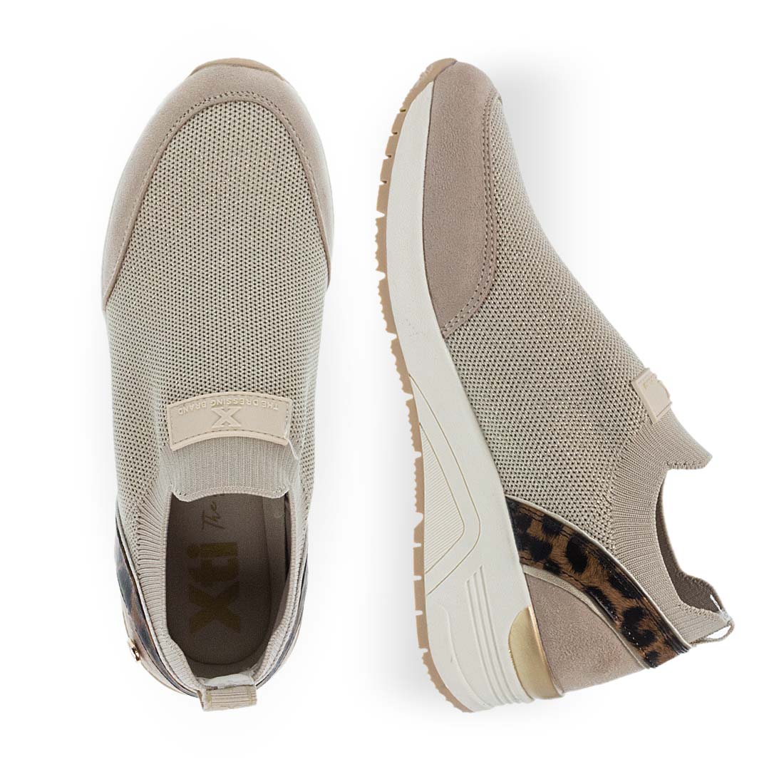 Women''s sneakers by Xti. Women’s beige slip-on sneakers with animal print heel detail. Lightweight and comfortable for all-day wear.