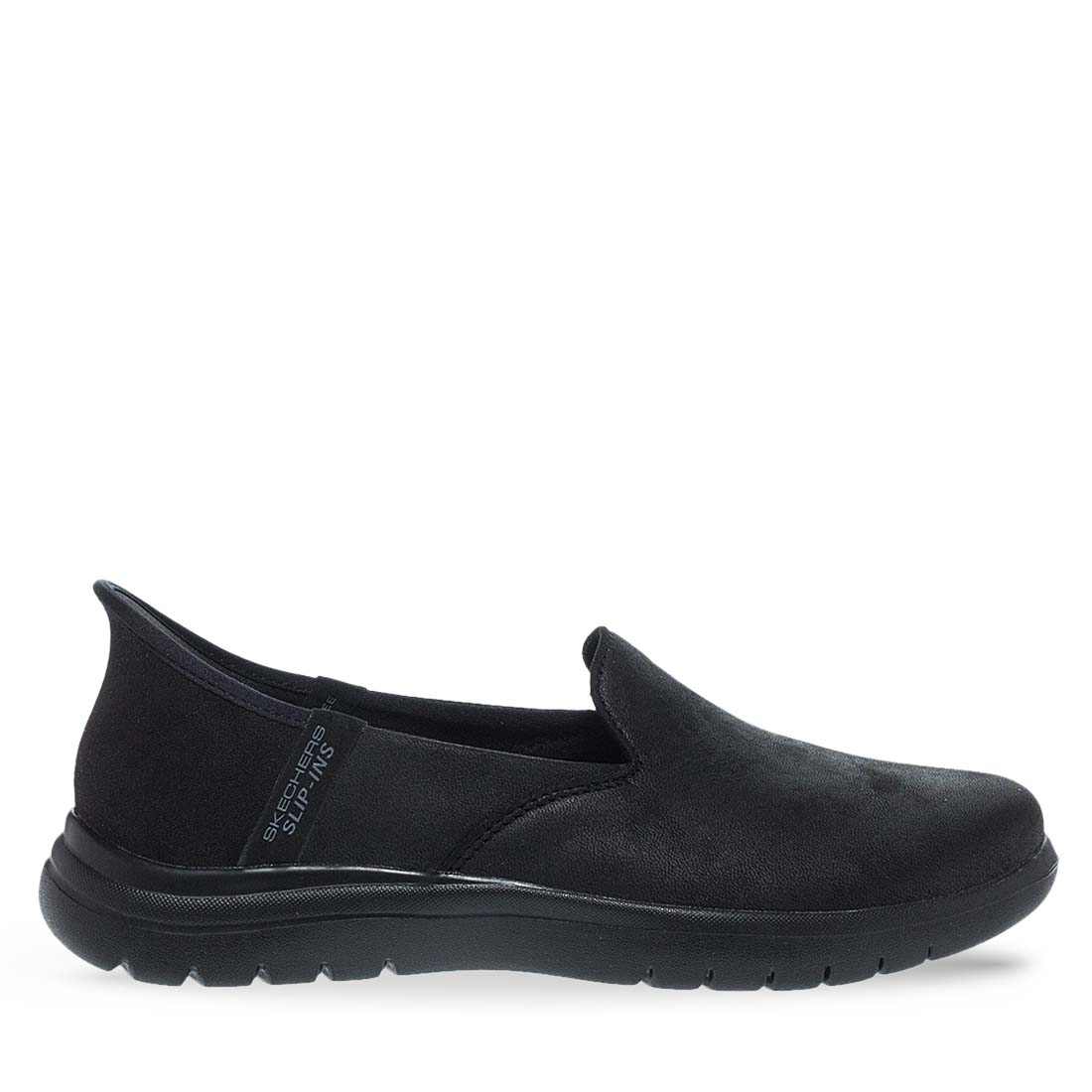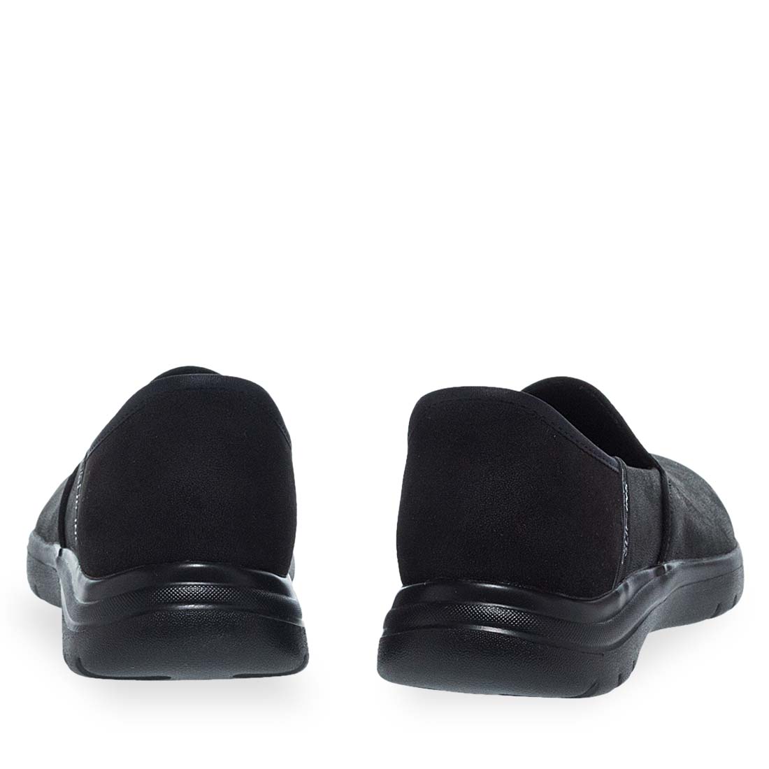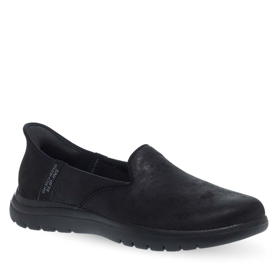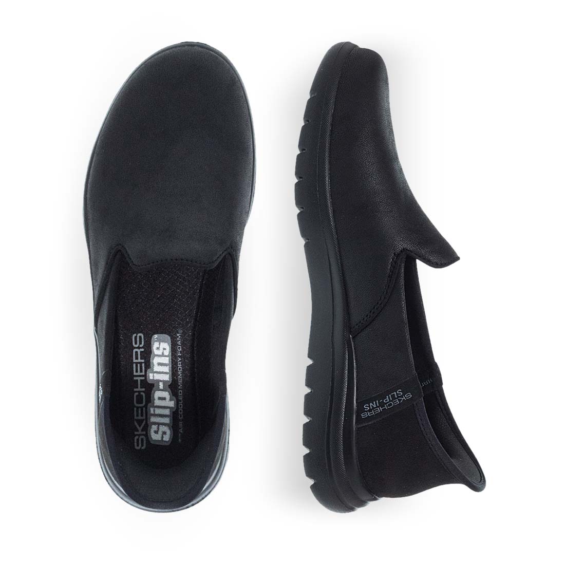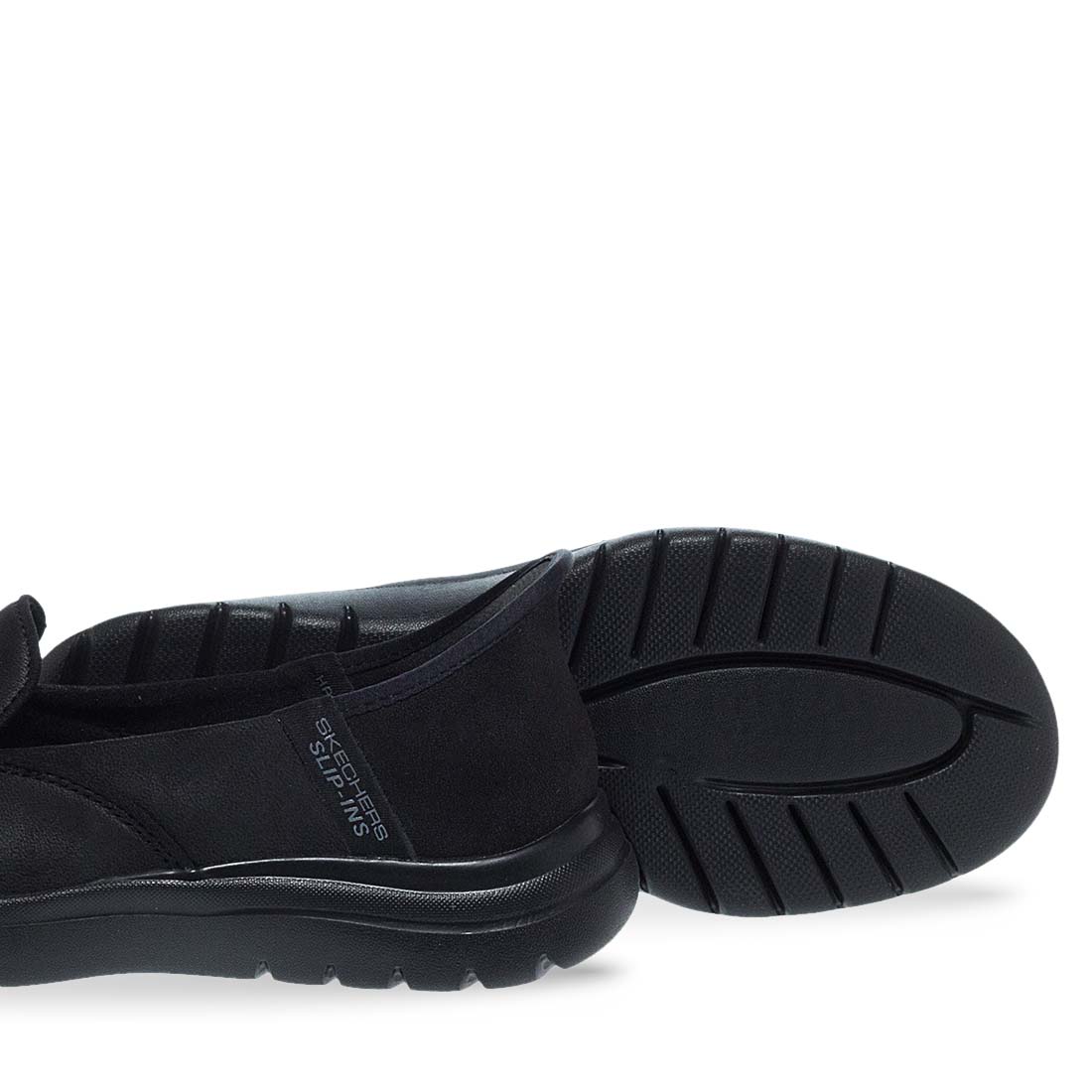 Black trainers by Skechers. Available in black color. Extremely comfortable footbed. It’s the perfect pair to spend many hours in. Easy to fit and slip on style.