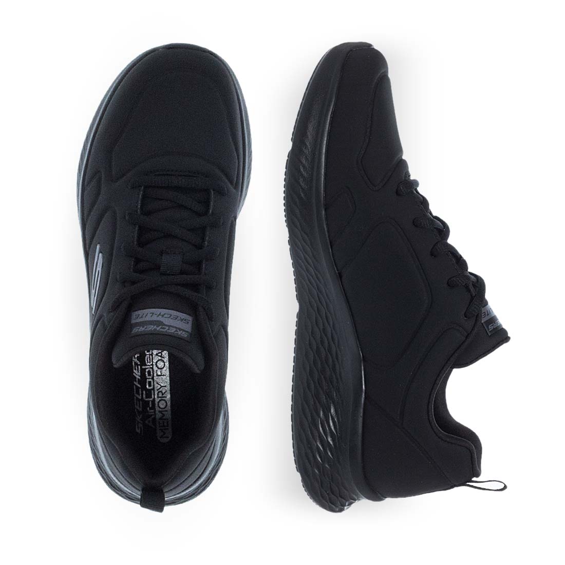 Follow the trends with this monochrom pair of sneakers by Skeckers. Lace-up fastening. Soft Memory Foam footbed and lightweight anti-vibration midsole. Relaxed fit.