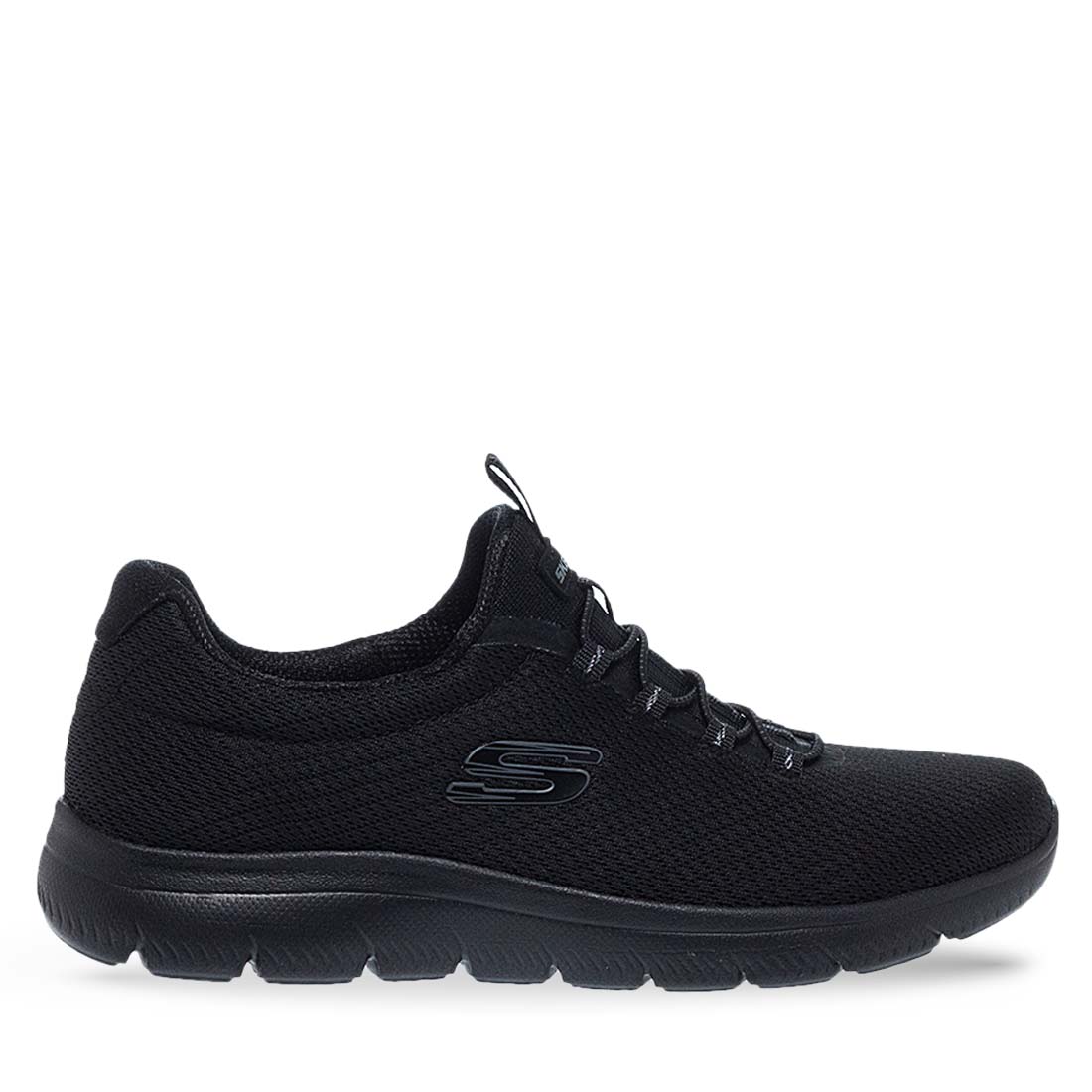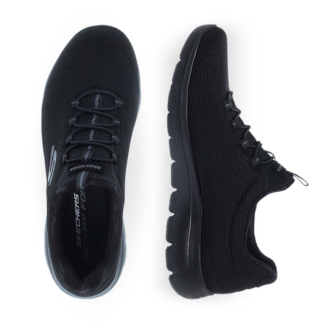 Βlack trainers by Sketchers designed with mesh upper and memory foam insole. Lace up design. A flexible and comfortable choice to stay active. Fabric lining. They can keep your feet more comfortable.