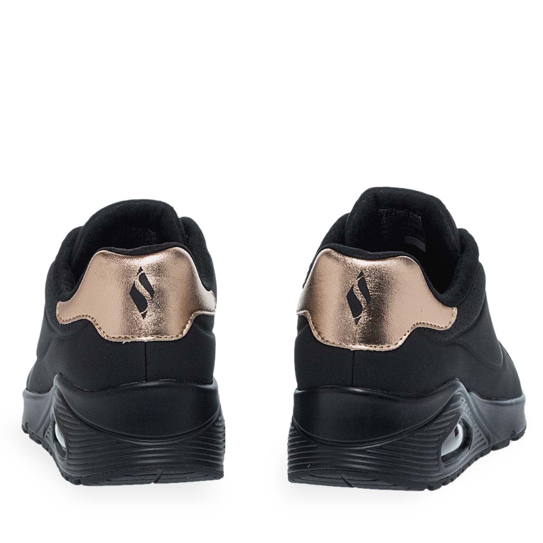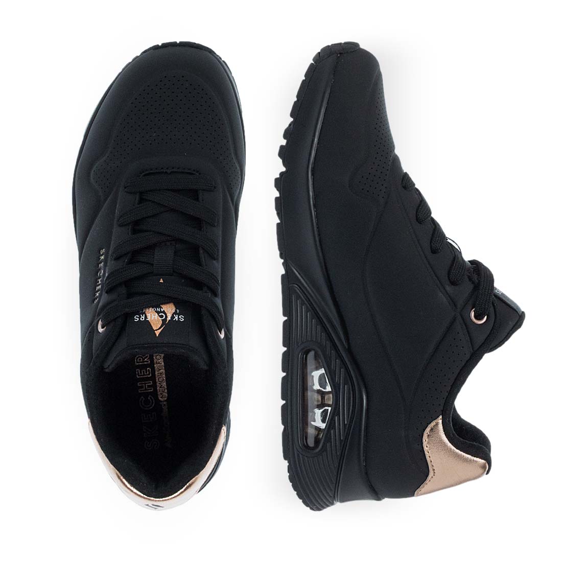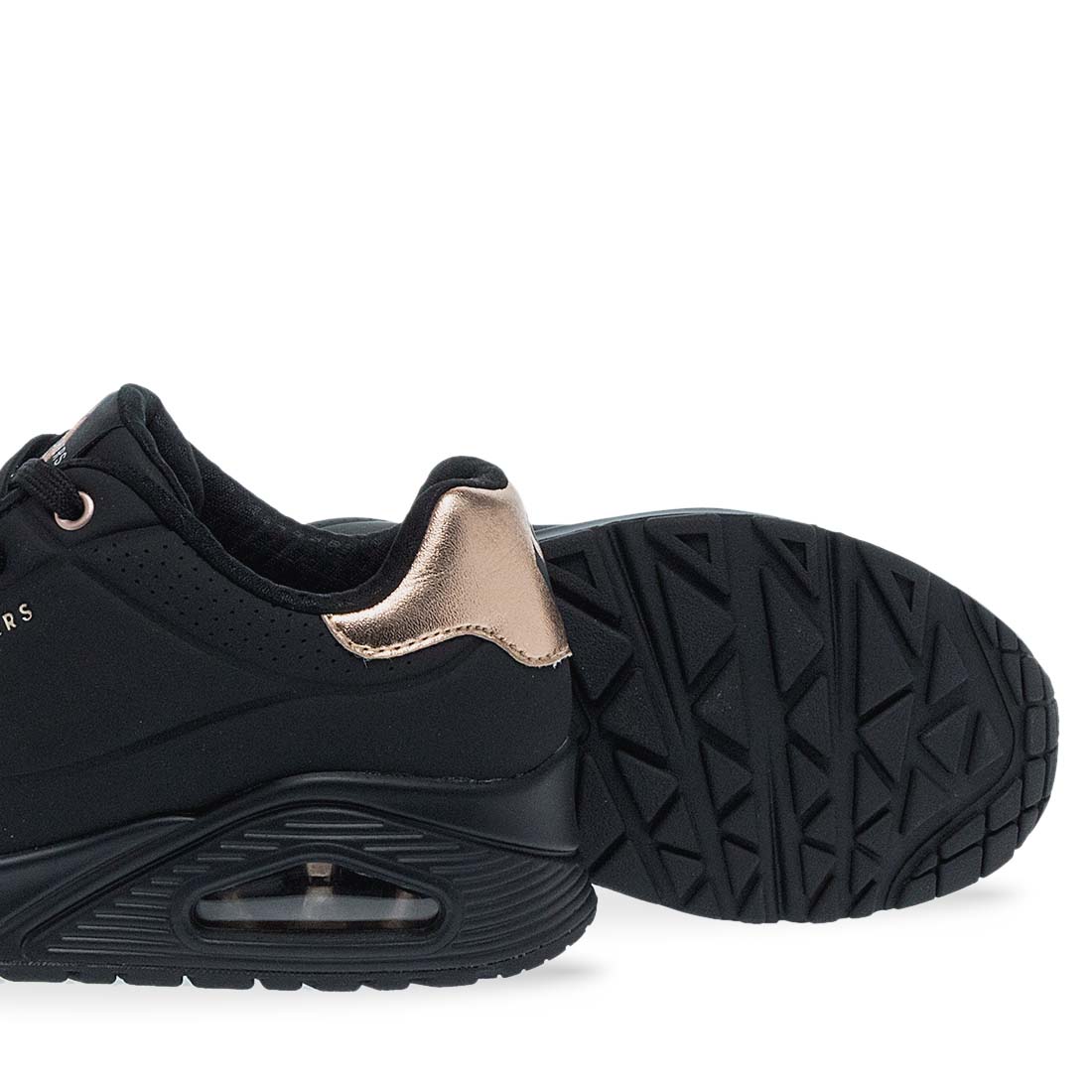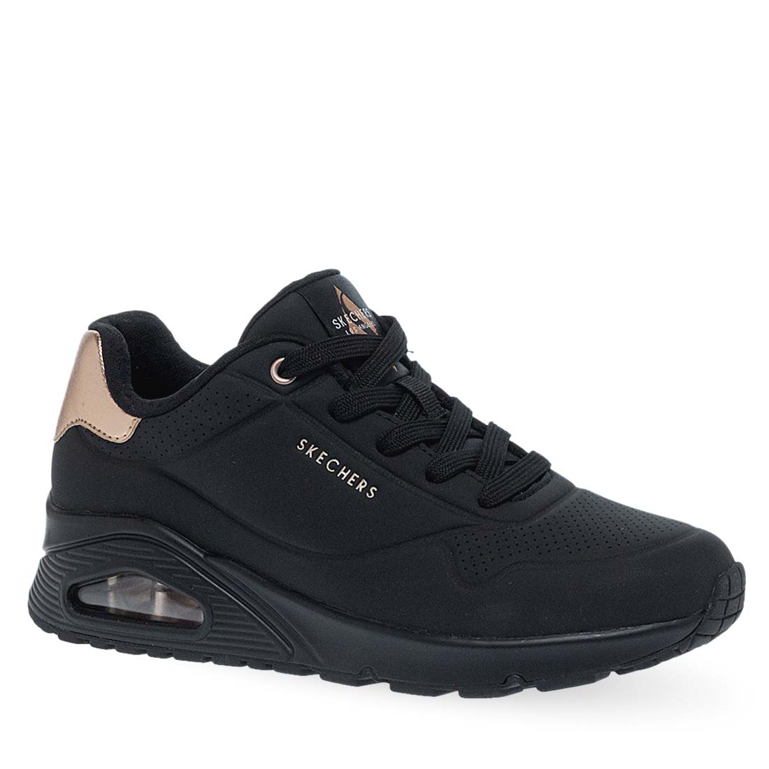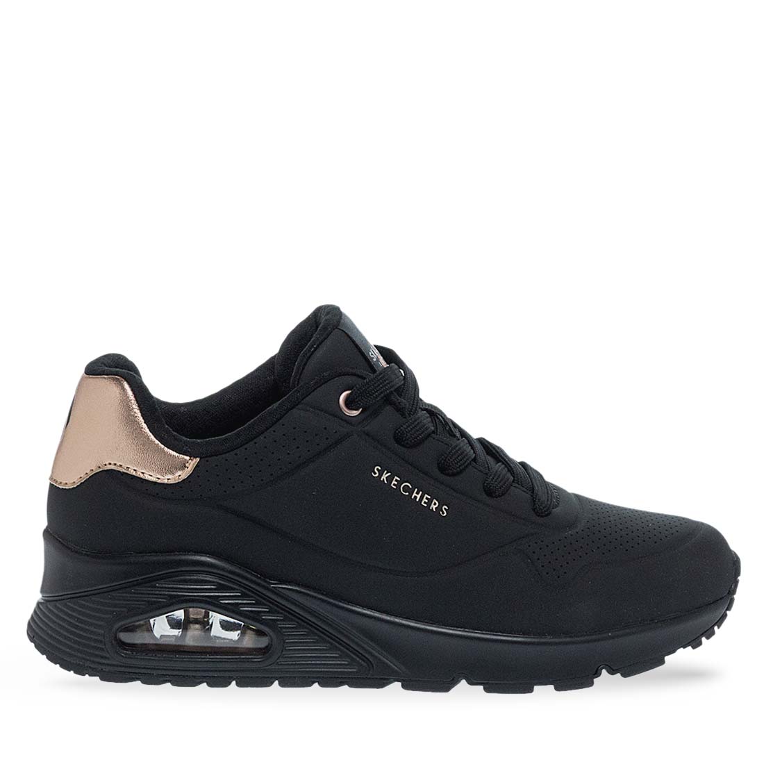Women''s trainers by Skechers. Women’s trainers in black with gold details and air-cooled sole. Modern look with comfort and style.